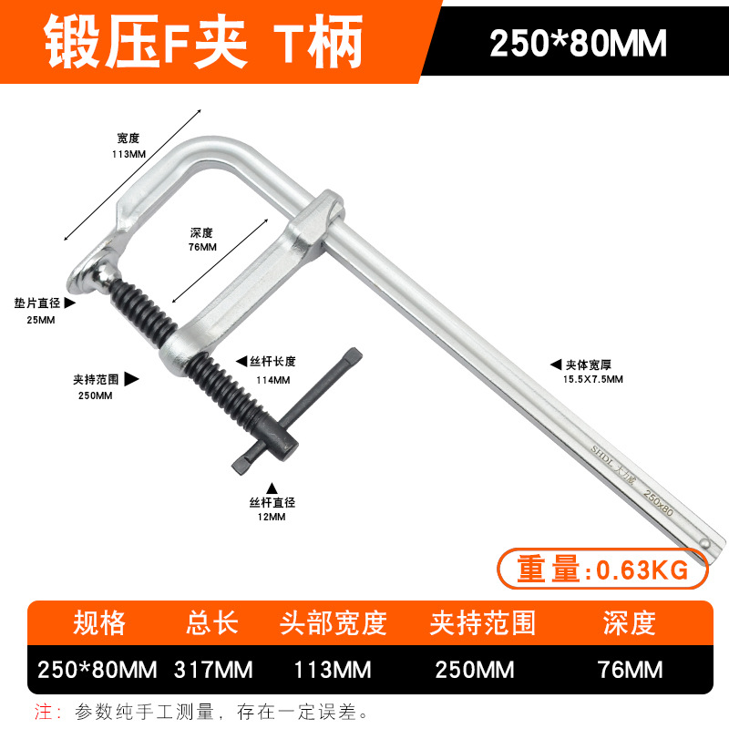 • Daliwei [산업용 등급] 단조 F 클램프 250x80mm 가이드 레일(15.5x7.5)