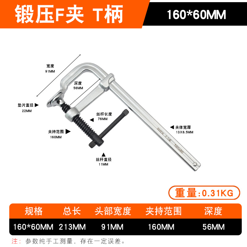 • Daliwei [산업용 등급] 단조 F 클램프 160x60mm 가이드 레일(13.5x6.5)