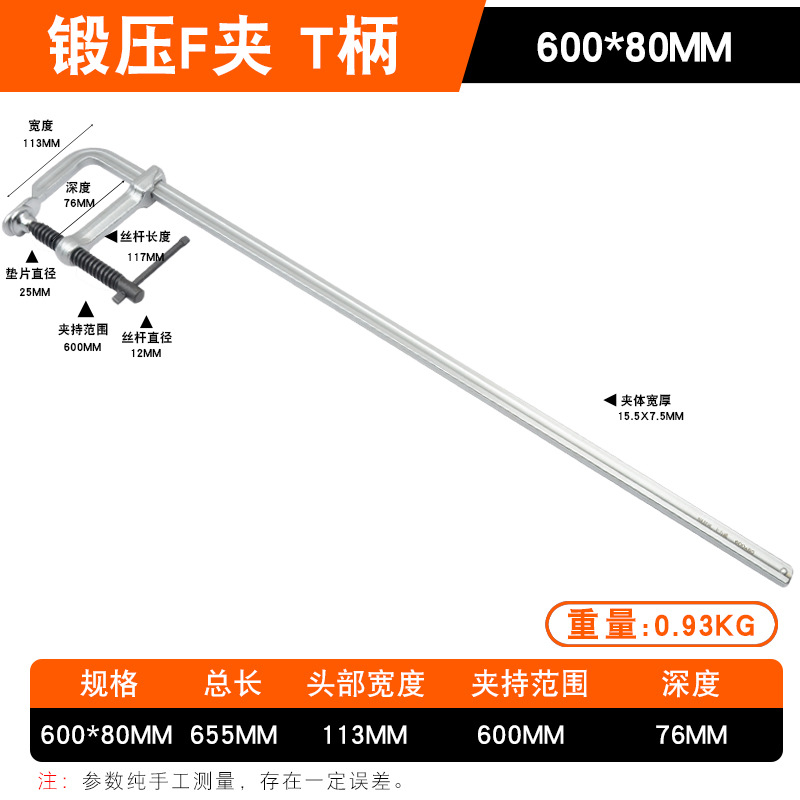 • Daliwei [산업용 등급] 단조 F 클램프 600x80mm 가이드 레일(15.5x7.5)