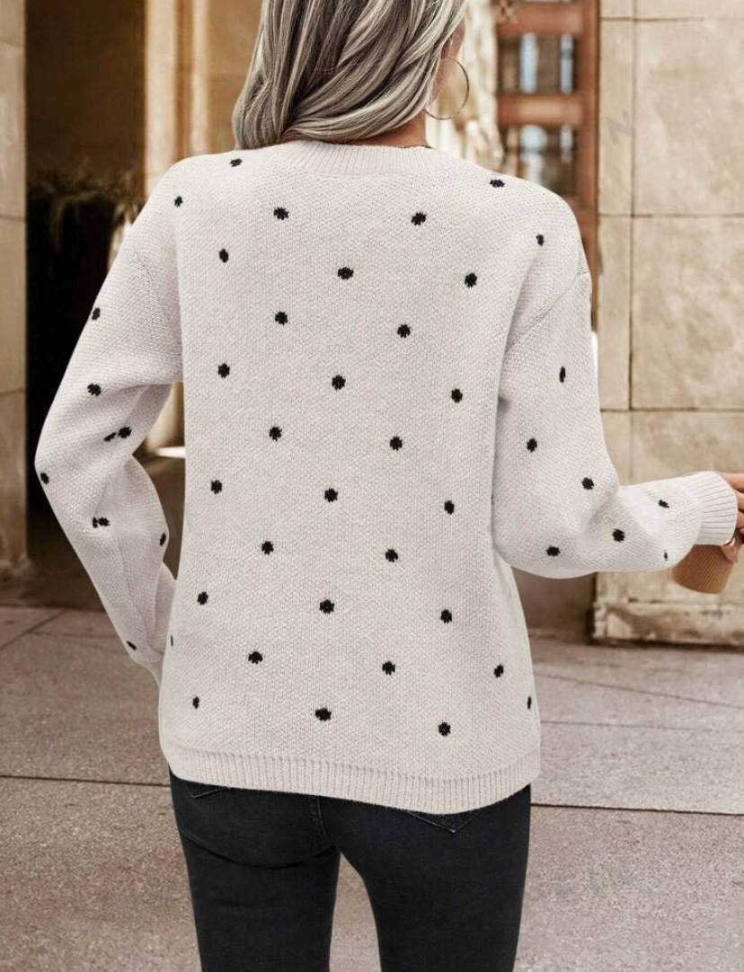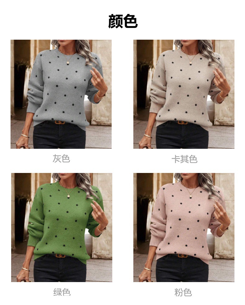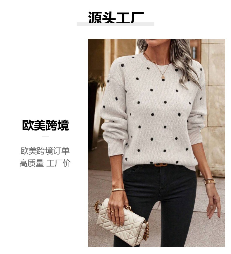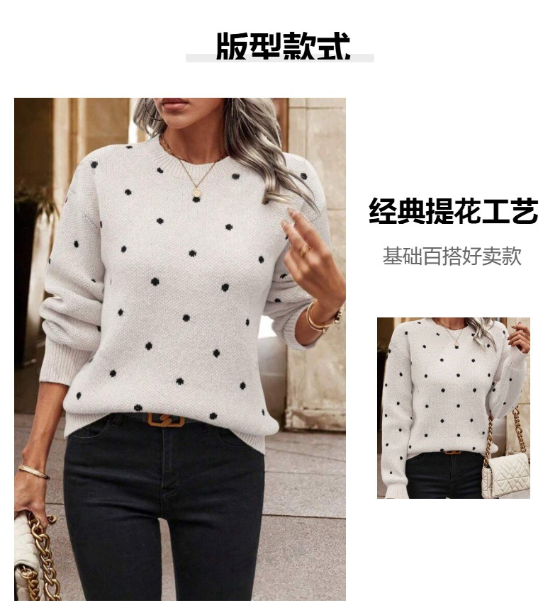유럽과 미국의 해외 무역 패션 라운드넥 긴팔 풀오버 가을 여성용 물방울무늬 자카드 니트 상의스토어 가기