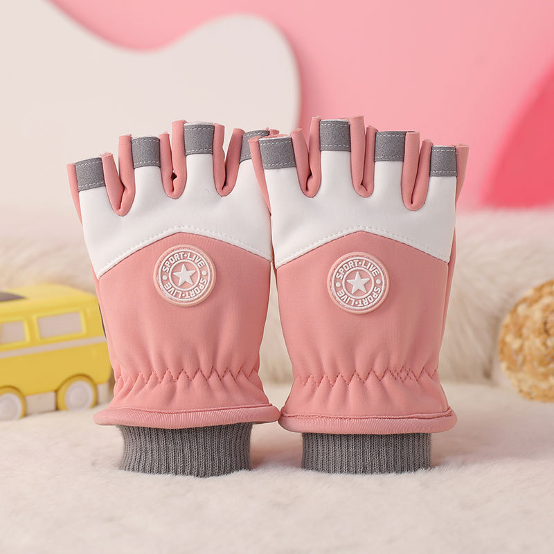 • 둥근 표시 어린이 반손가락 라이트 핑크
