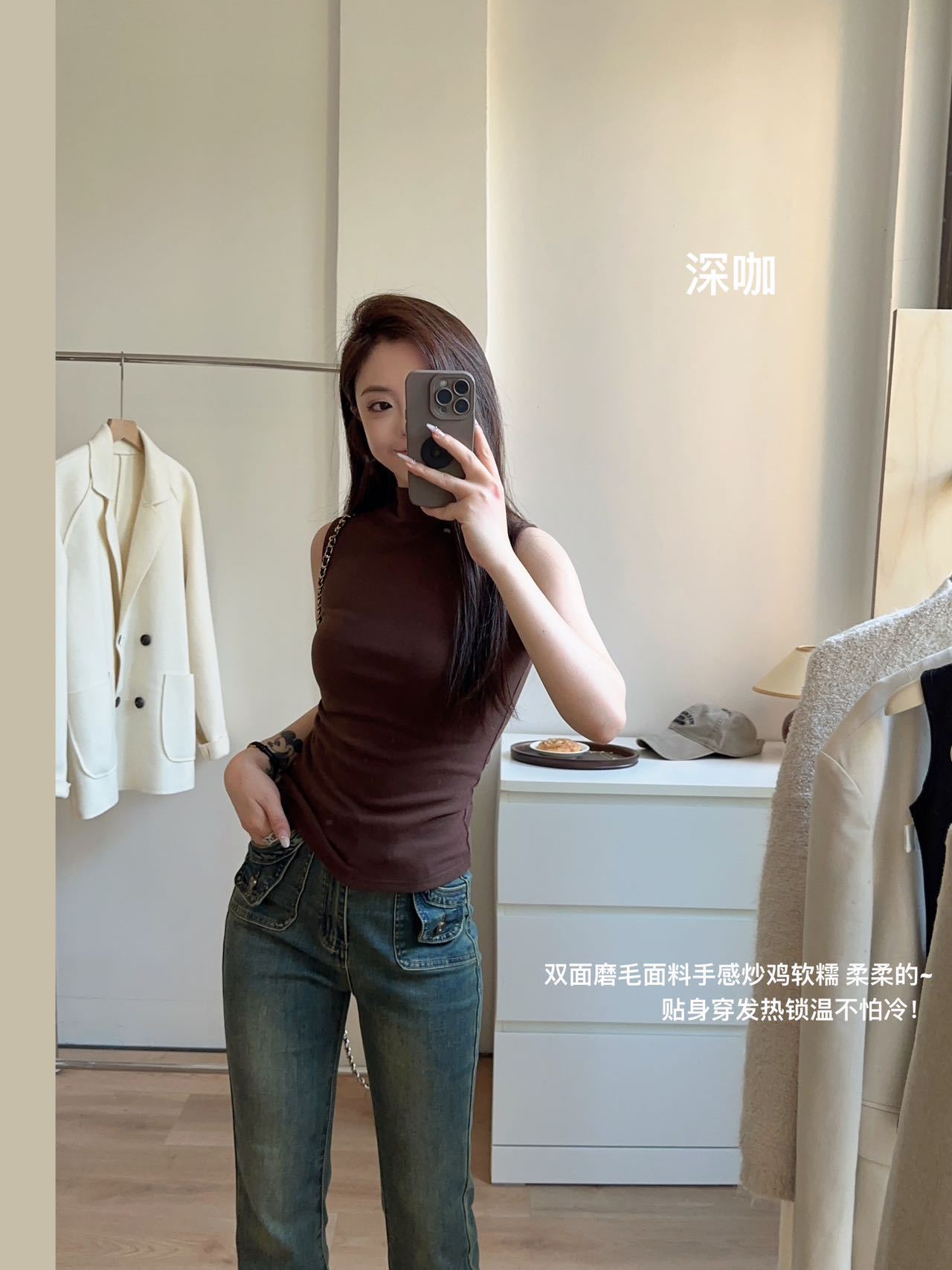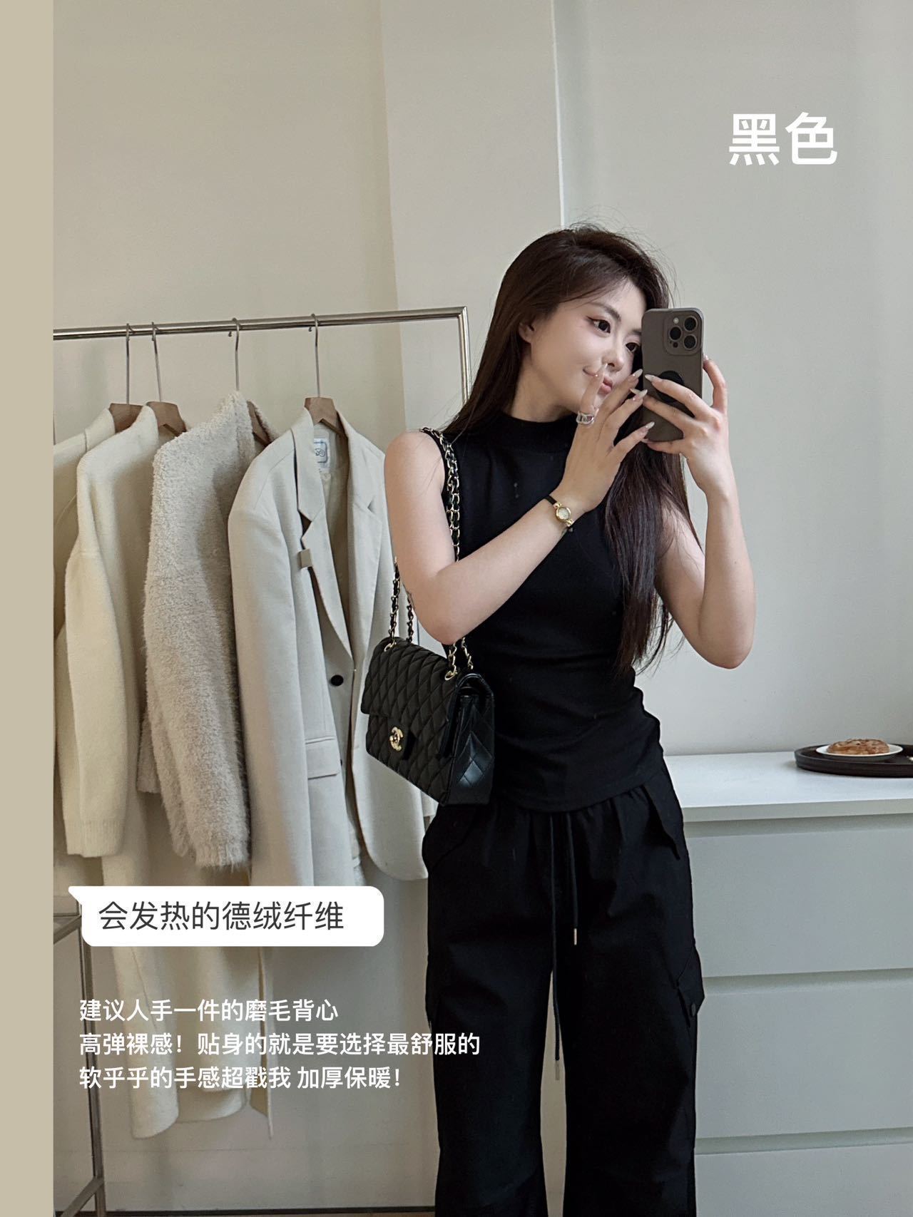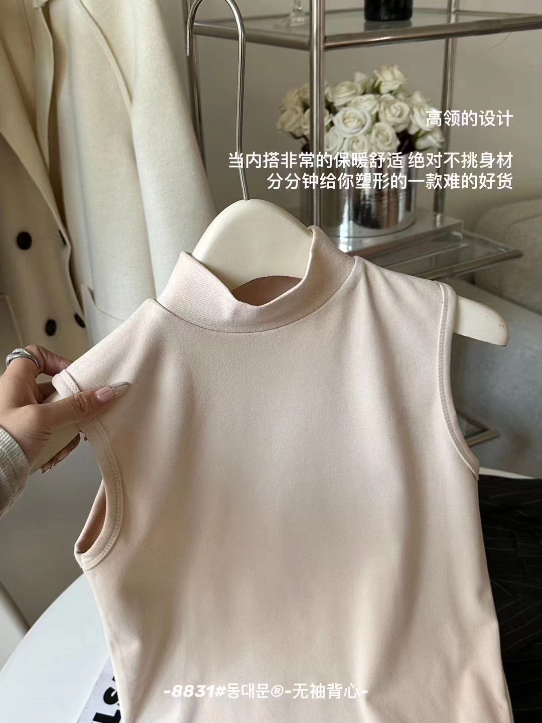 동대문 8831 민소매 조끼 슬림핏 가을 · 겨울 여성 베이스레이어 의류 벨벳 따뜻한 내반높이 칼라 단색스토어 가기