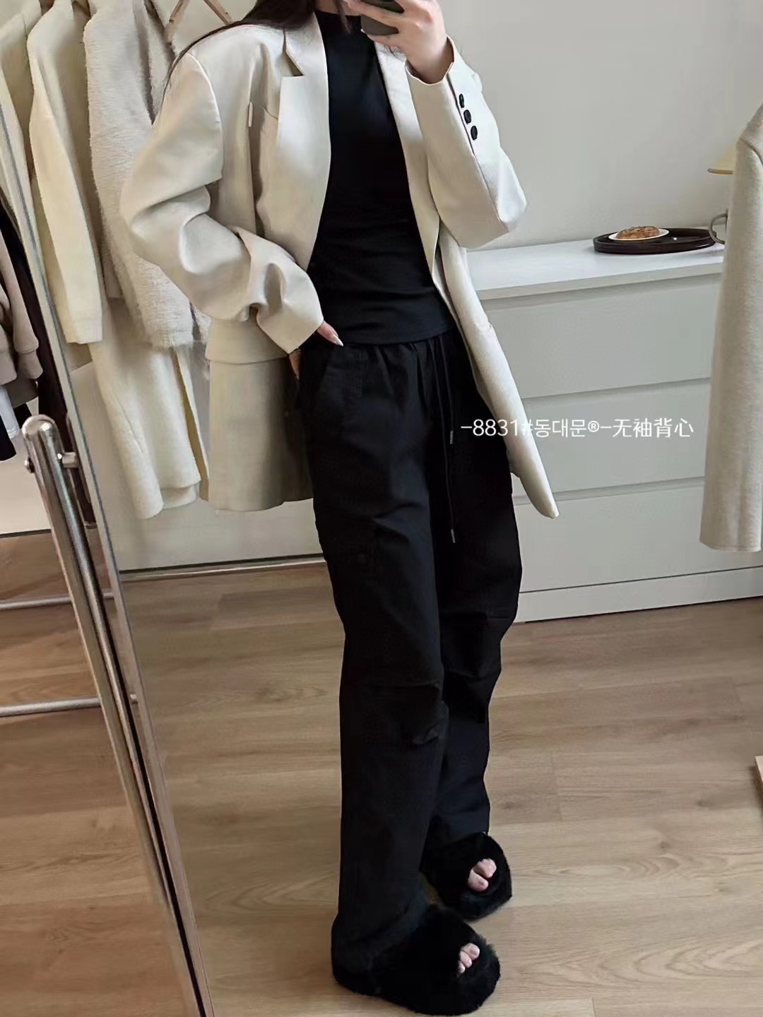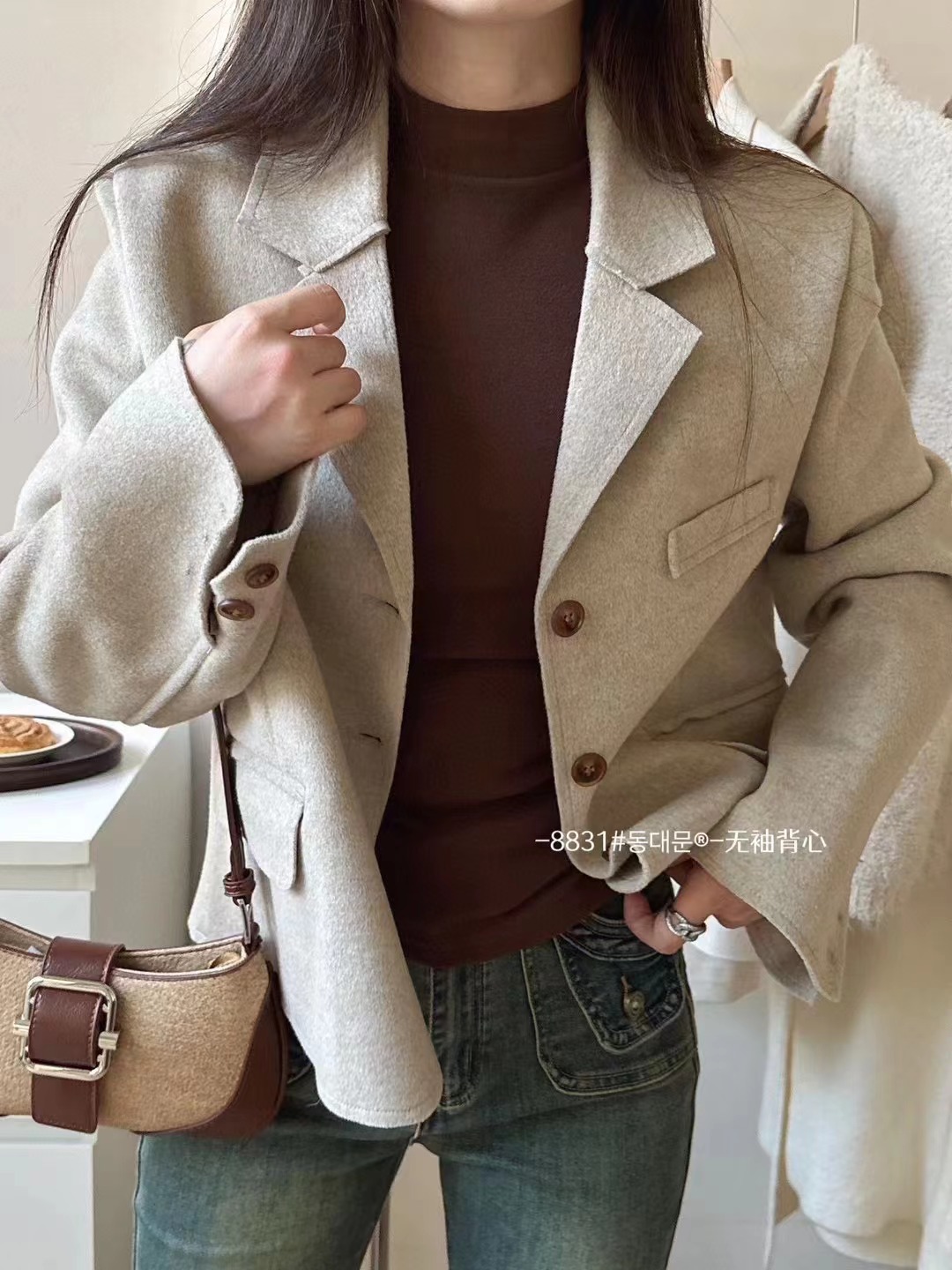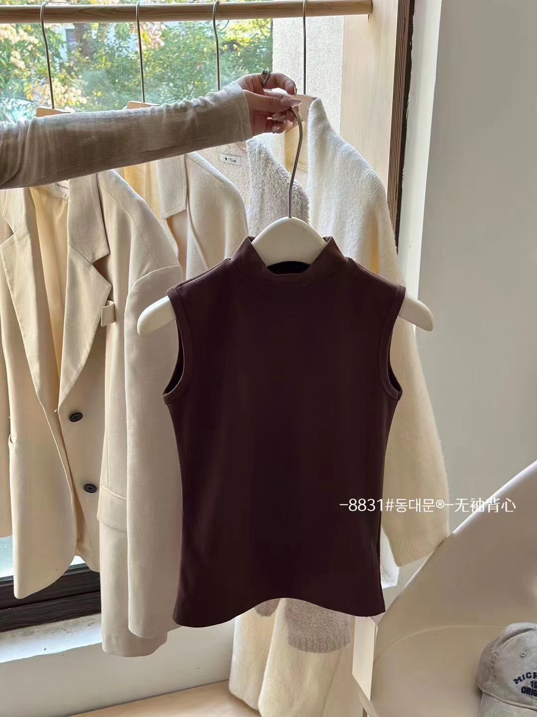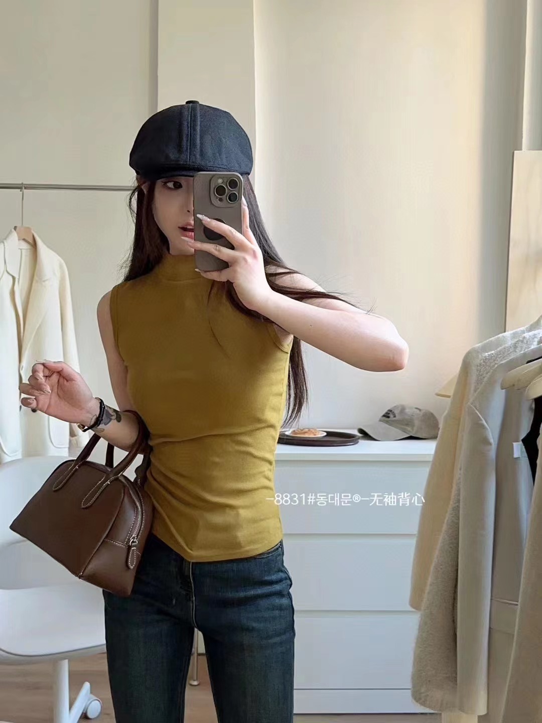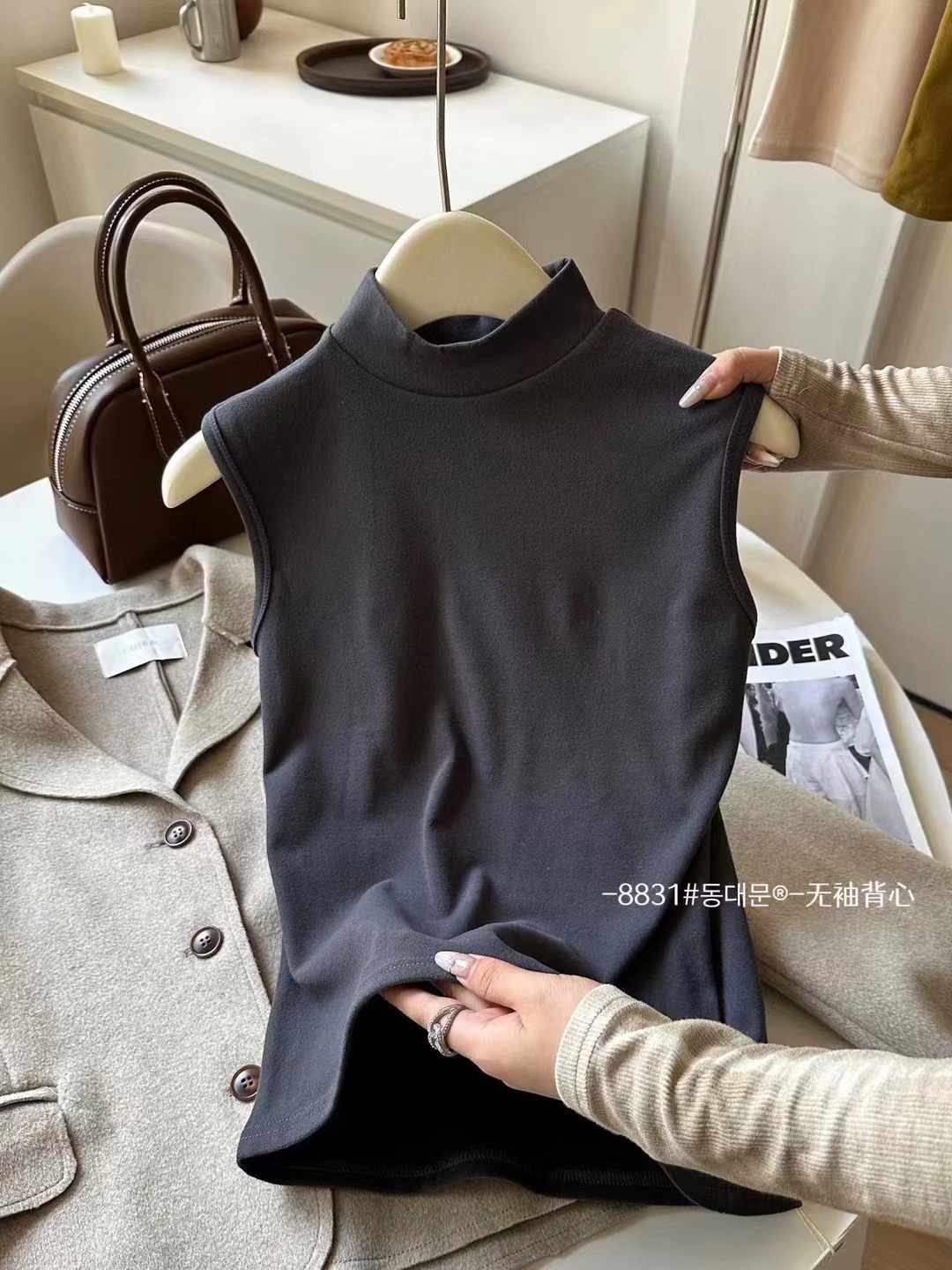동대문 8831 민소매 조끼 슬림핏 가을 · 겨울 여성 베이스레이어 의류 벨벳 따뜻한 내반높이 칼라 단색