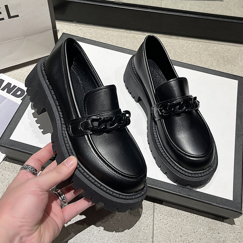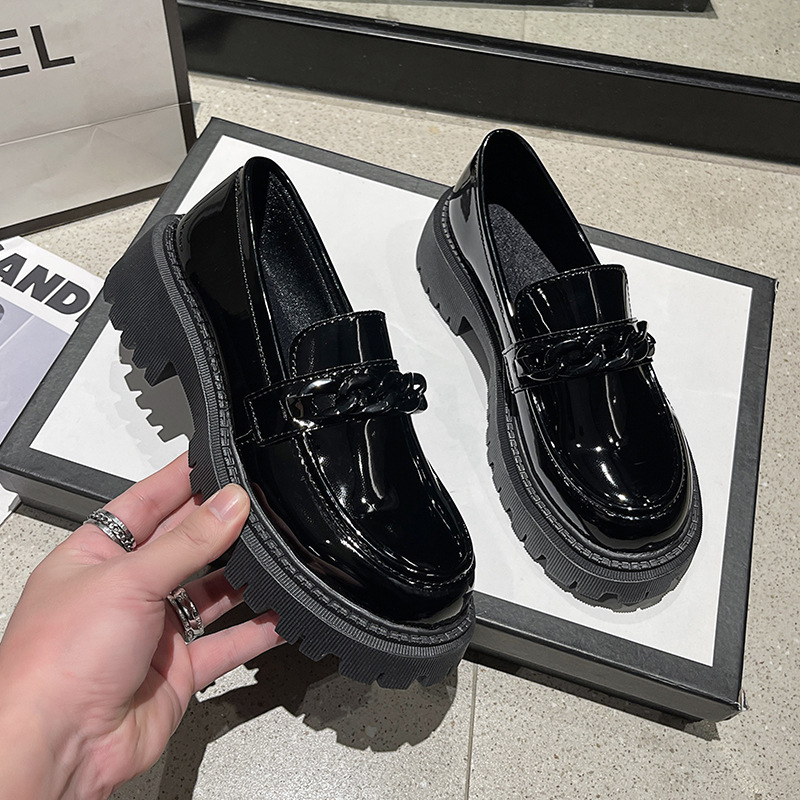 플러스 사이즈 Lefu 작은 가죽 신발 여성 2023 검은 두꺼운 밑창 복고풍 봄과 가을 영국 스타일 작은 가죽 신발 여성 일본 스타일 작은 싱글 레이어 신발스토어 가기