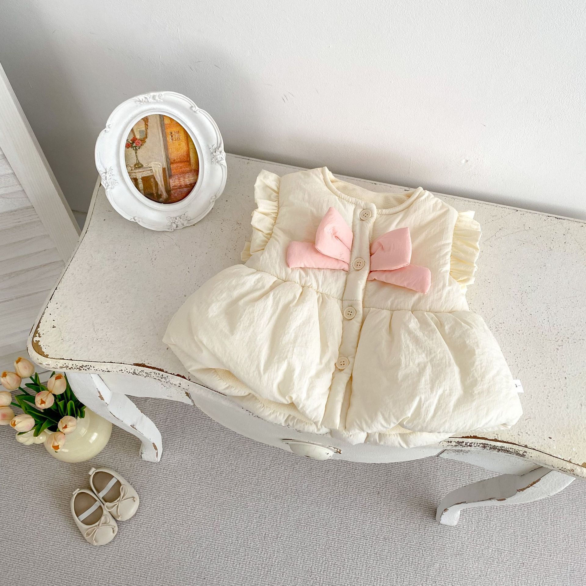 INS 새로운 슈퍼 귀여운 소녀 토끼 귀 면화 조끼 아기 소녀 활 두꺼운 조끼 조끼 재킷스토어 가기