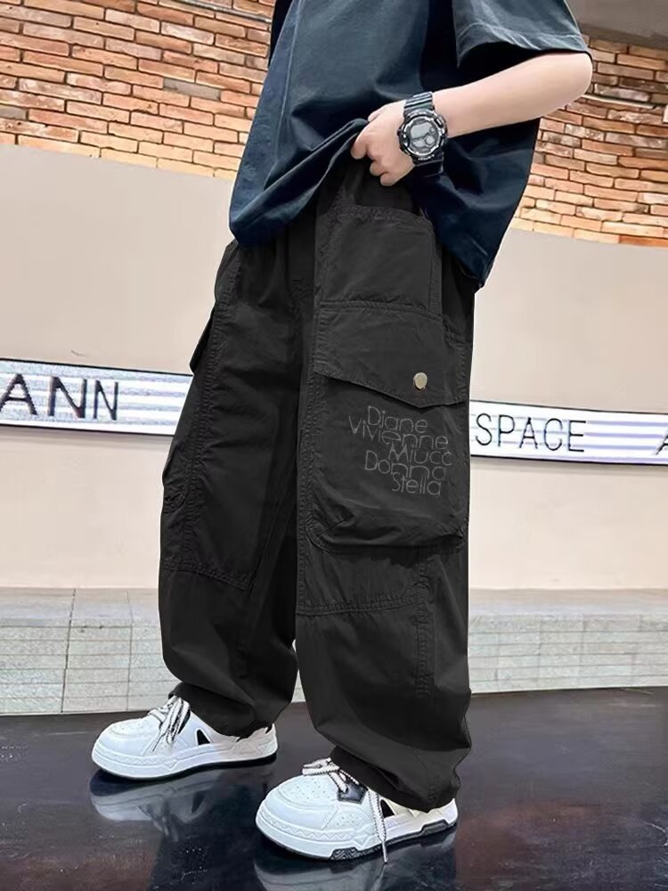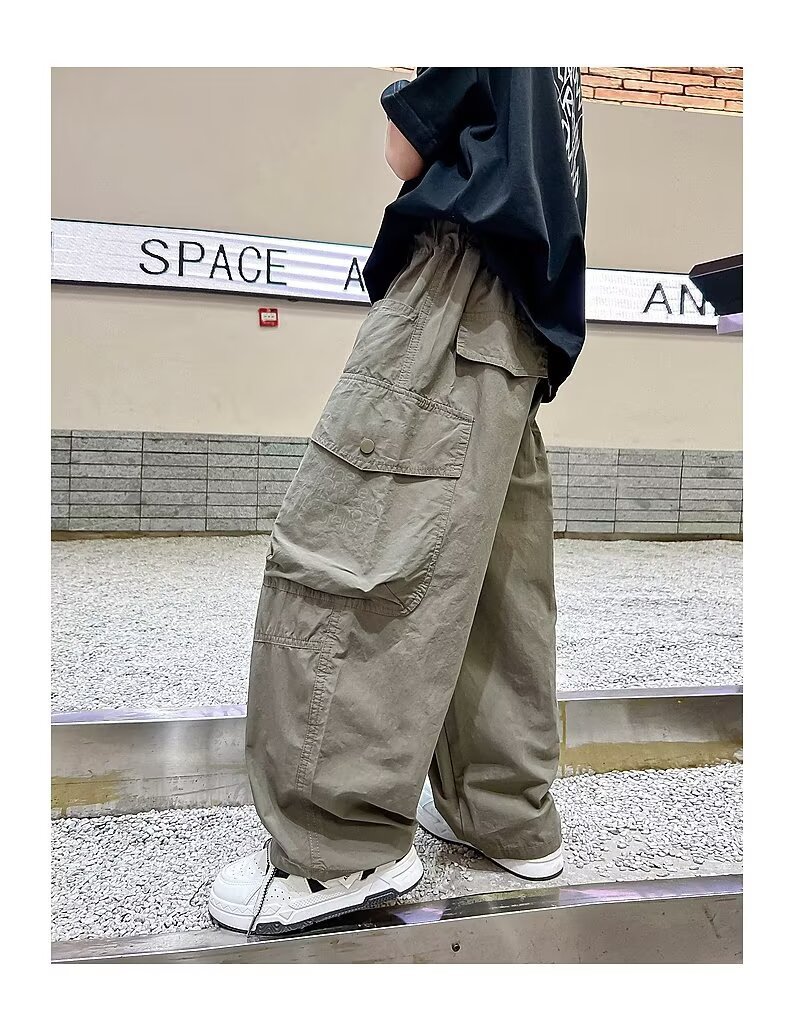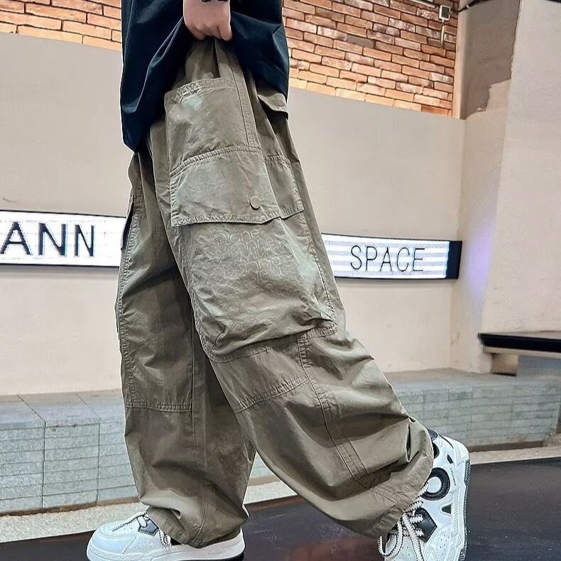 소년 바지 2024 가을 잘 생긴 바지 어린이 서양 포켓 캐주얼 바지 큰 어린이 느슨한 바지