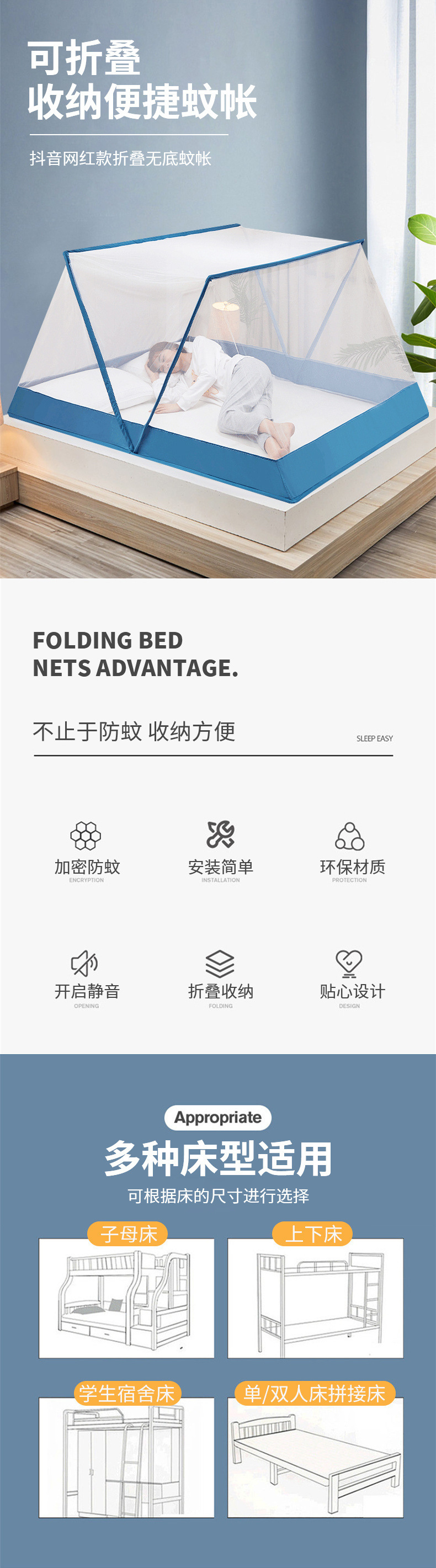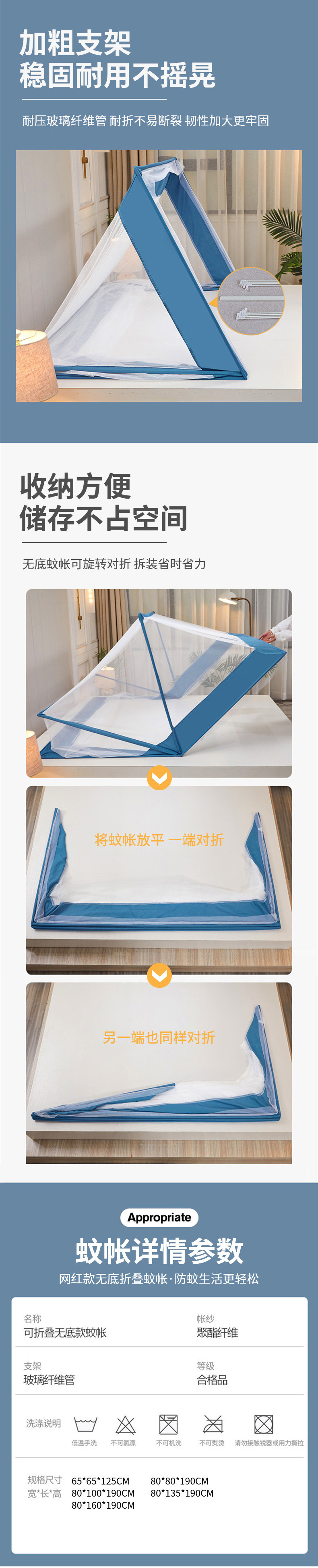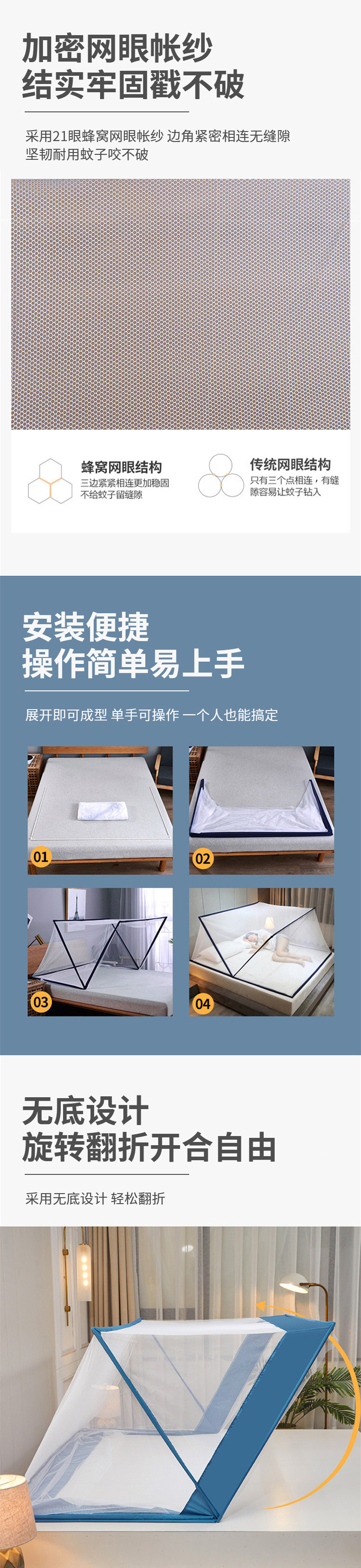• 기숙사 모델 - 파란색 [폭 80CM 침대에 적합] 메쉬 암호화/모기 두려움 없음