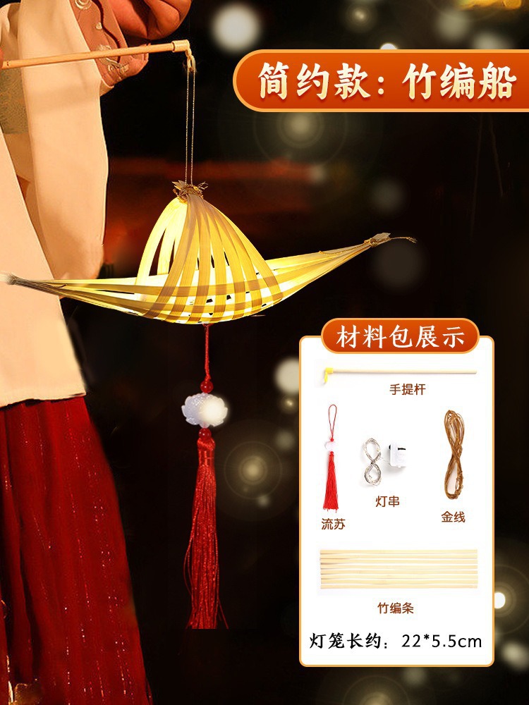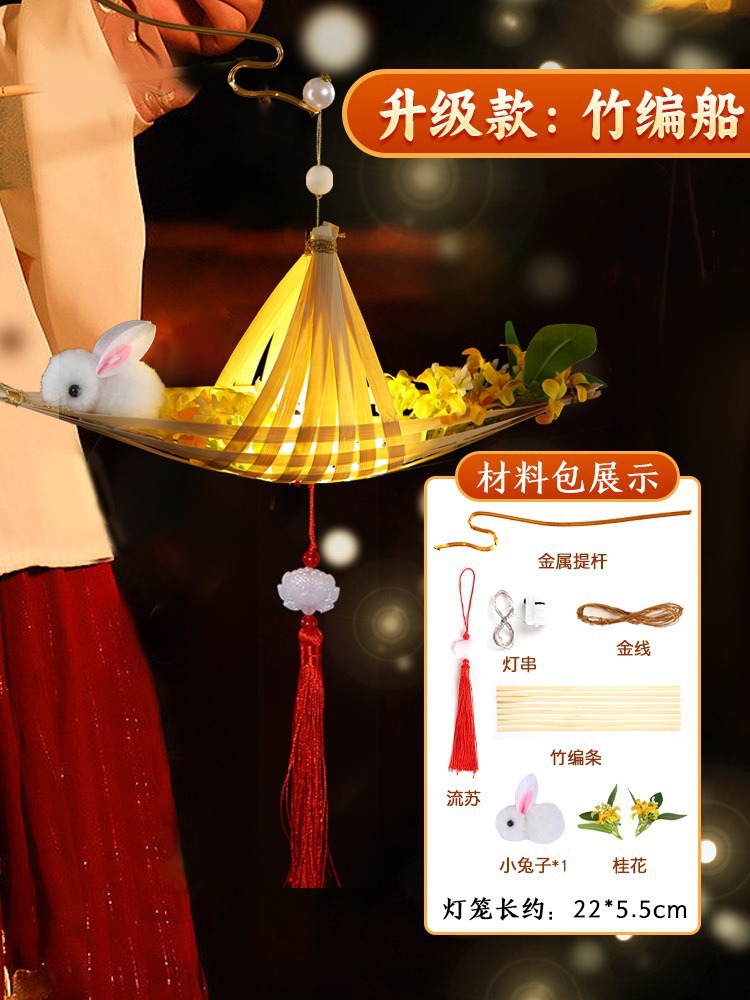 • 럭셔리 모델 - 달을 바라보는 대나무 작은 배 토끼 랜턴(금속 리프팅 폴)