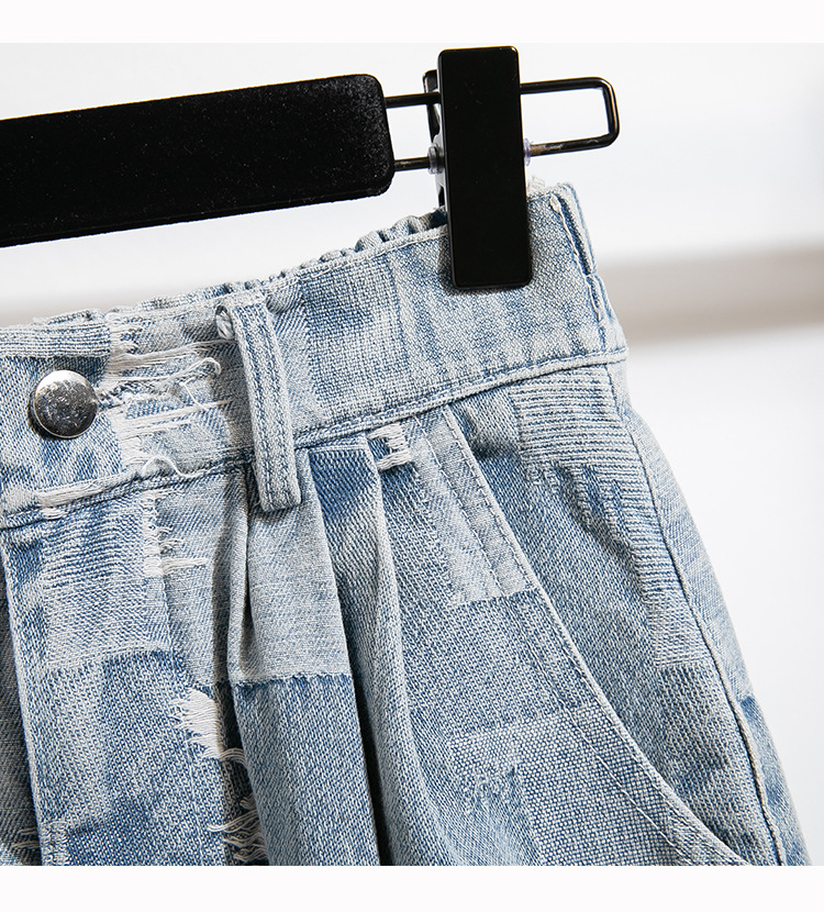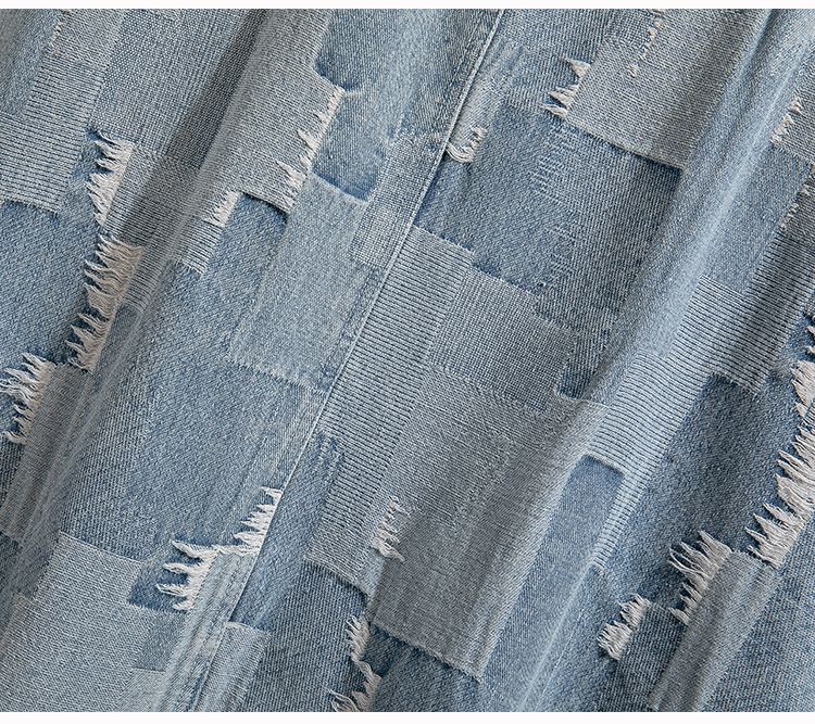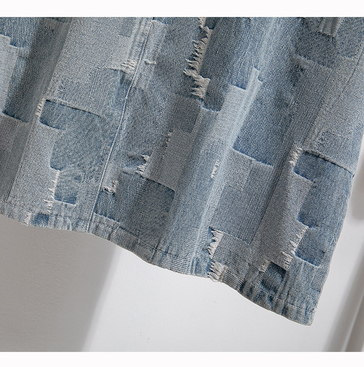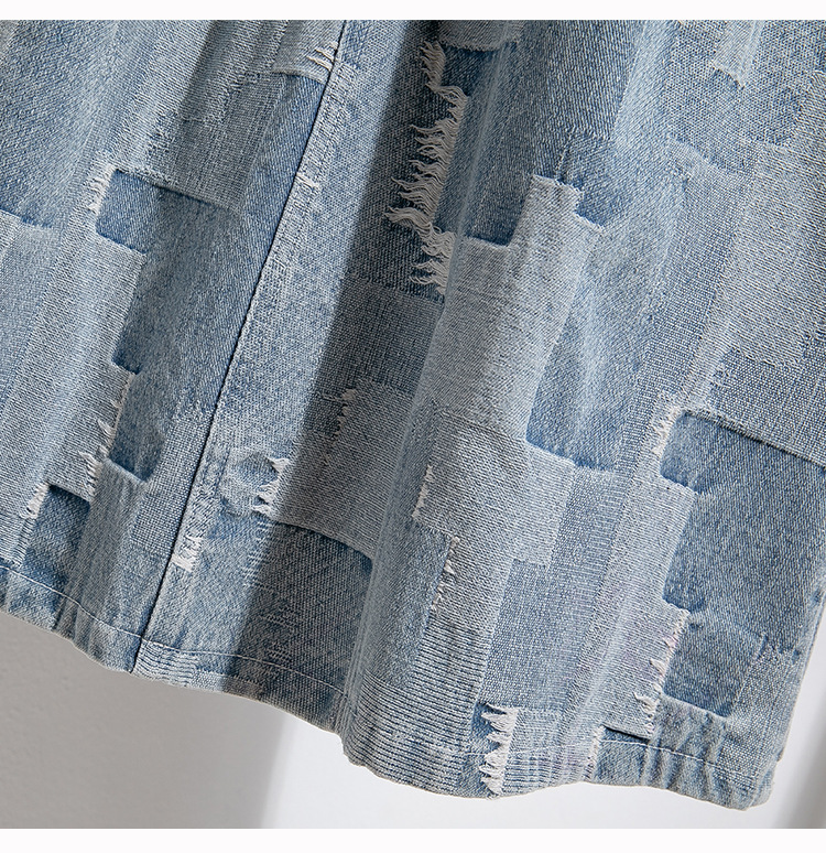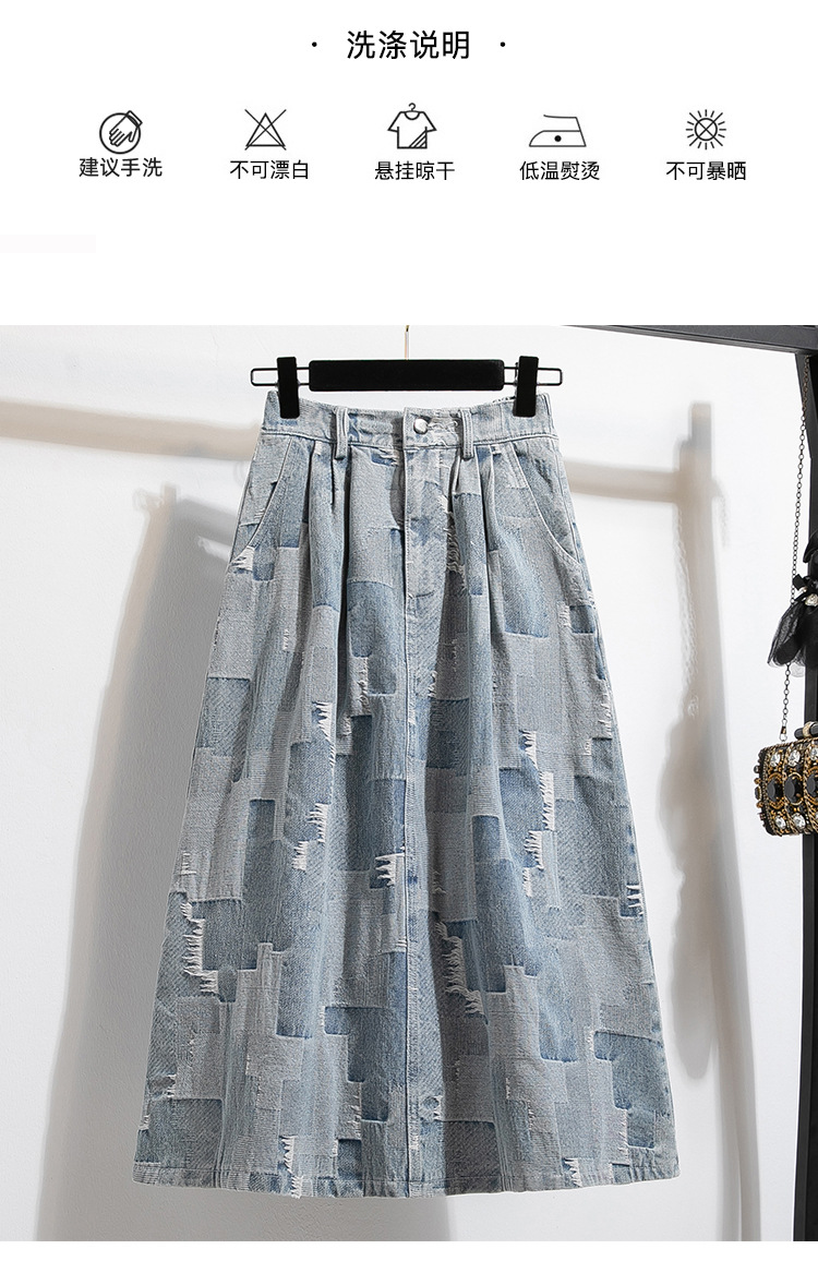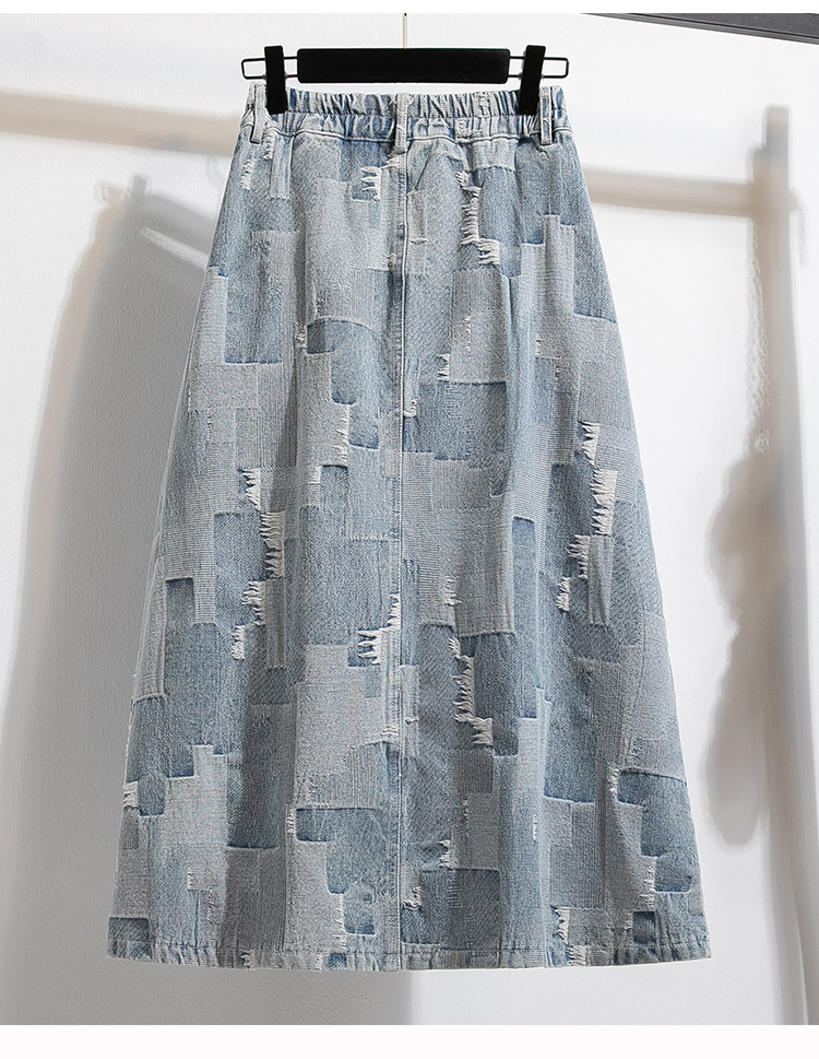 리얼 샷 외국 스타일 데님 스커트 여성의 가을 새로운 캐주얼 올 매치 디자인 분할 플러스 사이즈 미디 스커트