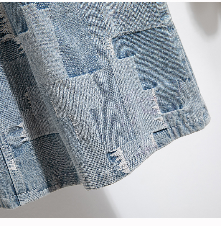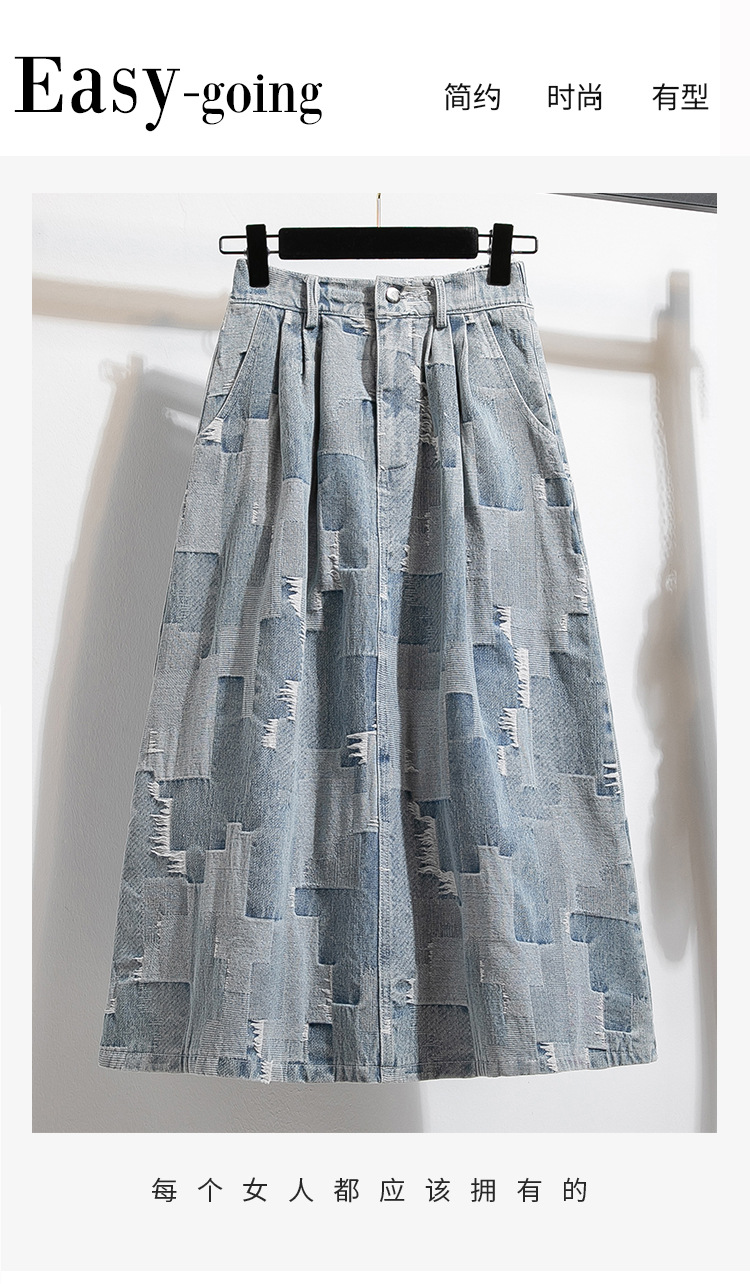 리얼 샷 외국 스타일 데님 스커트 여성의 가을 새로운 캐주얼 올 매치 디자인 분할 플러스 사이즈 미디 스커트스토어 가기