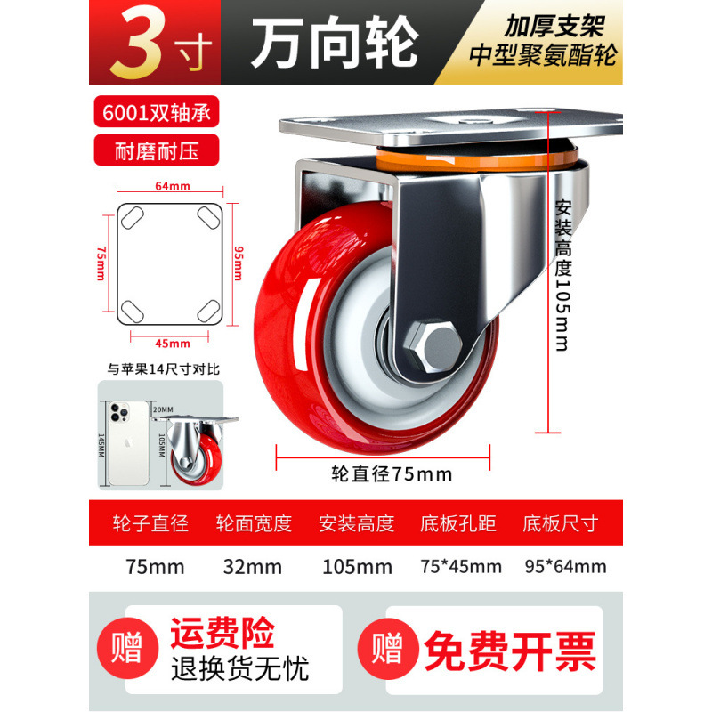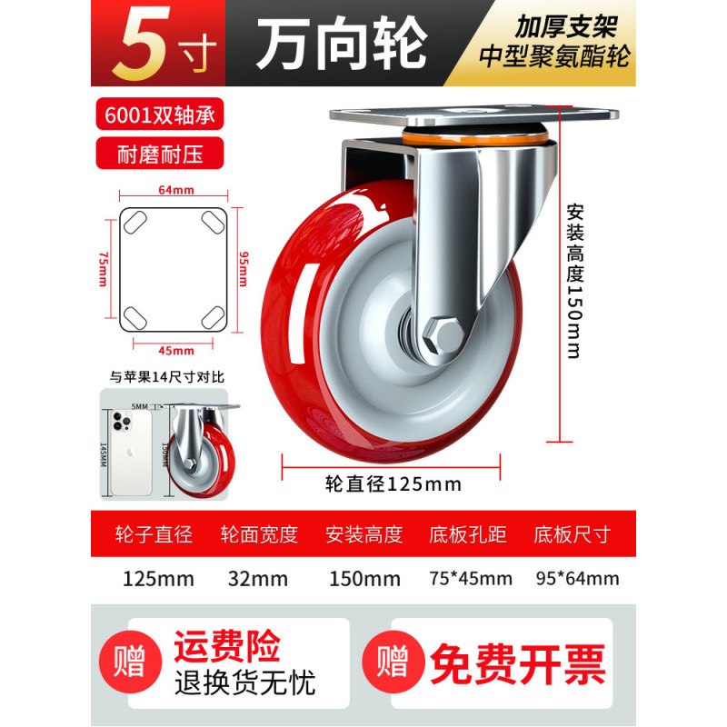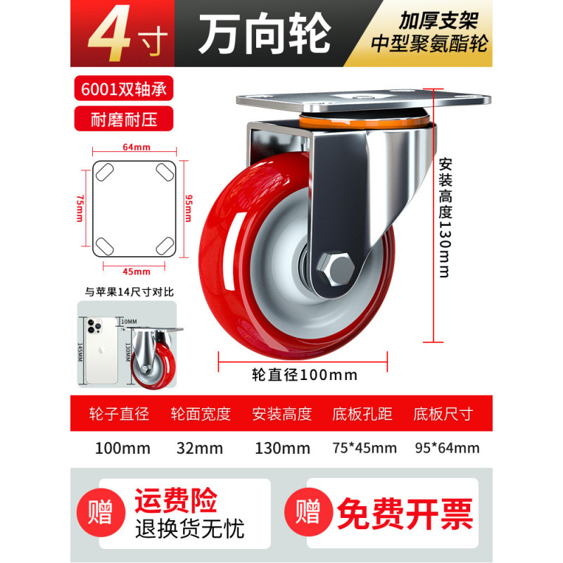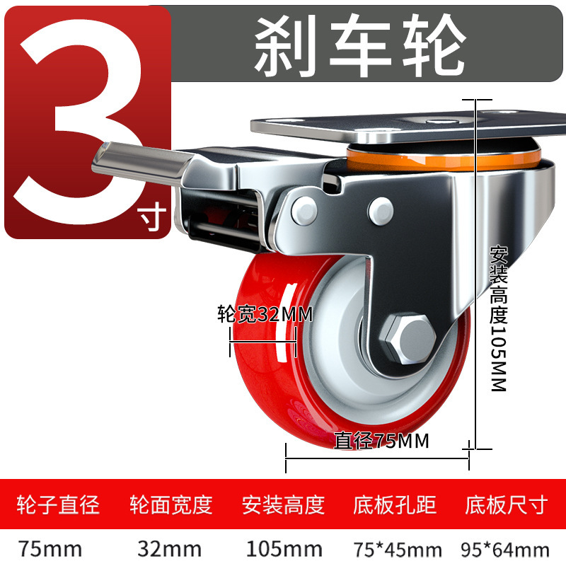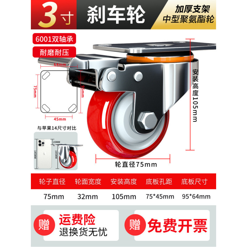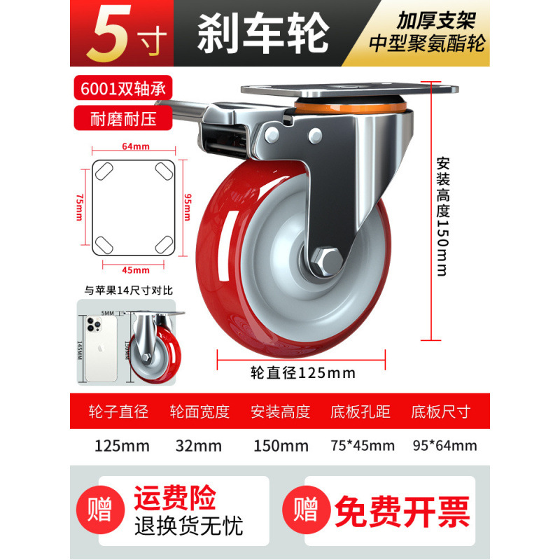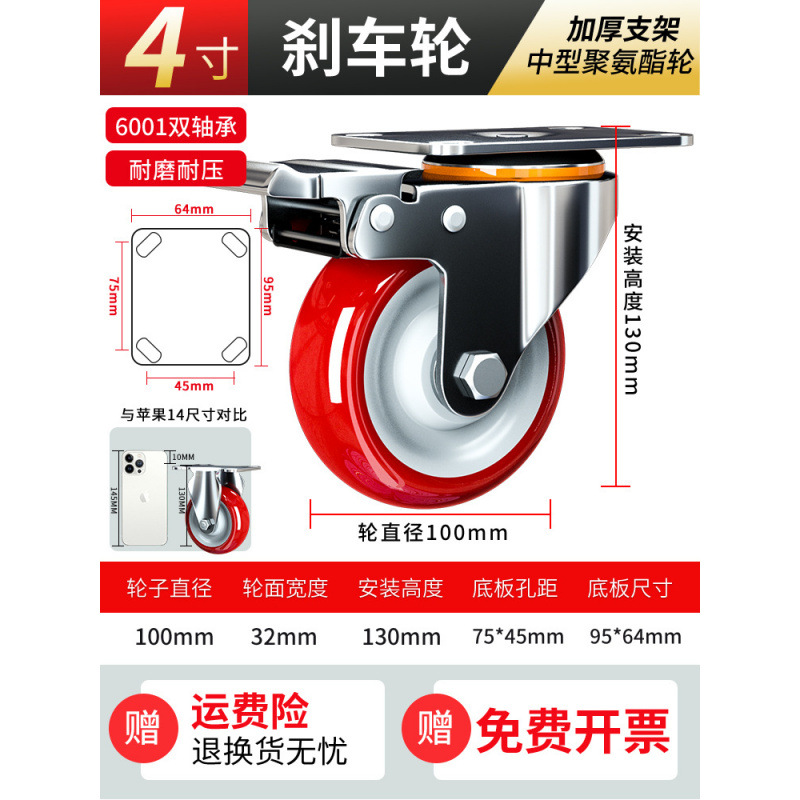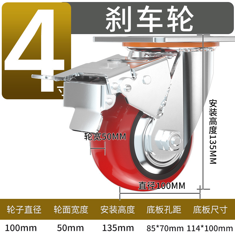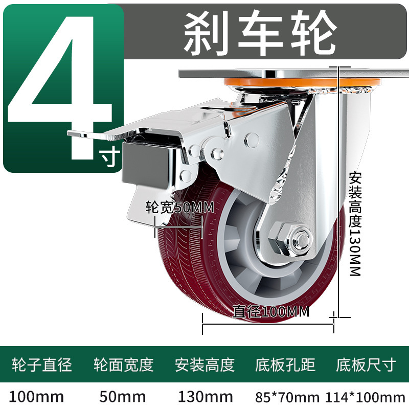 브레이크 휠이 장착 된 Miwant 유니버설 휠 헤비 듀티 폴리 우레탄 무성 캐스터 트롤리 휠 트레일러 풀리스토어 가기