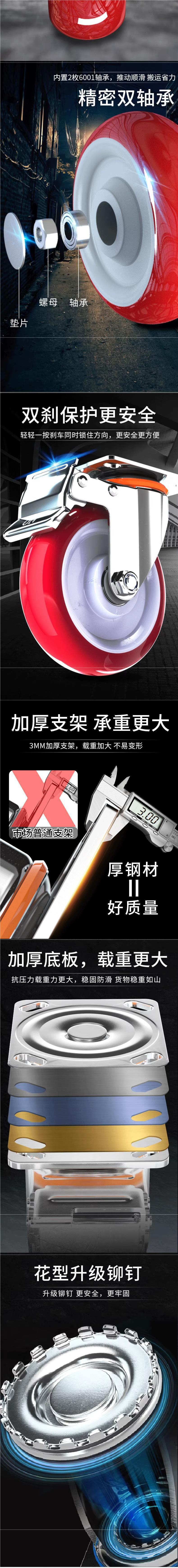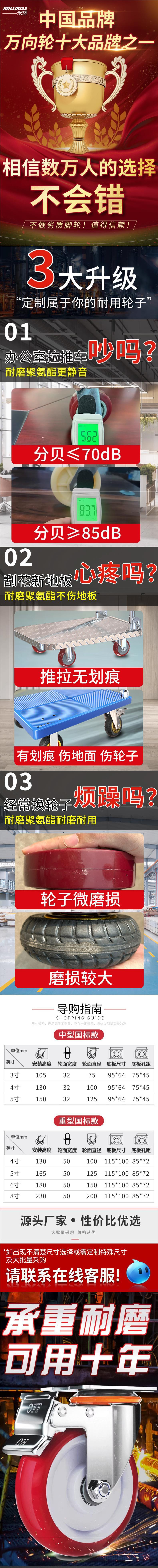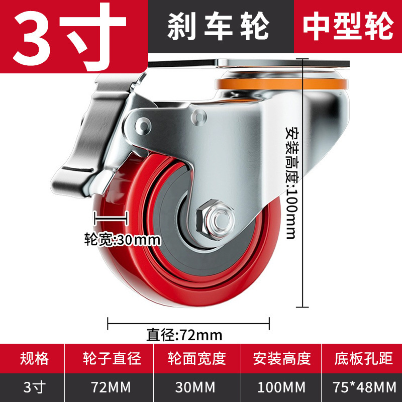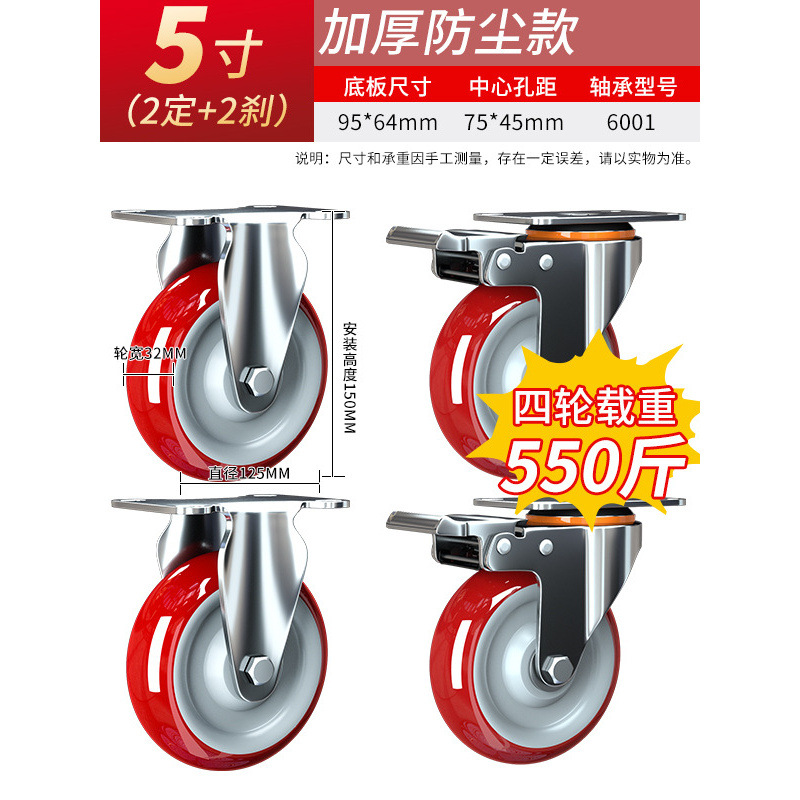 브레이크 휠이 장착 된 Miwant 유니버설 휠 헤비 듀티 폴리 우레탄 무성 캐스터 트롤리 휠 트레일러 풀리