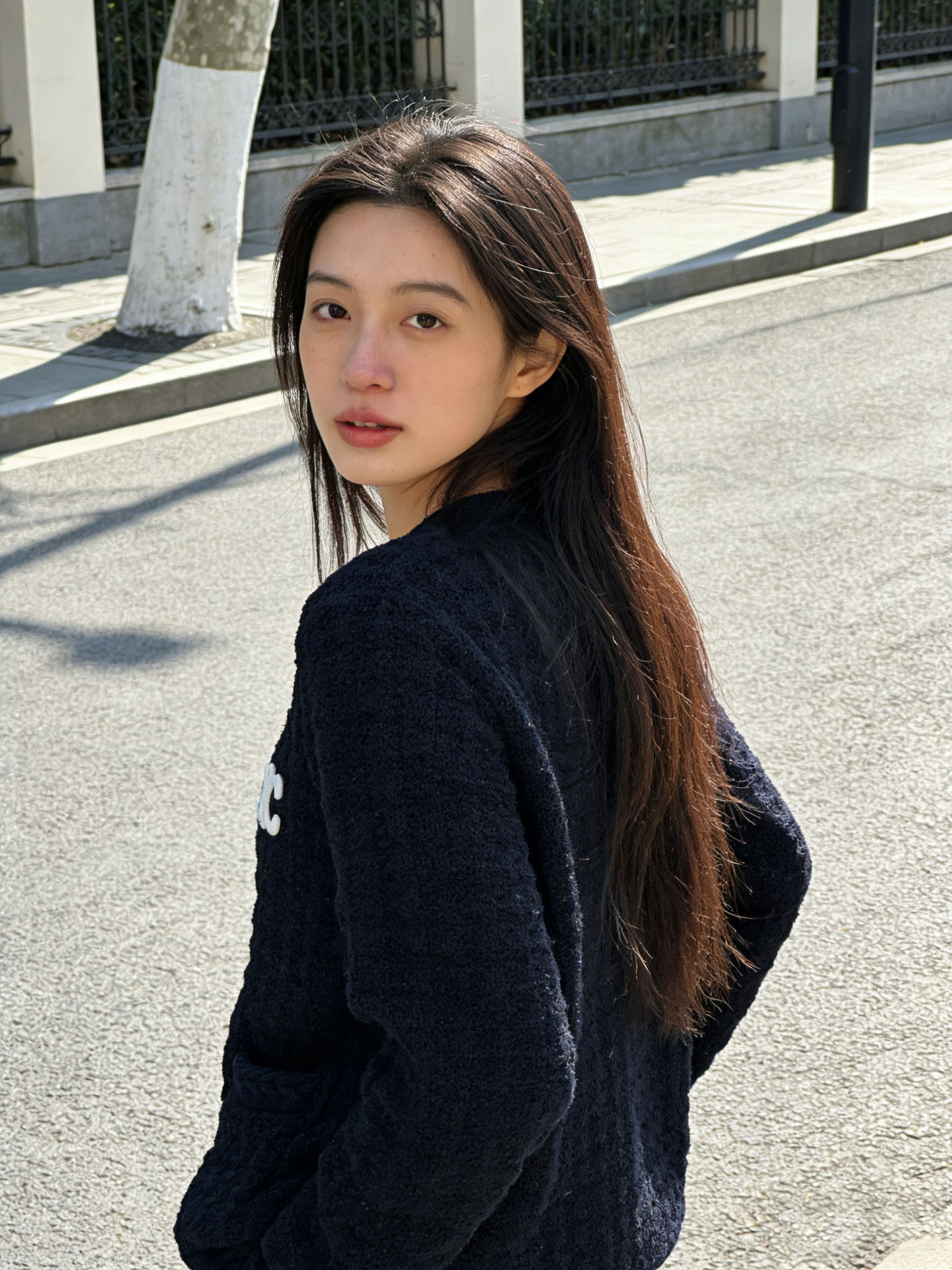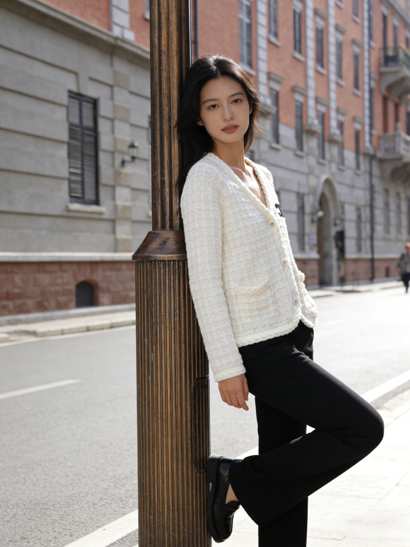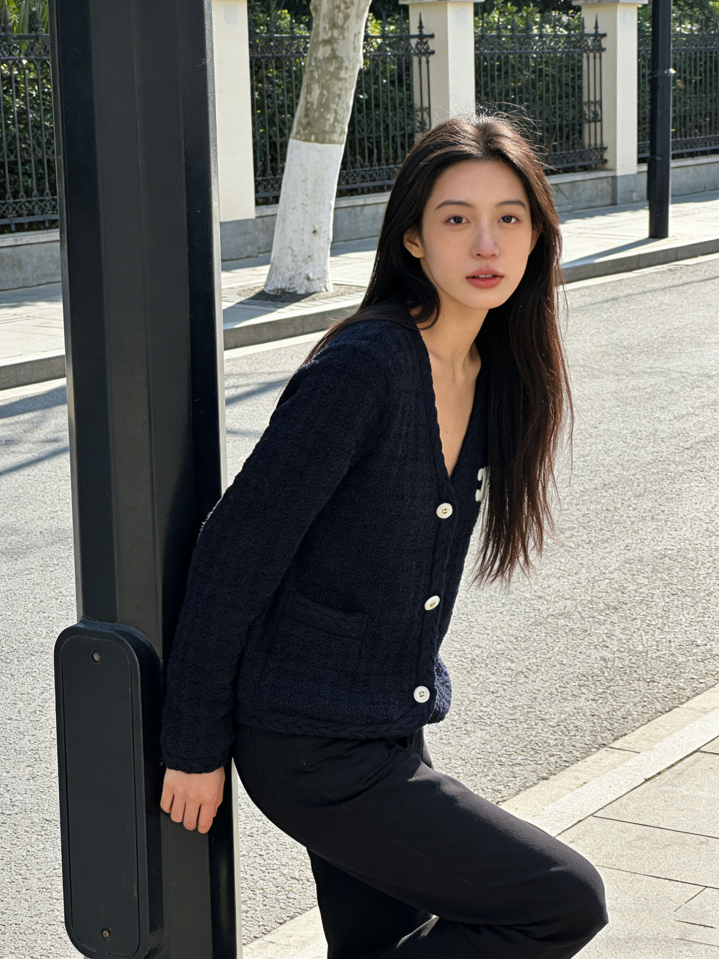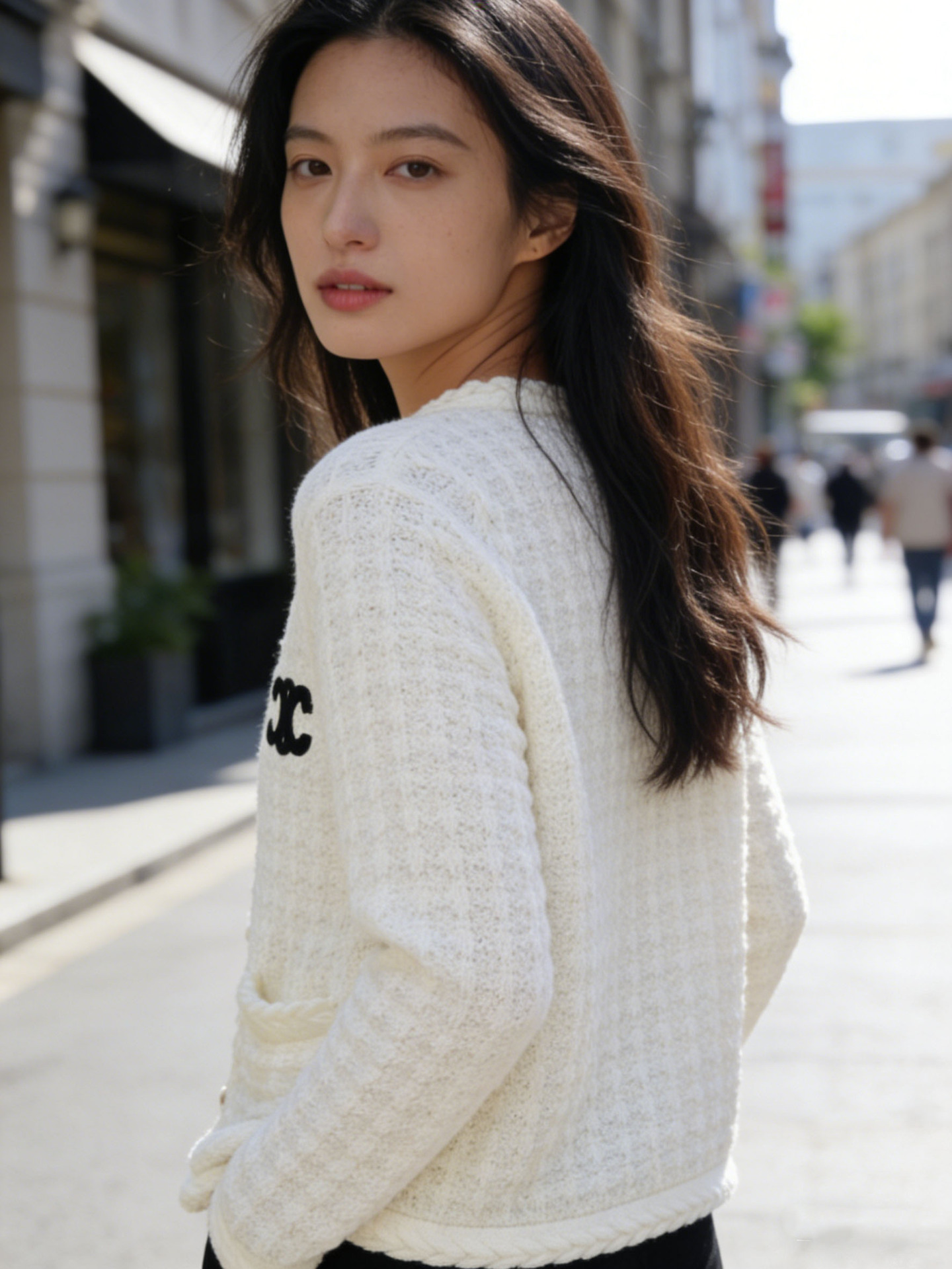 跨境春秋字母刺绣口袋V领针织开衫上衣新款慵懒风宽松毛衣外套女