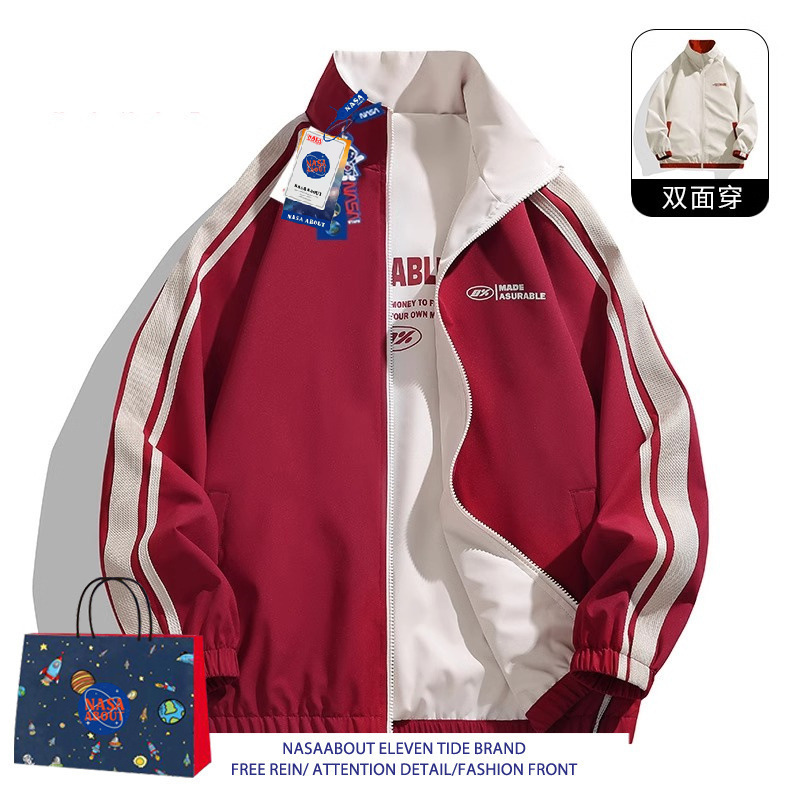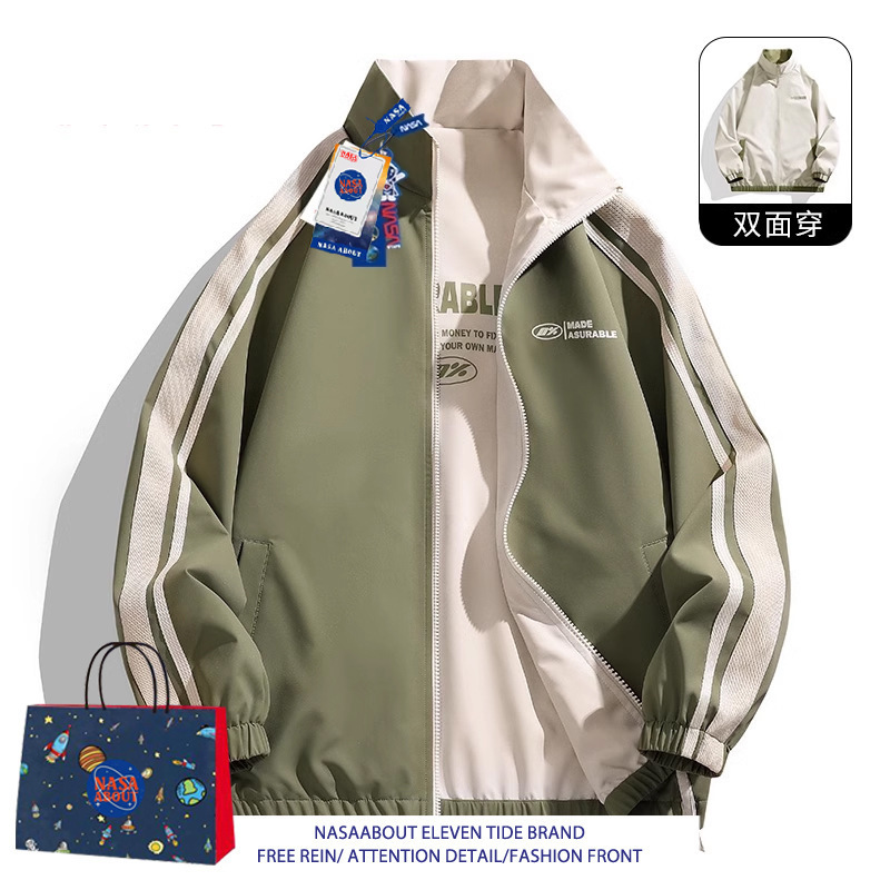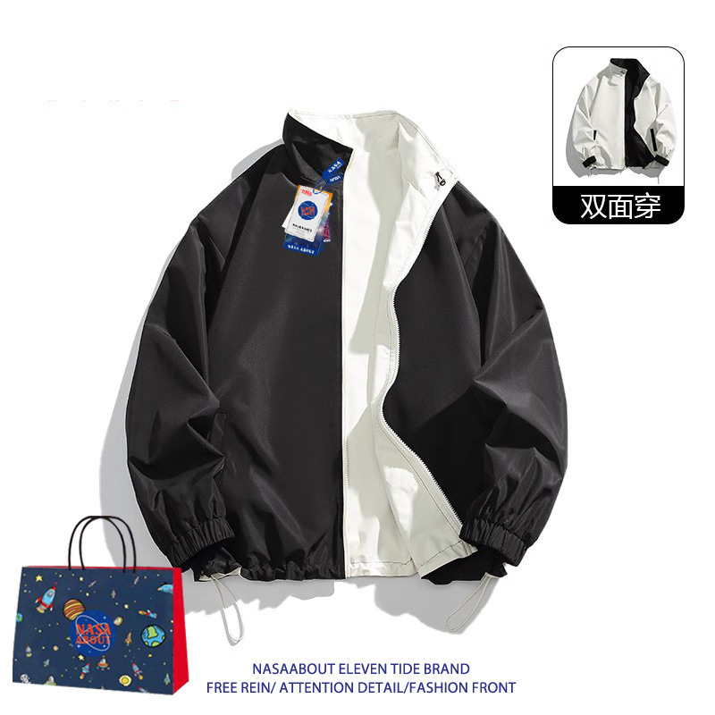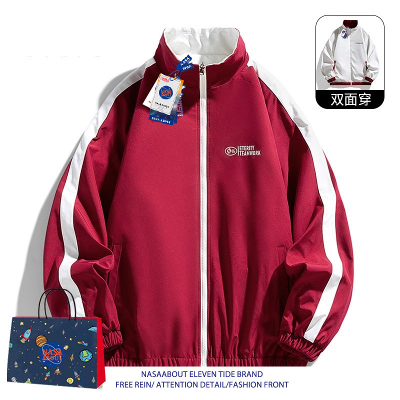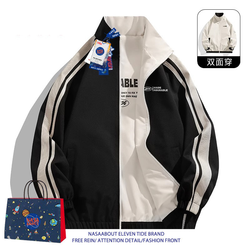 NASA ABOUT 남성용 리버시블 재킷, 초봄, 초가을 트렌디 브랜드 루즈 커플 스탠드 칼라 탑, 스몰 프래그런스 재킷스토어 가기