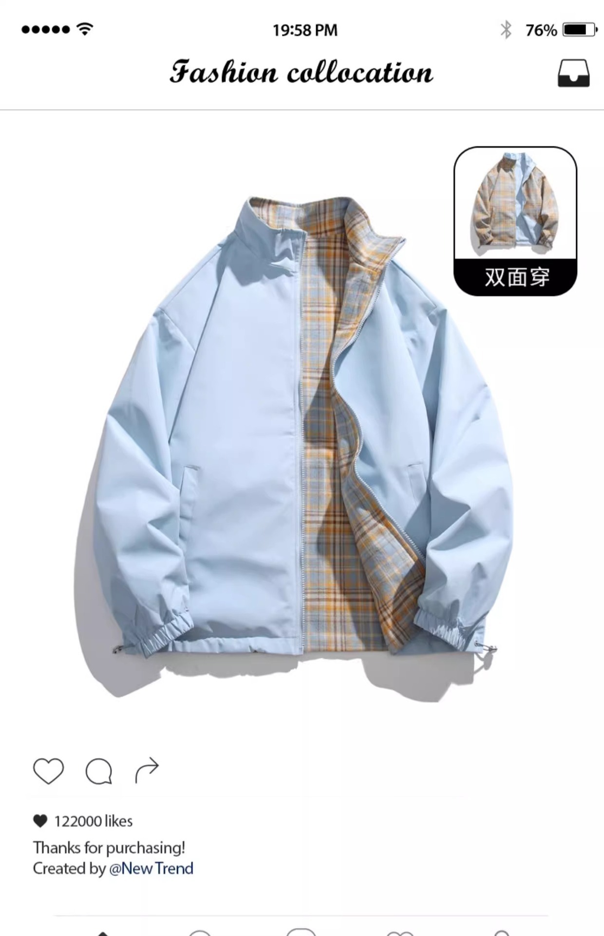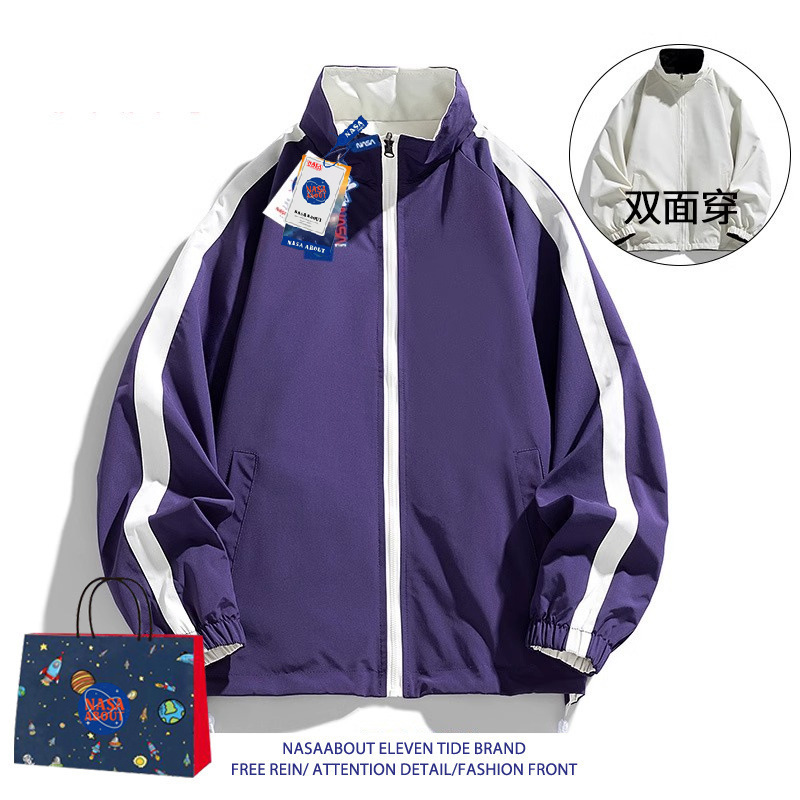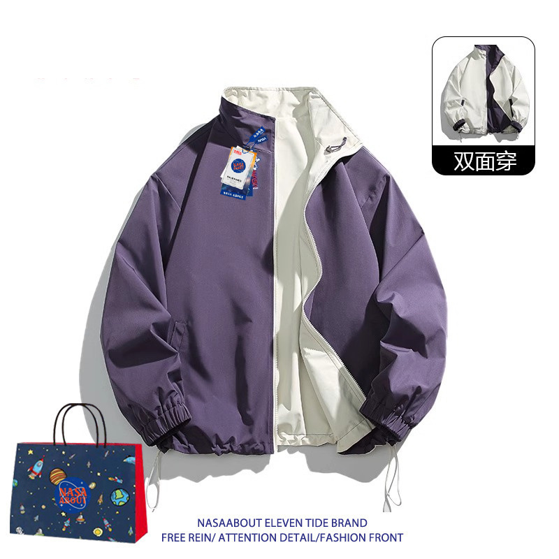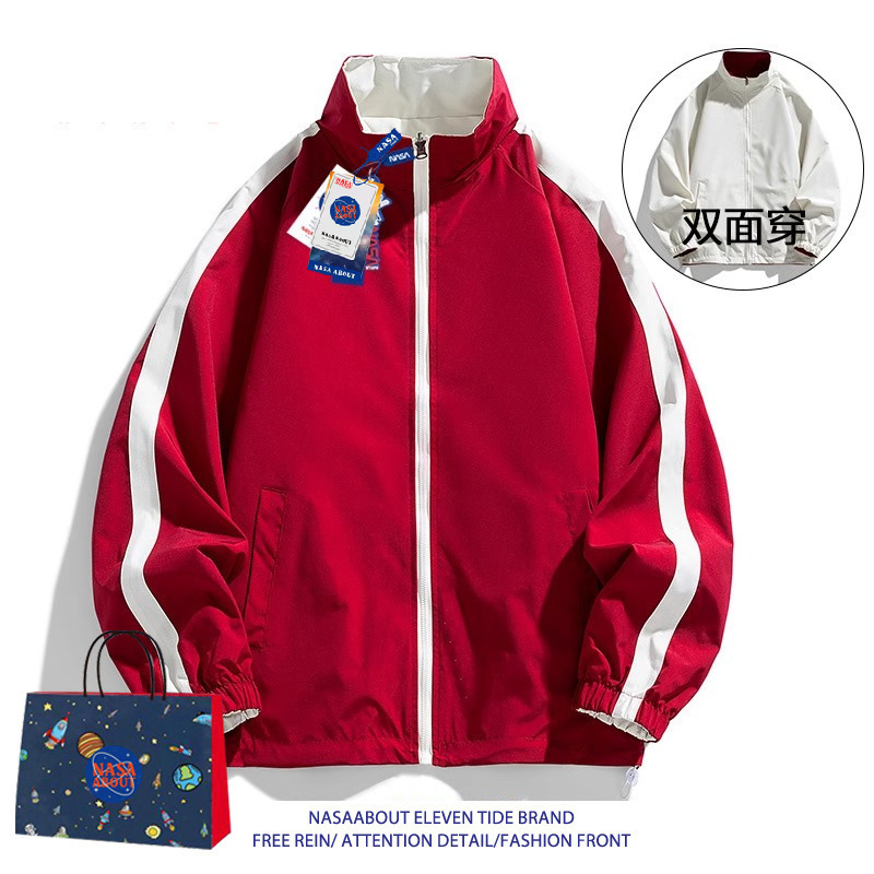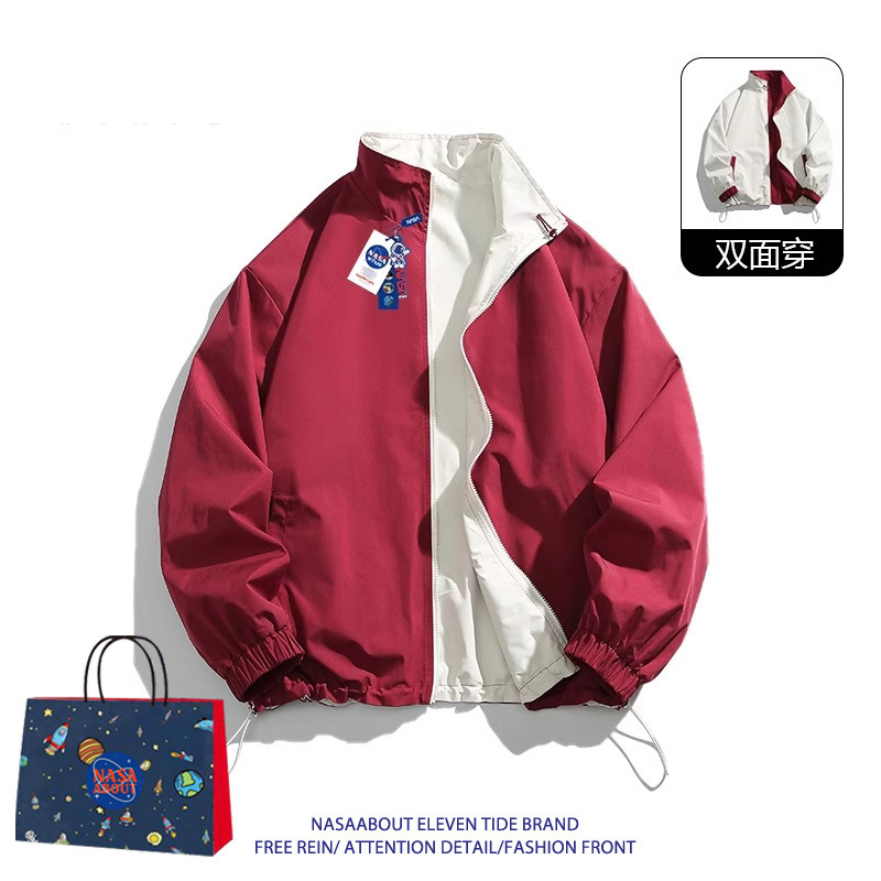 NASA ABOUT 남성용 리버시블 재킷, 초봄, 초가을 트렌디 브랜드 루즈 커플 스탠드 칼라 탑, 스몰 프래그런스 재킷스토어 가기