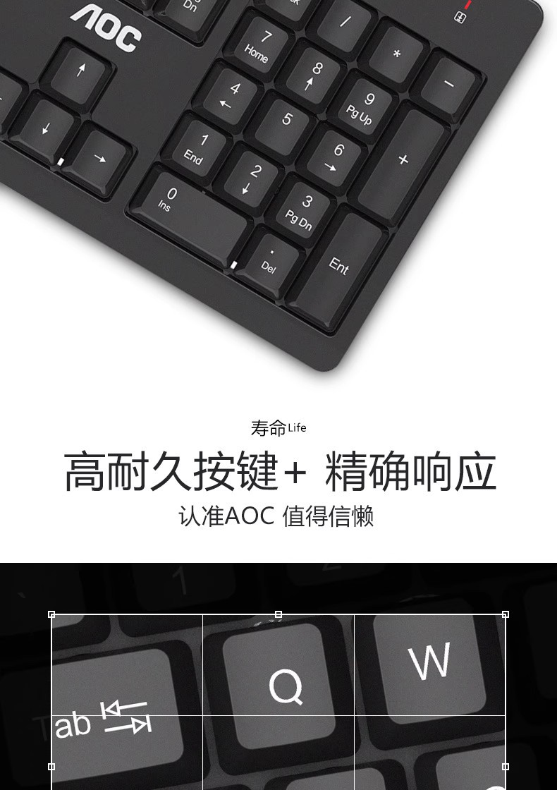 AOC TPV KM160 유선 키보드 마우스 세트 홈 오피스 유닛 구매 USB 키보드 마우스 액세서리 도매스토어 가기