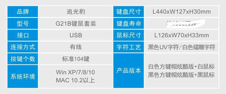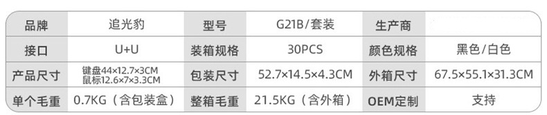 Chuang Guang Bao G21B Luminous 홈 컴퓨터 비즈니스 사무실 usb 유선 키보드 마우스 세트 국경 간 공급
