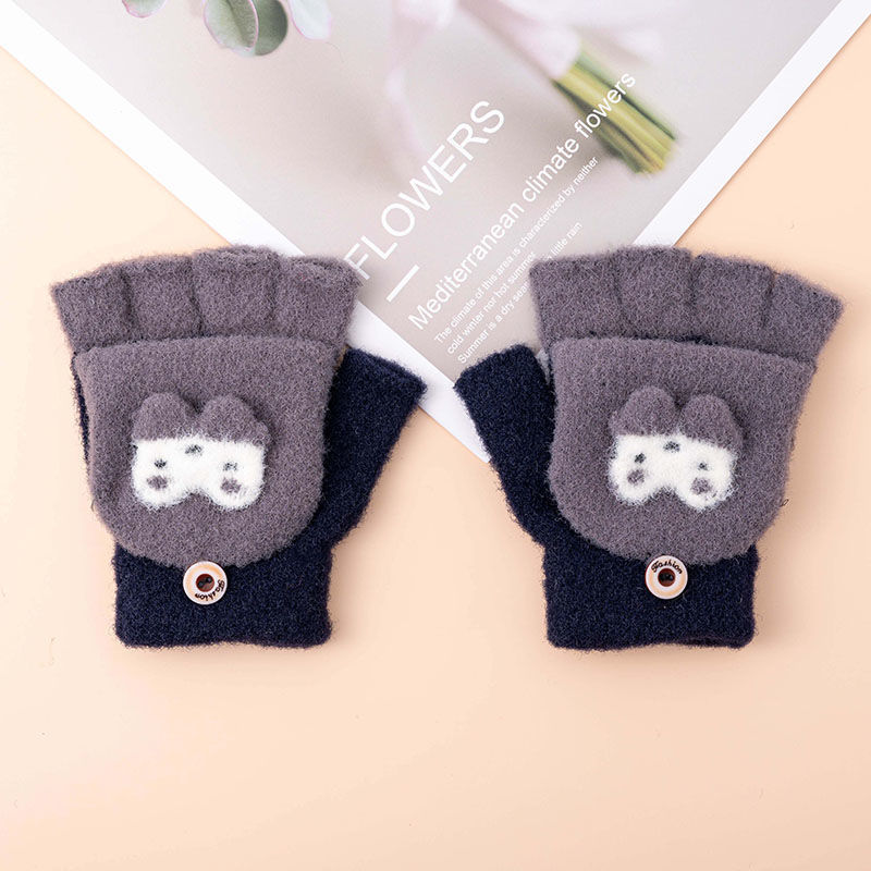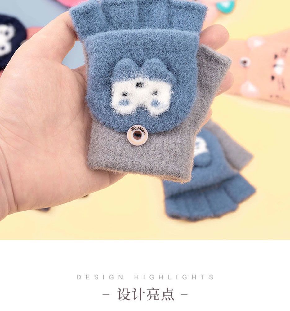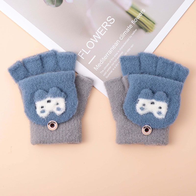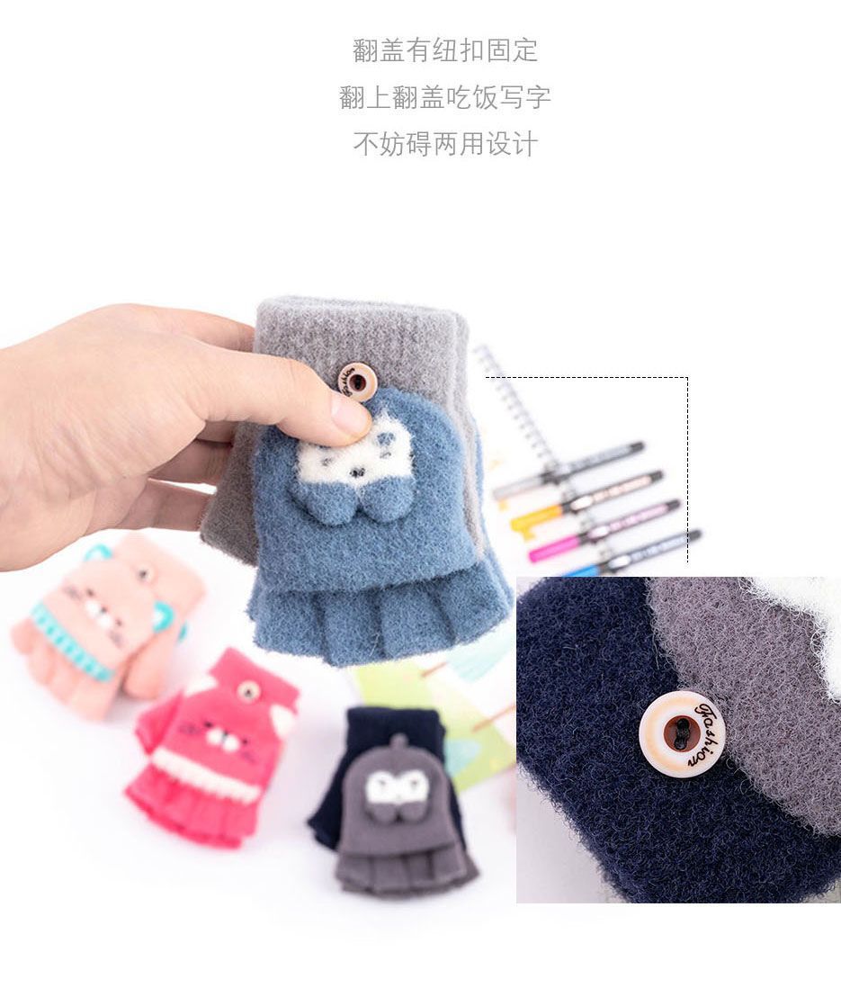 소년 소녀를위한 반 손가락 따뜻한 플립-온 장갑을 쓰는 학생들을위한 어린이 장갑 겨울 귀여운 감기 방지 장갑스토어 가기