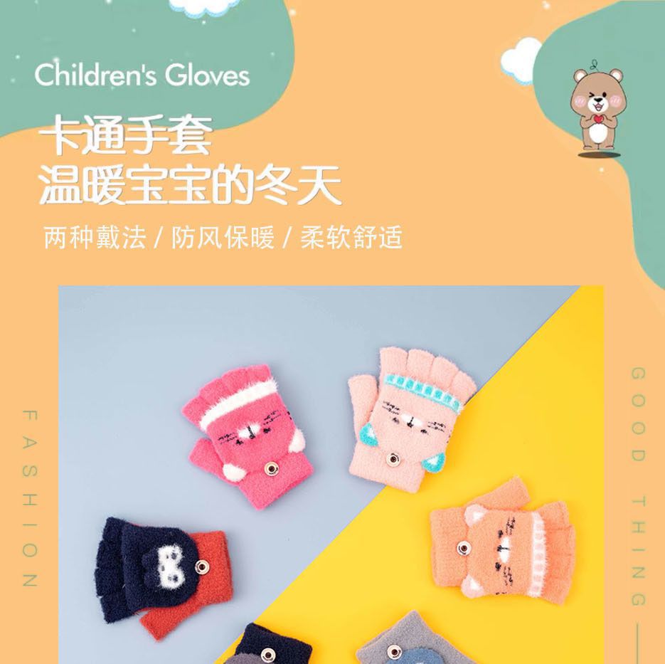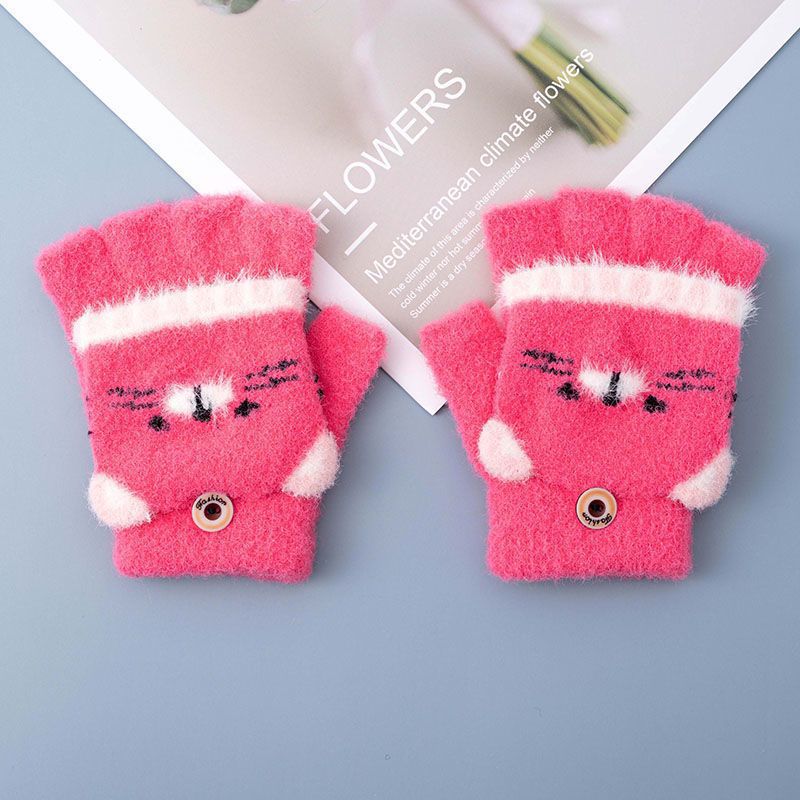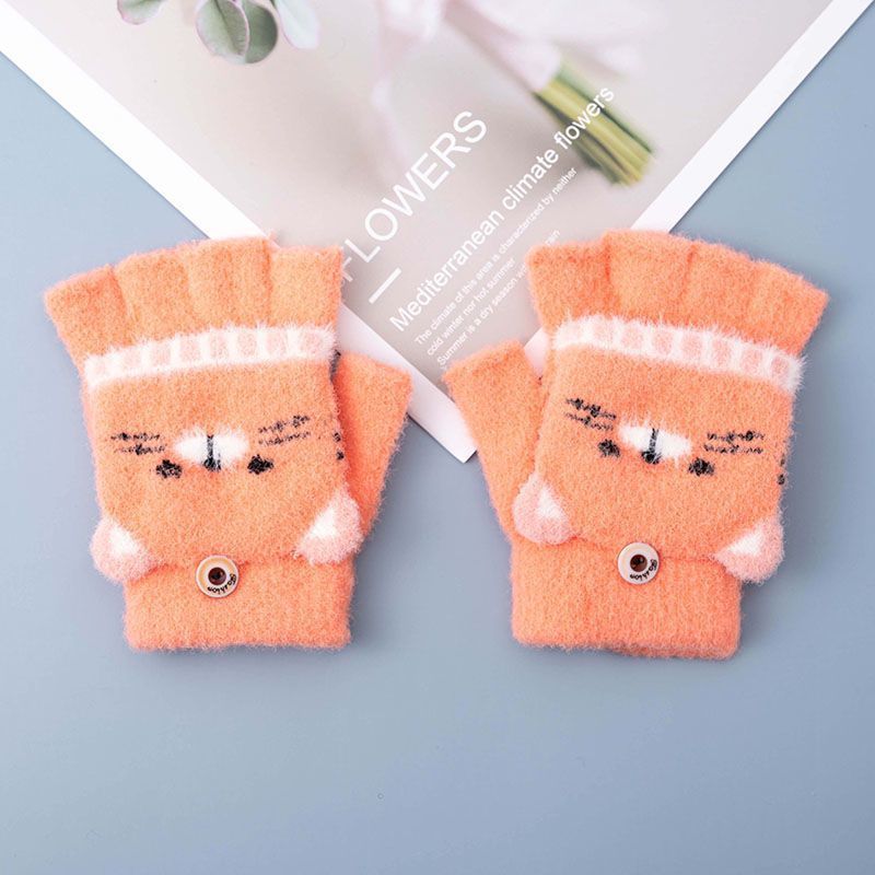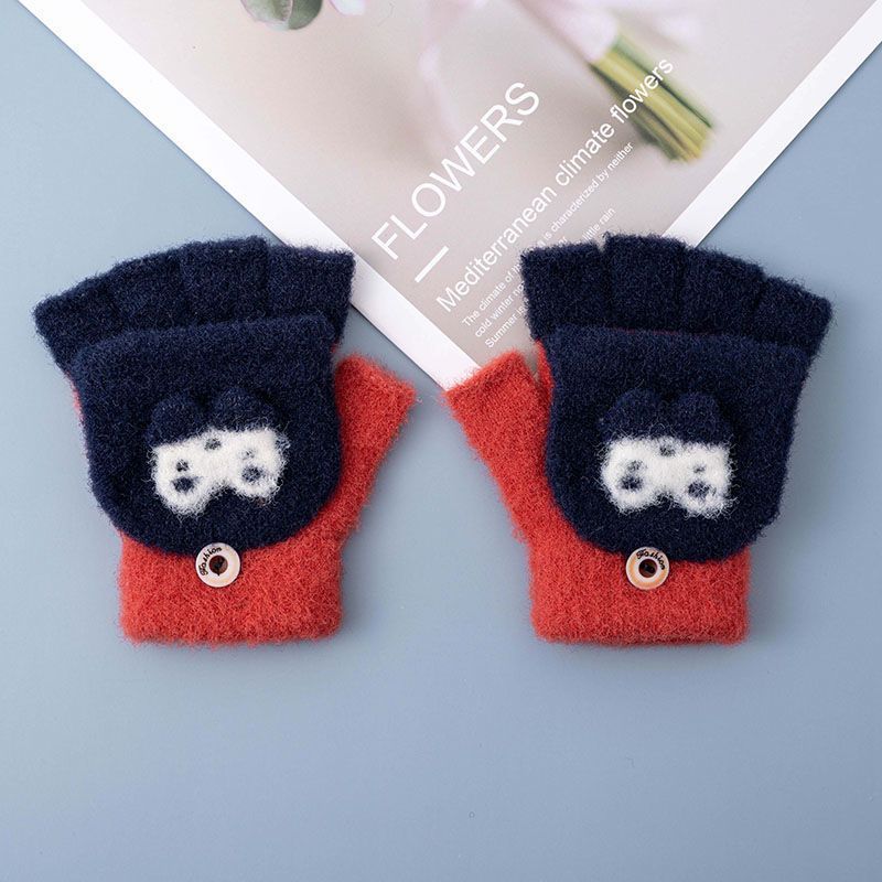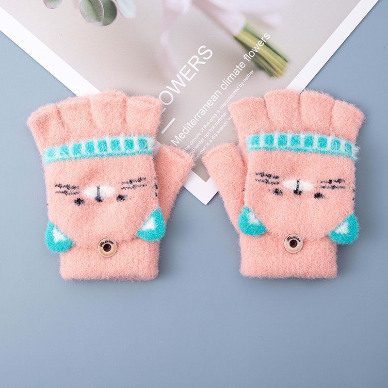 소년 소녀를위한 반 손가락 따뜻한 플립-온 장갑을 쓰는 학생들을위한 어린이 장갑 겨울 귀여운 감기 방지 장갑