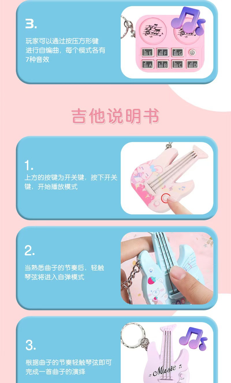인터넷 축하 미니 악기 키 체인 DJ 접시 플레이어 기타 피아노 귀여운 음악 게임 기계 어린이 교육 장난감