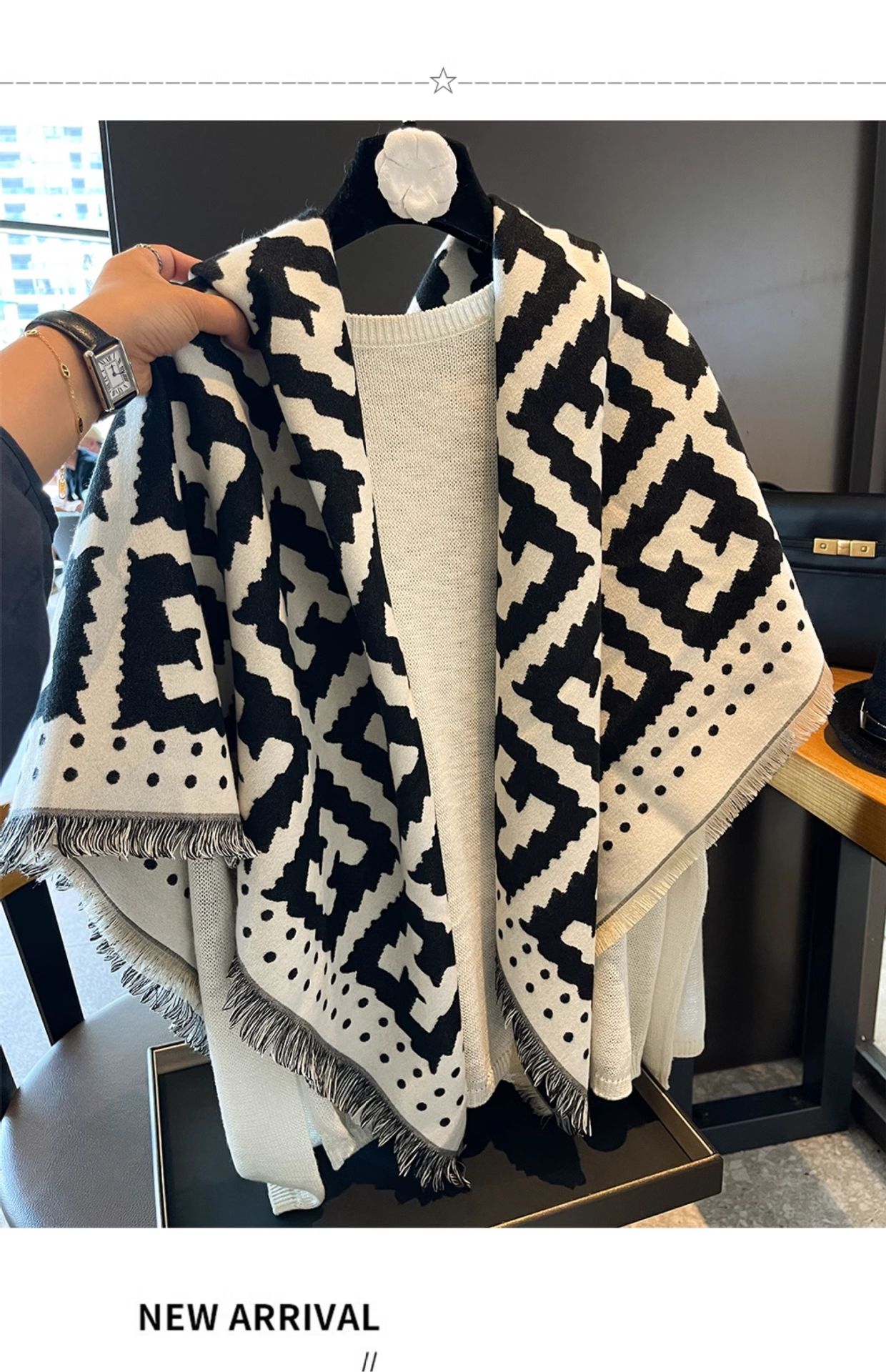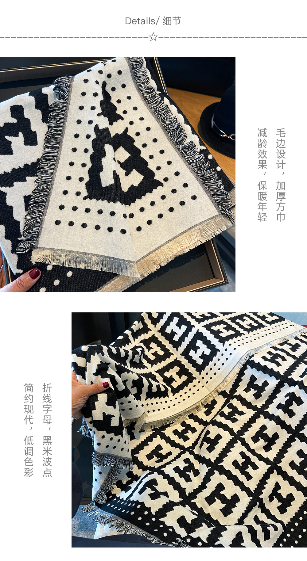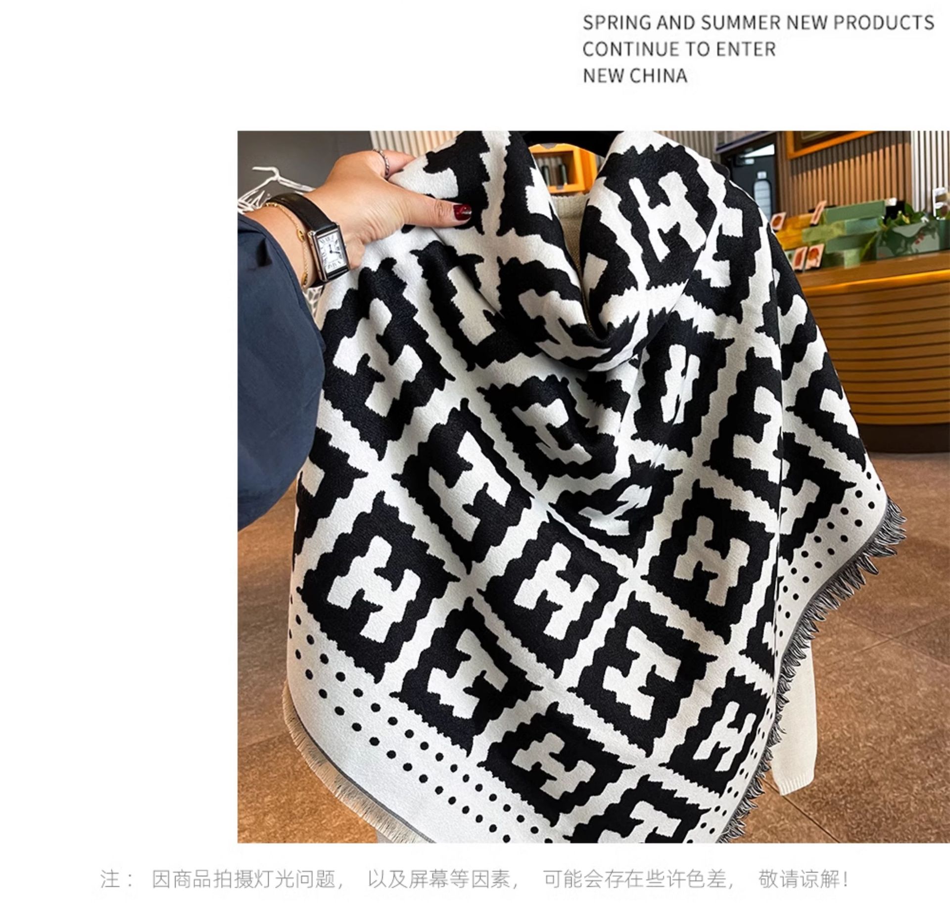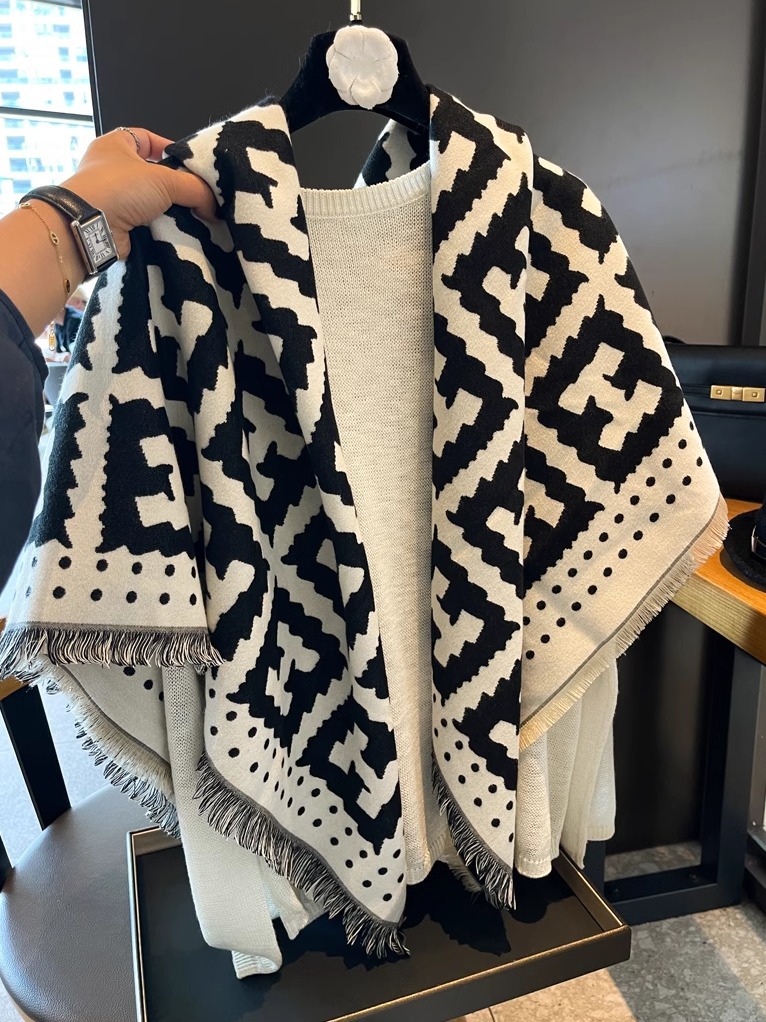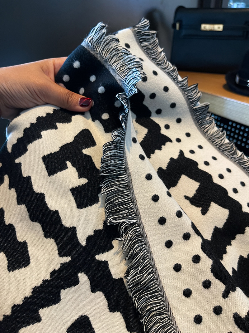 秋冬方巾高级感黑米H字母双面双色仿羊绒围巾女加厚保暖披肩围脖