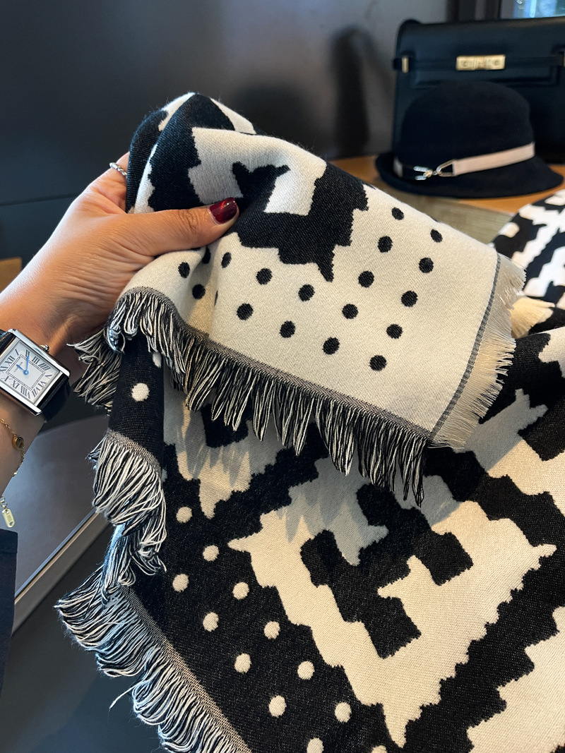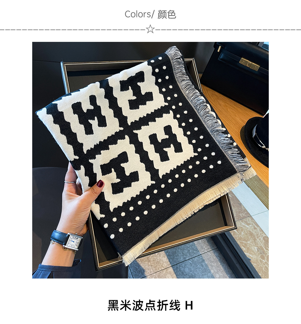 가을과 겨울 광장 고급 검은 쌀 H 편지 양면 2 색 캐시미어 스카프 여성의 두꺼운 따뜻한 목도리 스카프스토어 가기