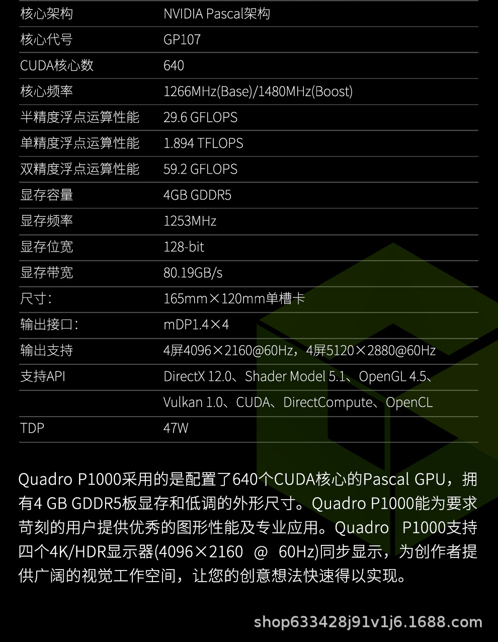 리타이트 엔비디아(NVIDIA) 쿼드로 P1000 4GB GDDR5 전문 비디오 그래픽 카드