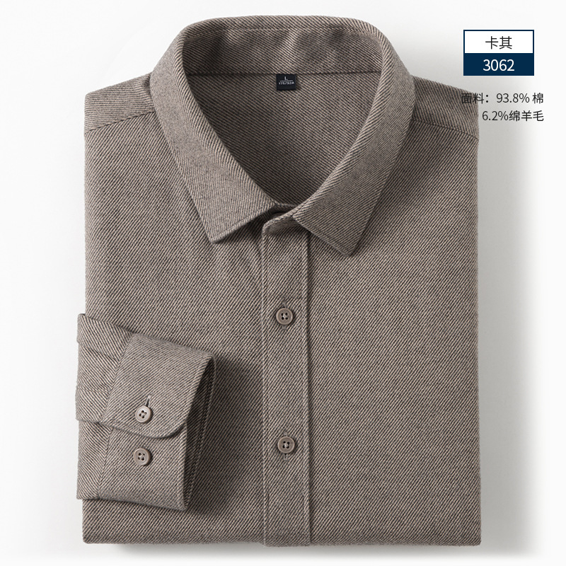 2025 가을 긴팔 셔츠 플러스 벨벳 하이 엔드 중년 비즈니스 캐주얼 코튼 셔츠 남성 공장 직접 판매 도매스토어 가기