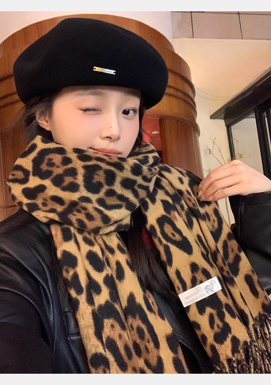 새로운 가을과 겨울 레오파드 무늬 두꺼운 따뜻한 유럽과 미국 한국 패션 매일 모방 캐시미어 술 스카프 목도리
