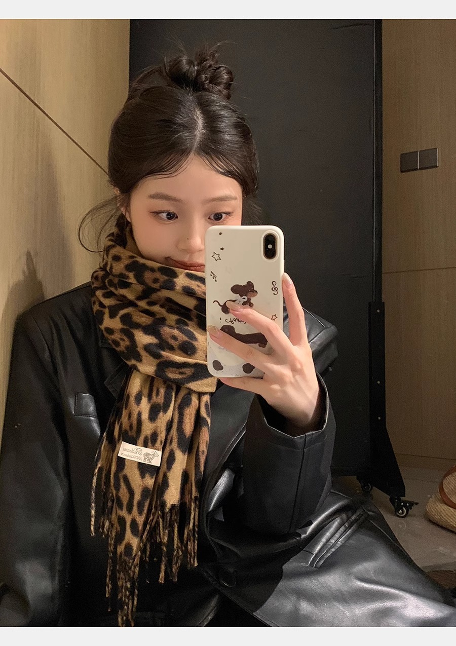 새로운 가을과 겨울 레오파드 무늬 두꺼운 따뜻한 유럽과 미국 한국 패션 매일 모방 캐시미어 술 스카프 목도리스토어 가기