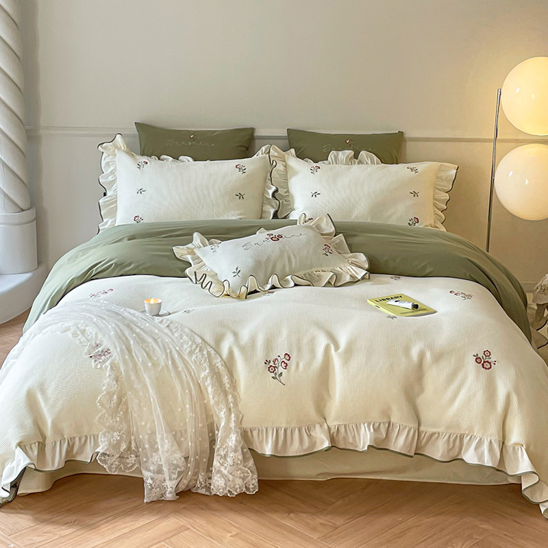 신선한 와플 60 면 자카드 4 종 빈티지 꽃 자수면 퀼트 커버 침대 린넨 침구