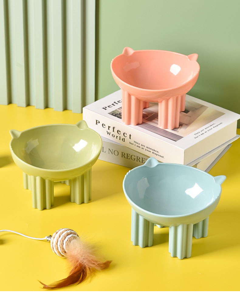 애완 동물 그릇 고양이 분지 고양이 그릇 보호 자궁 경부 척추 큰 물 그릇 고양이 그릇 비스듬한 입 높은 발 그릇 안티 노크 고양이 먹이 그릇 개 그릇스토어 가기
