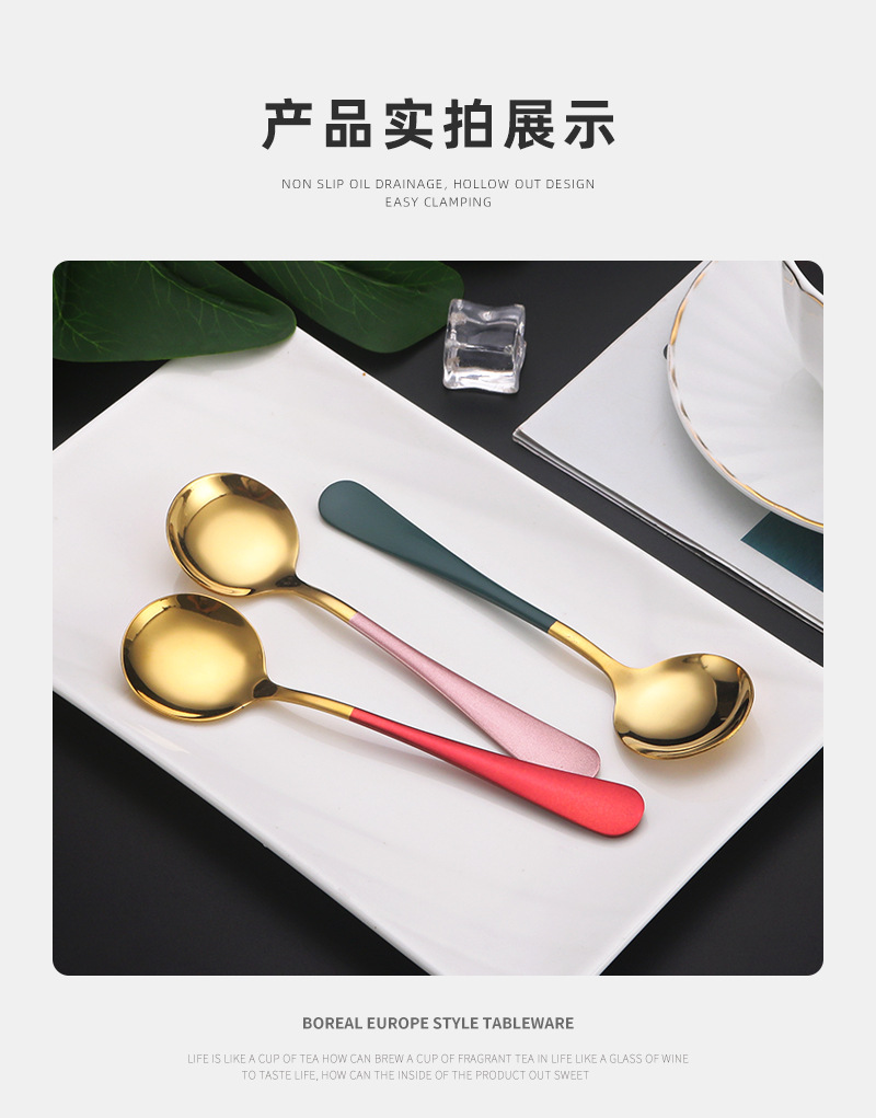 스테인레스 스틸 메쉬 레드 라운드 스푼 긴 핸들 가정용 레스토랑 커피 스푼 수프 창조적 인 디저트 새 둥지 혼합 숟가락 제조 업체 도매