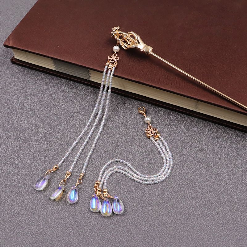 앤티크 헤어핀 헤어 헤어핀 슈퍼 롱 라이스 비드 술 한후 헤어 핀 쌍 헤어 핀 술 개별 술 한푸 액세서리 Jiatai
