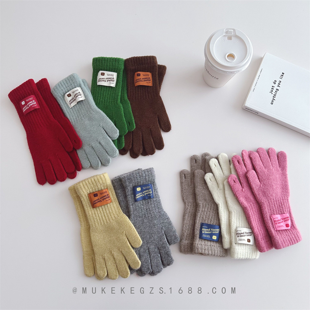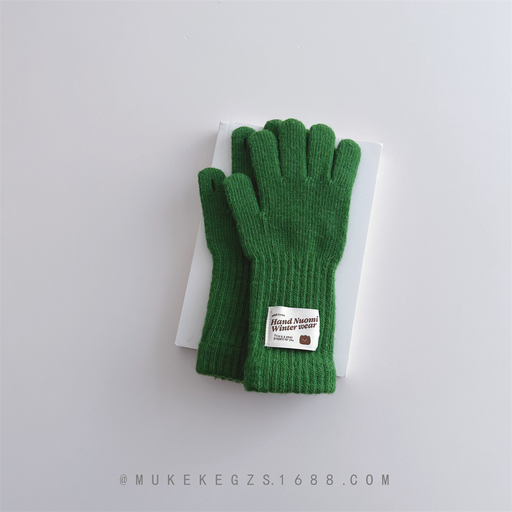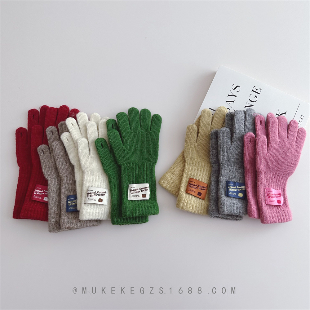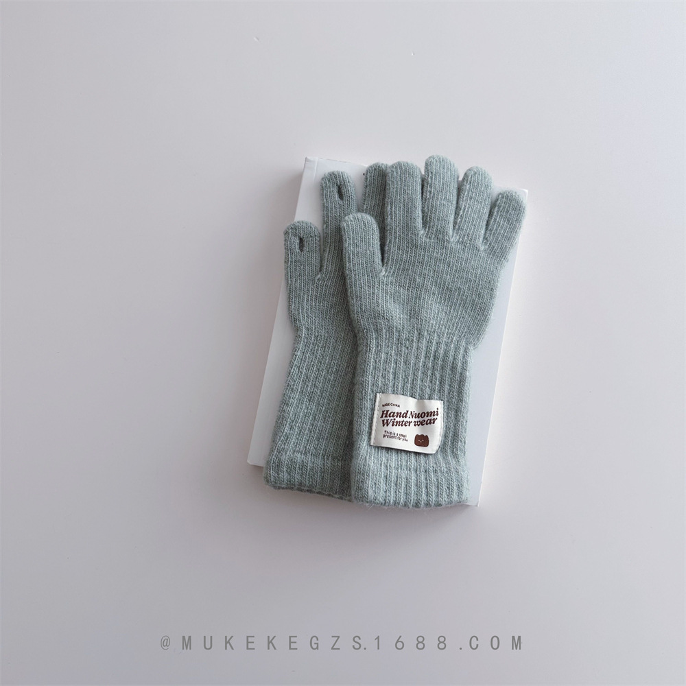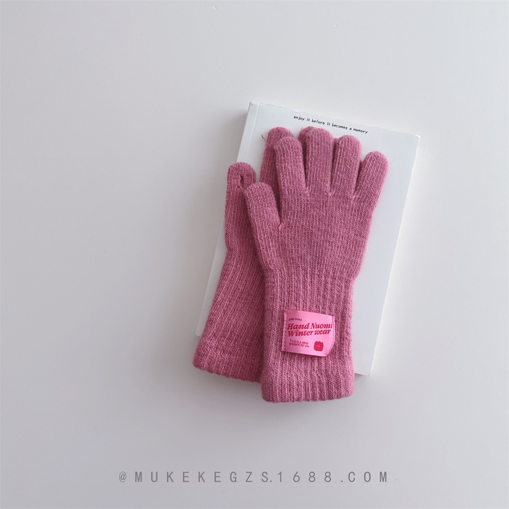 한국 올매치 어린이 니트 장갑 겨울 컬러 라벨 야외 승마 매직 장갑 남학생과 여자를위한 서양식 다섯 손가락 장갑