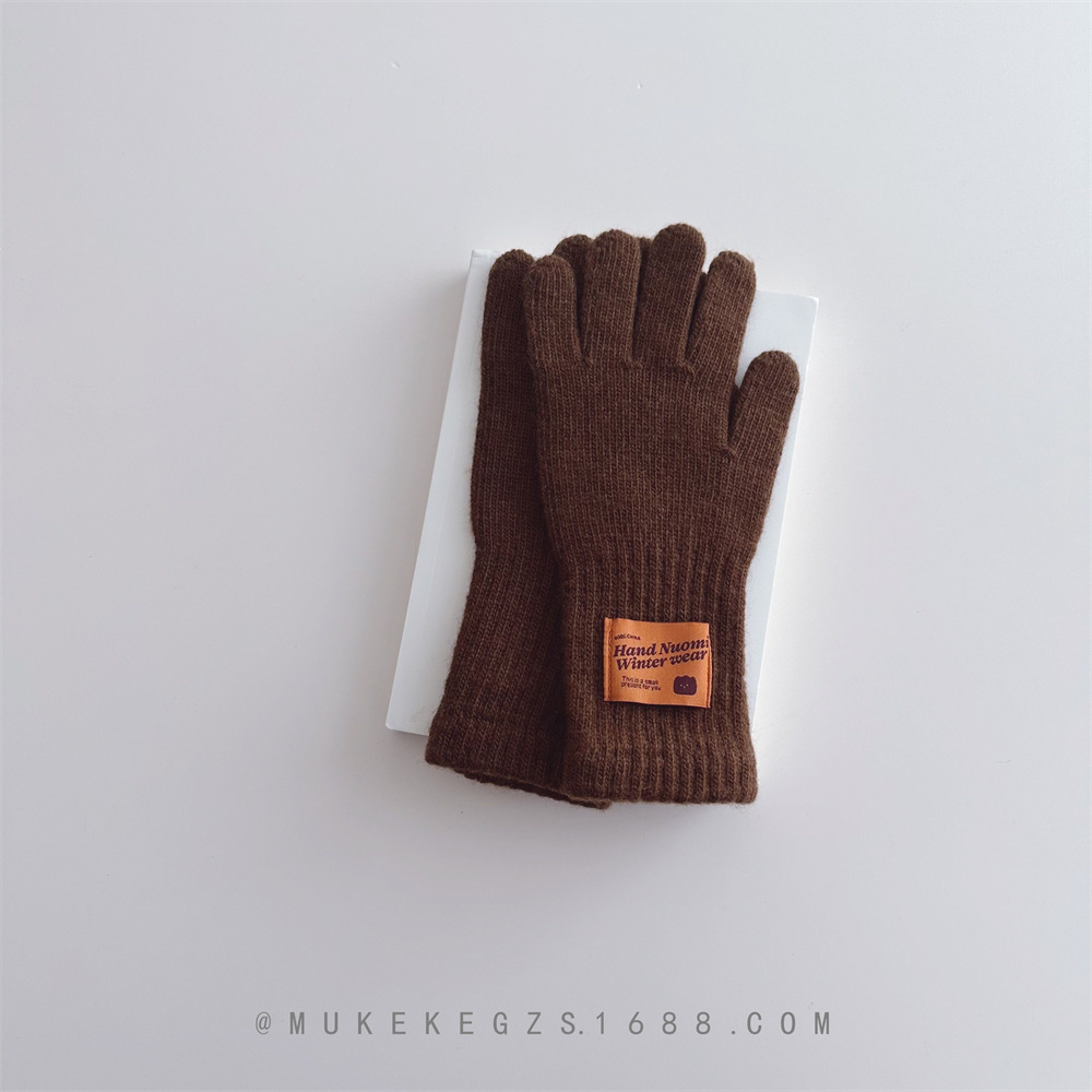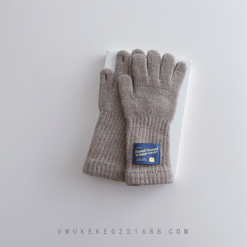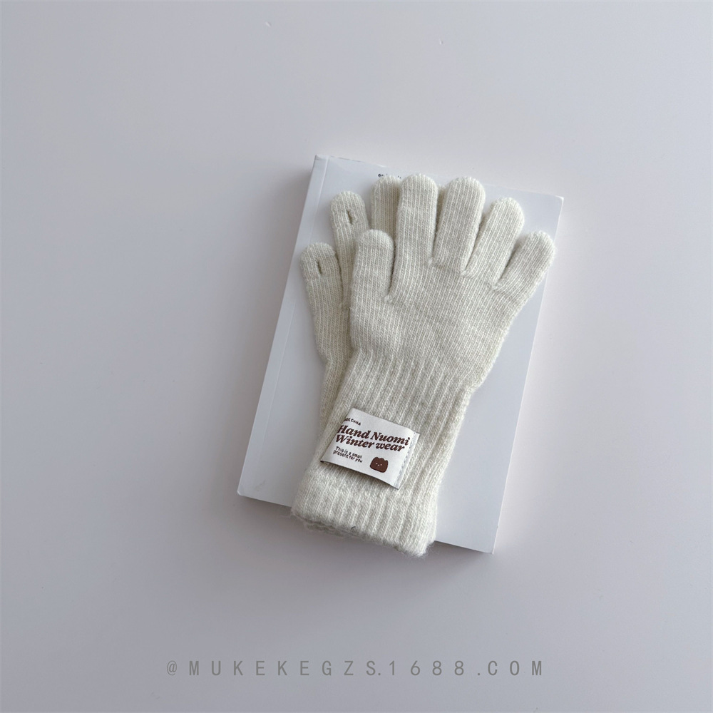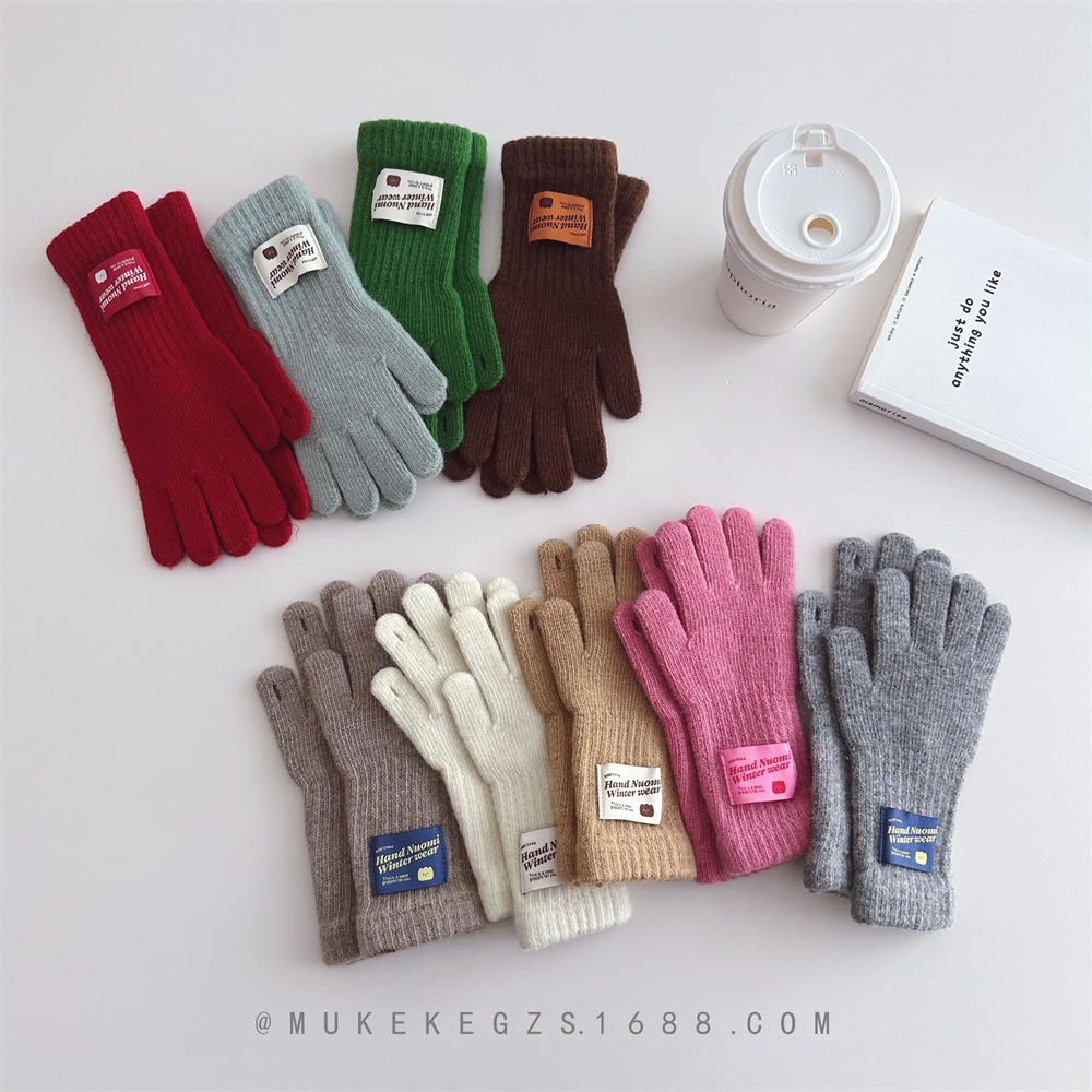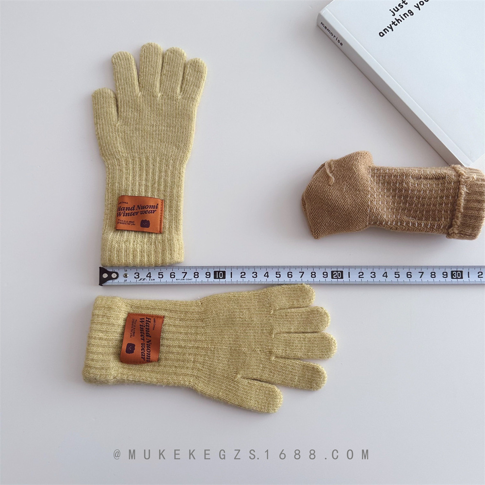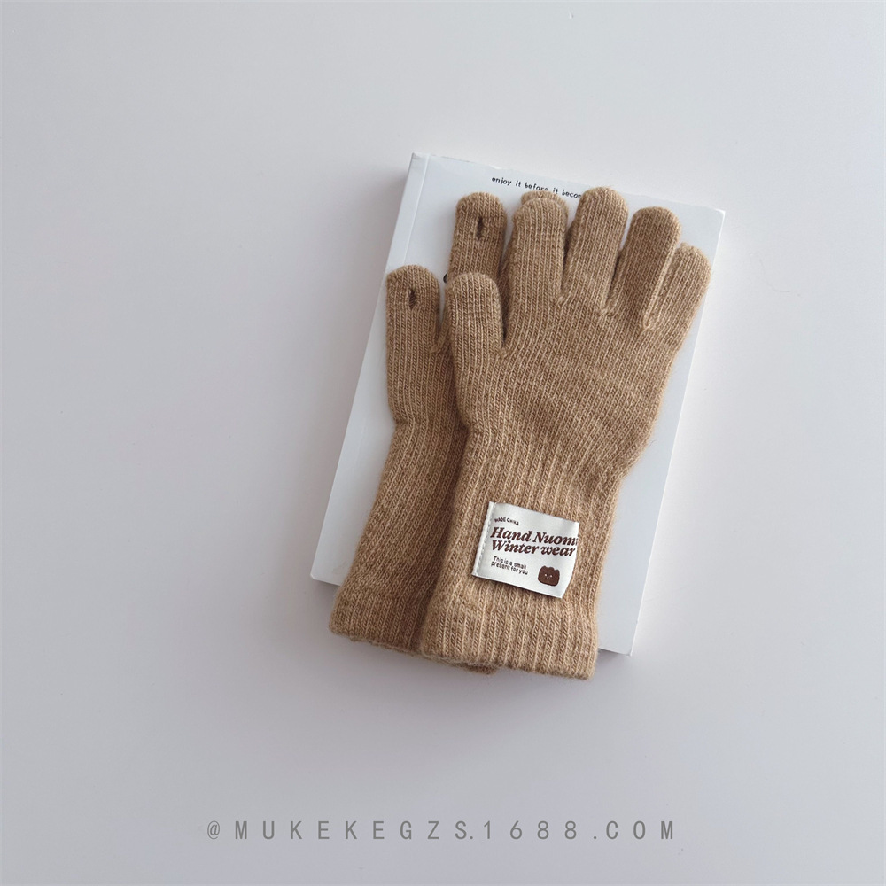 한국 올매치 어린이 니트 장갑 겨울 컬러 라벨 야외 승마 매직 장갑 남학생과 여자를위한 서양식 다섯 손가락 장갑