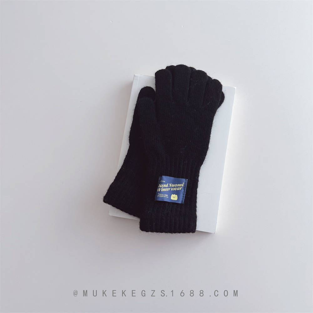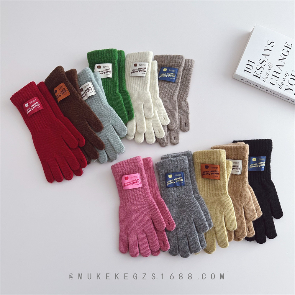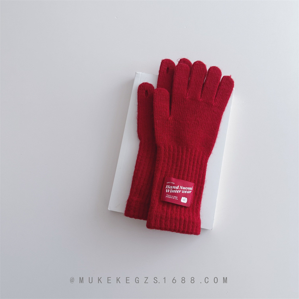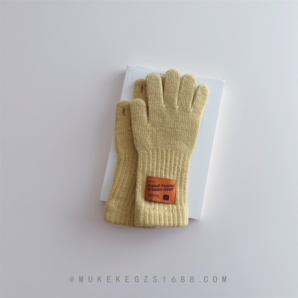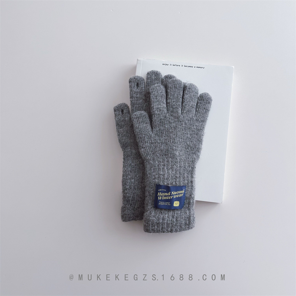 한국 올매치 어린이 니트 장갑 겨울 컬러 라벨 야외 승마 매직 장갑 남학생과 여자를위한 서양식 다섯 손가락 장갑
