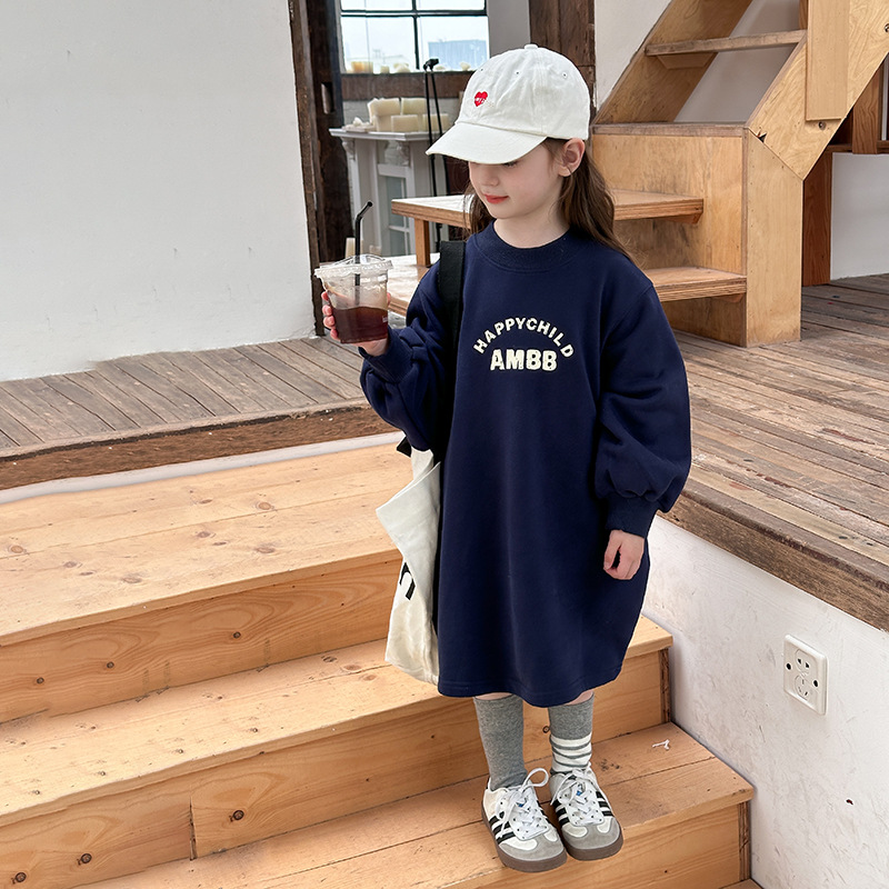 [양털] Aimo Beibei 여자 가을 캐주얼 드레스 어린이 한국 스타일 느슨한 서양식 꽃 봉오리 스웨트 셔츠 드레스스토어 가기