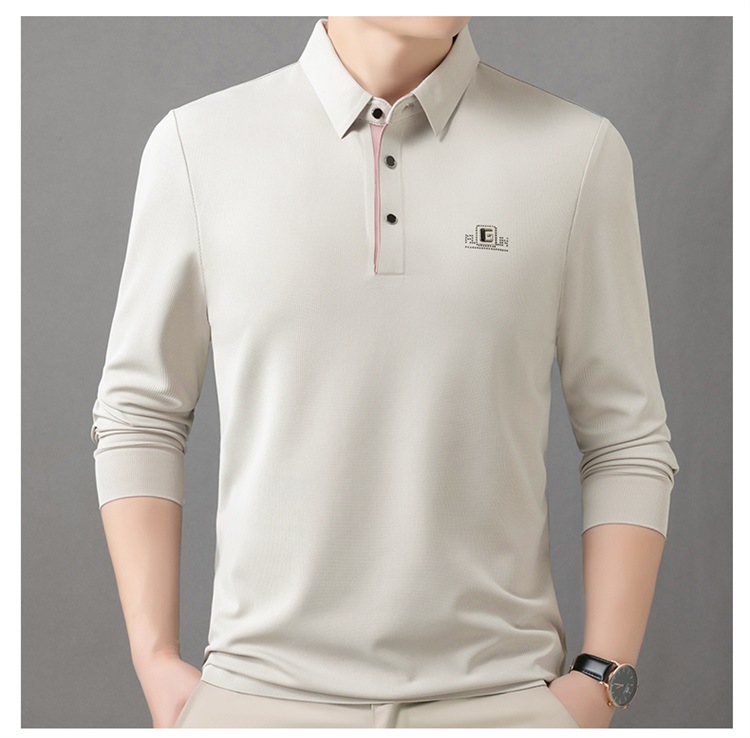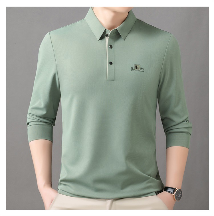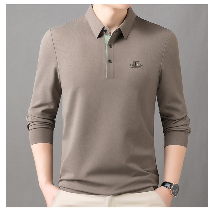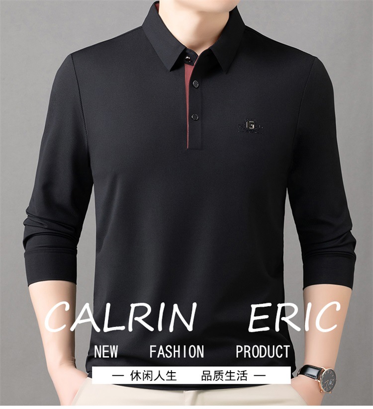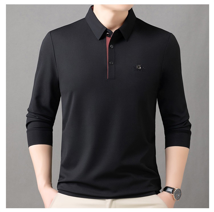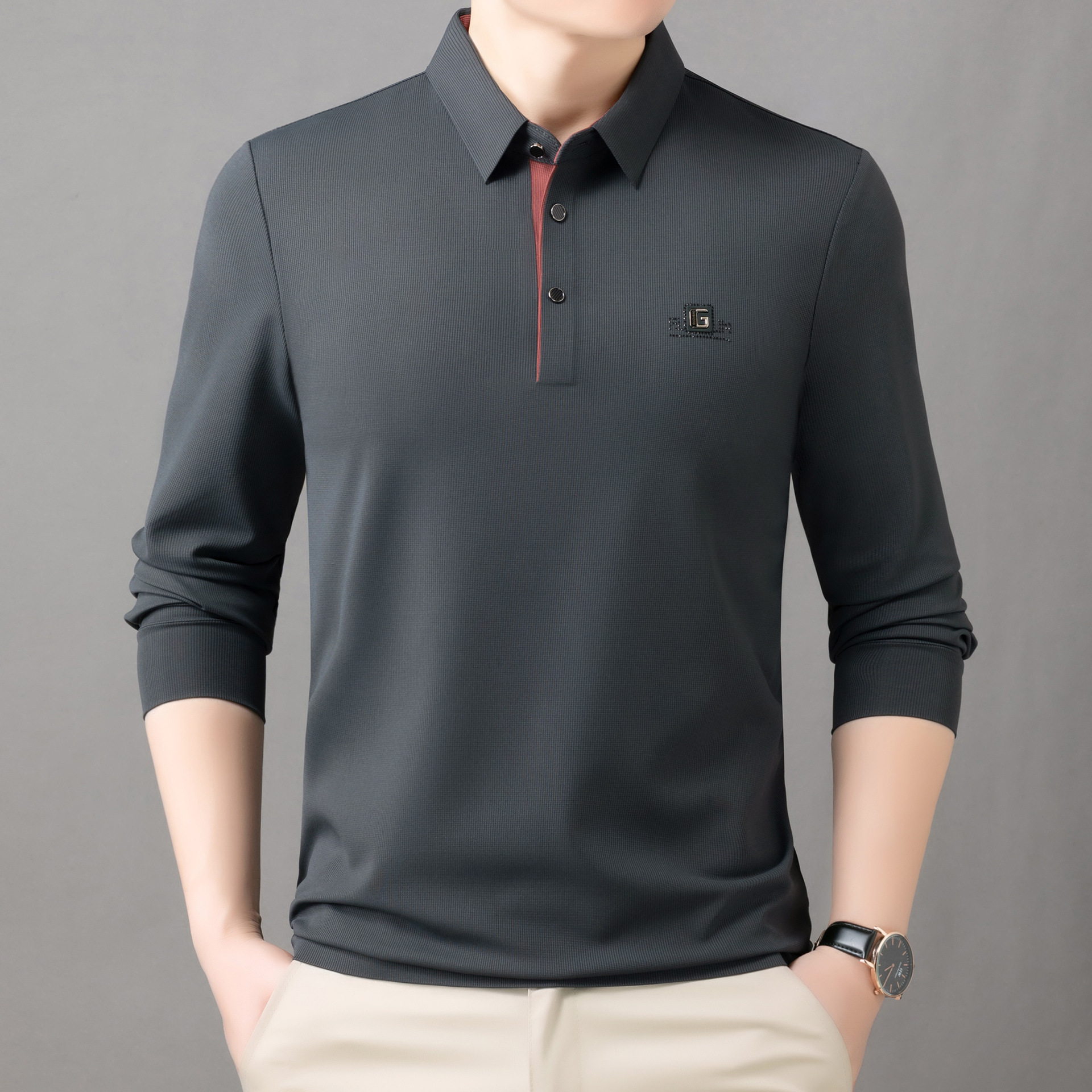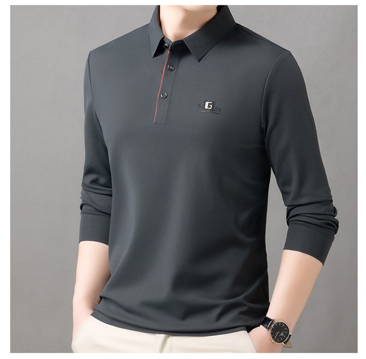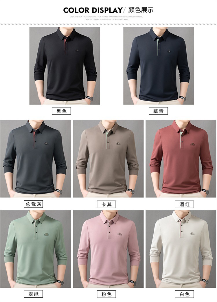2025 봄, 가을 남성 폴로 긴팔 티셔츠 심플 비즈니스 캐주얼 루즈한 중년 아빠 탑 셔츠