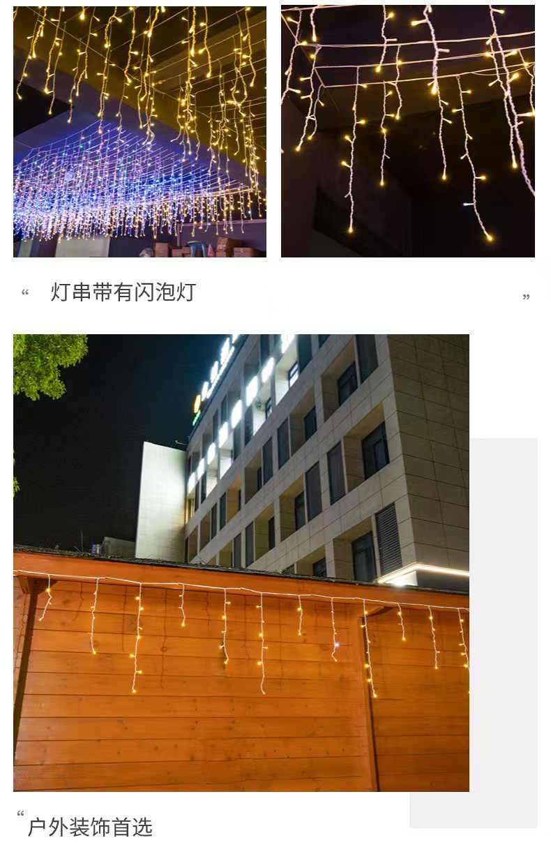 야외 방수 50m LED 커튼 야외 활동 조명 장식 조명 축제 장식 아이스 스트립스토어 가기