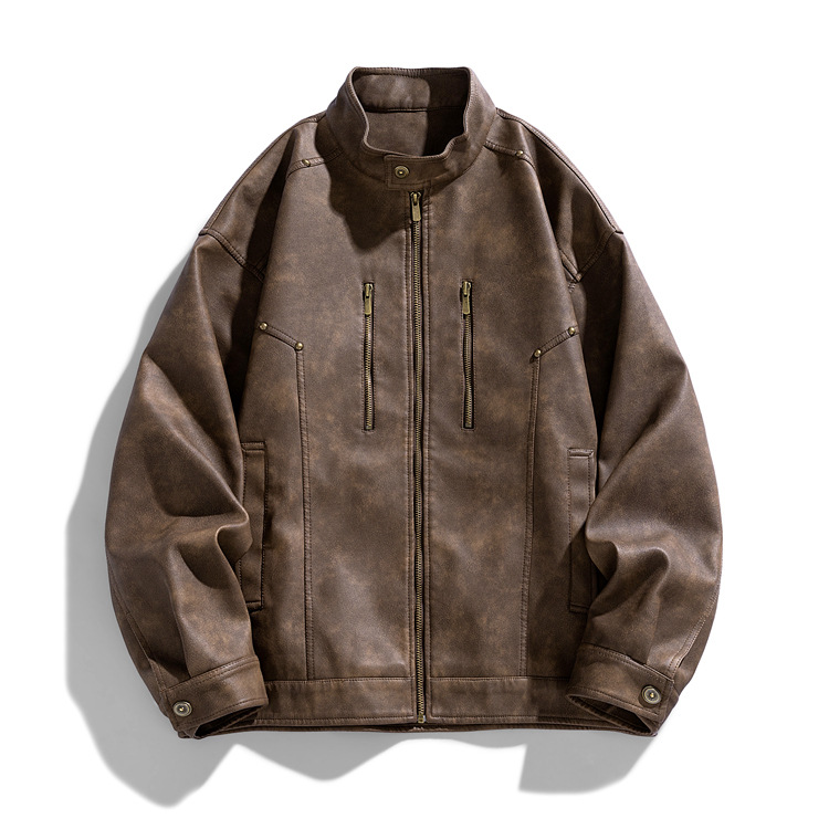 NASA 다크 브라운 다크 브라운 Maillard Leather Jacket 남자 봄 하이 엔드 느낌 Ruffian Handsome Motorcycle Jacket American Vintage Stick스토어 가기