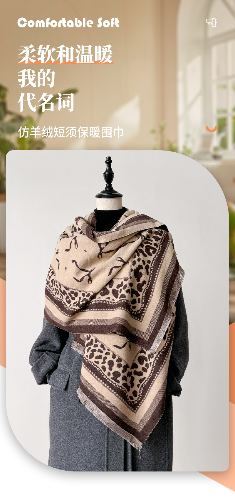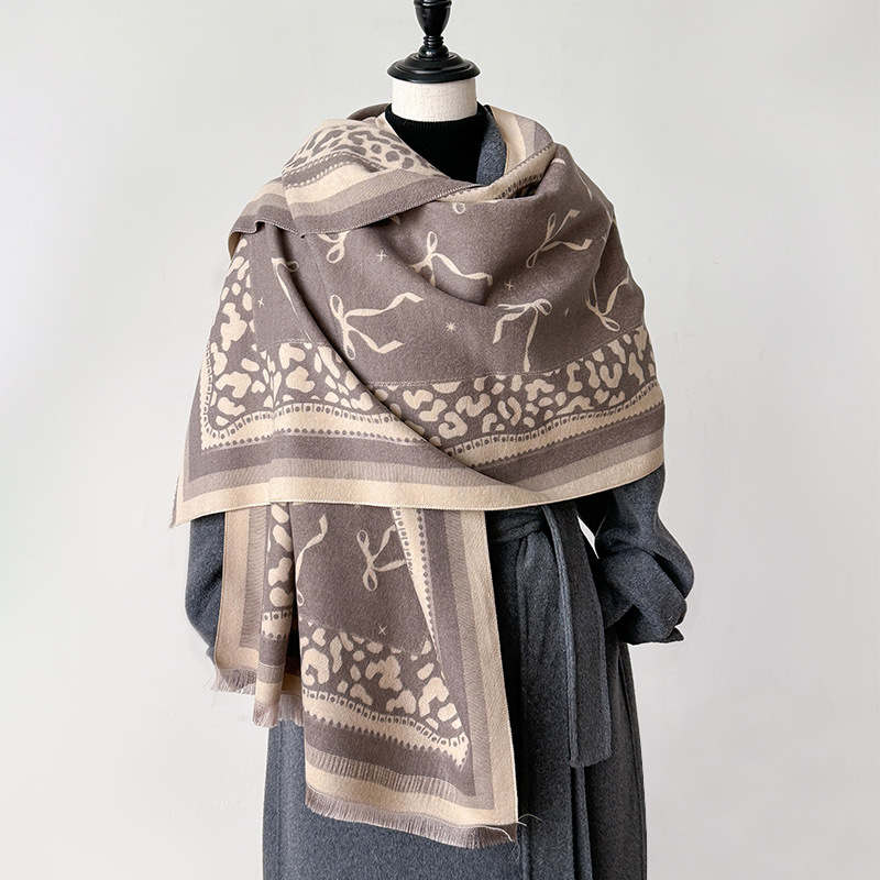 2024 가을과 겨울 새로운 캐시미어 활 장식 빈티지 질감 인쇄 양면 따뜻한 스카프 목도리