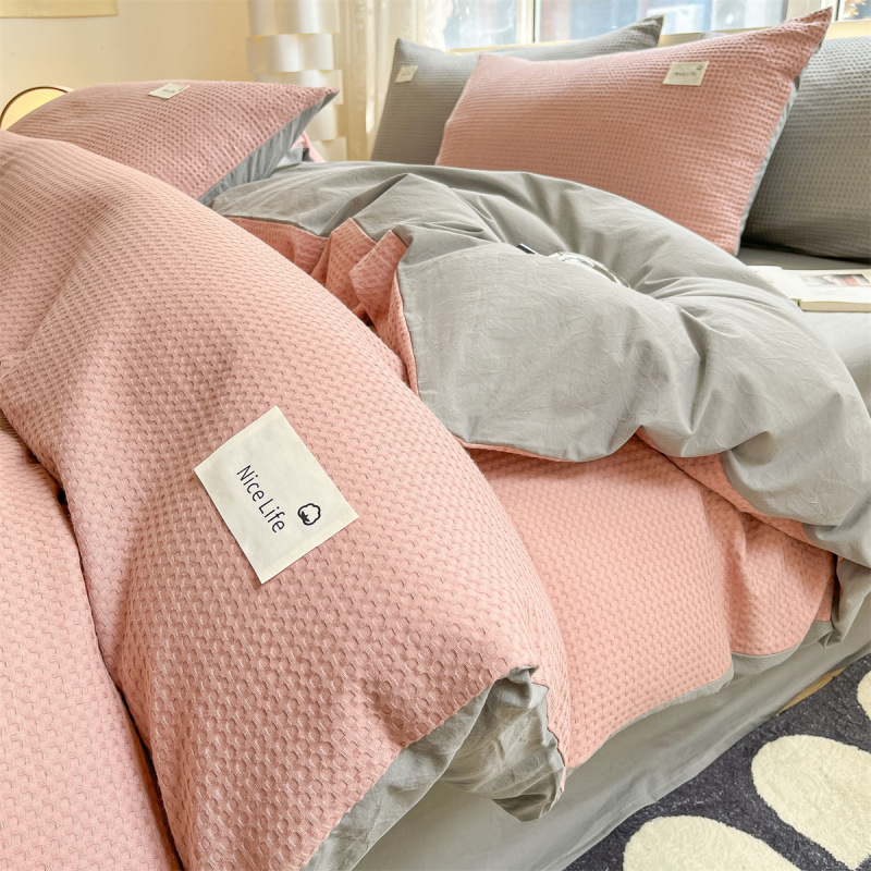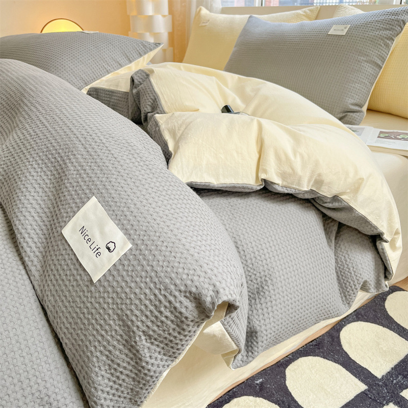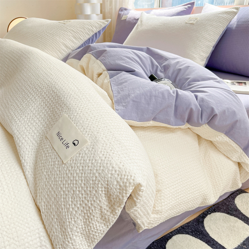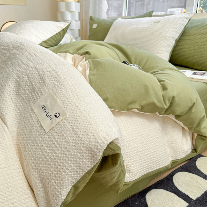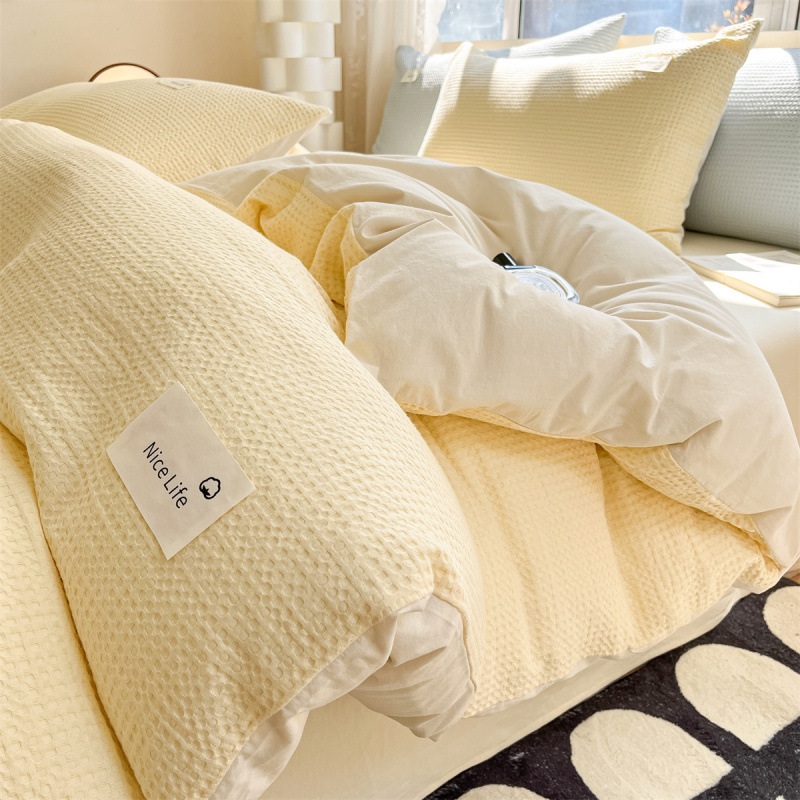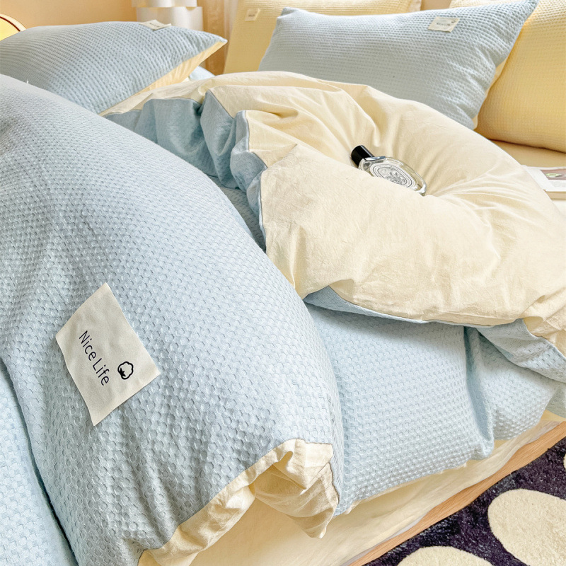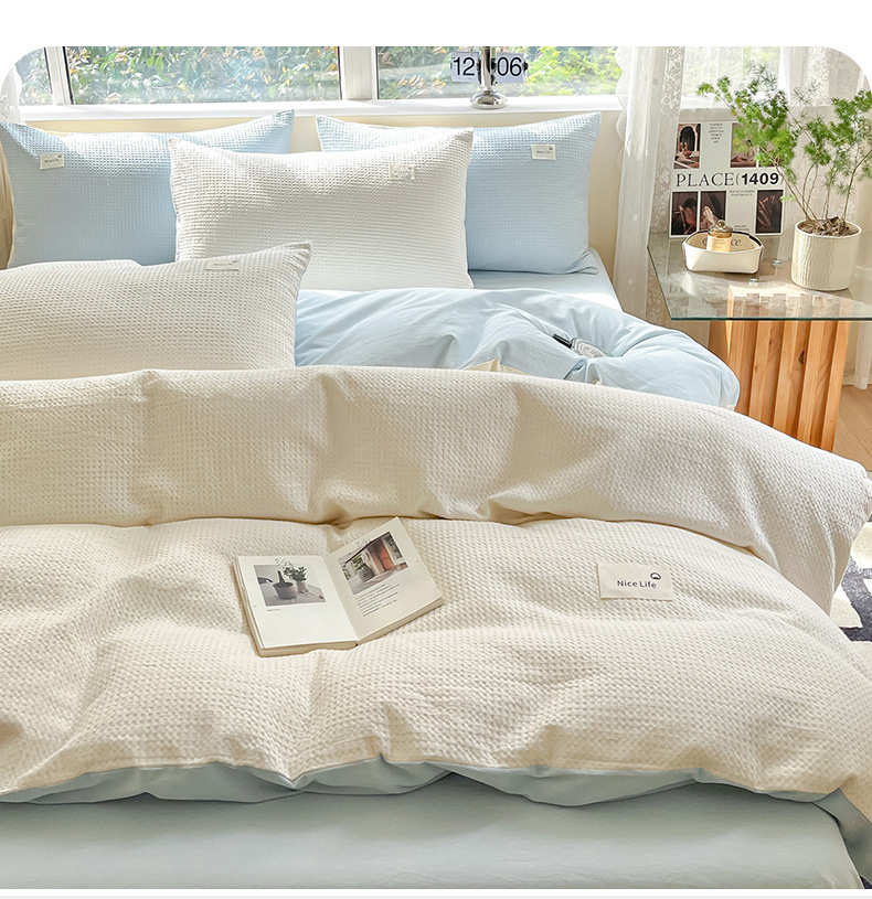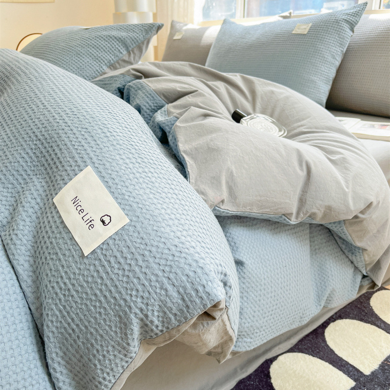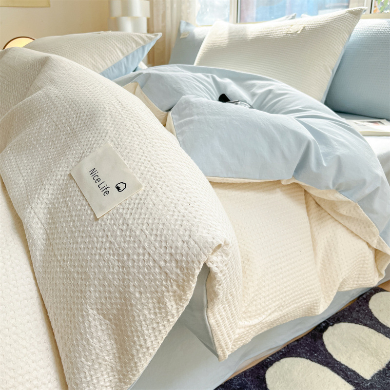 Mr. Jue 와플 코튼 4 피스 세트 100 면 고급 침구 이불 커버 시트 기숙사 3 피스 세트