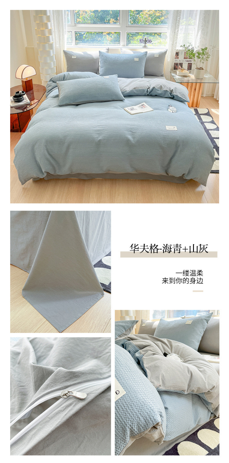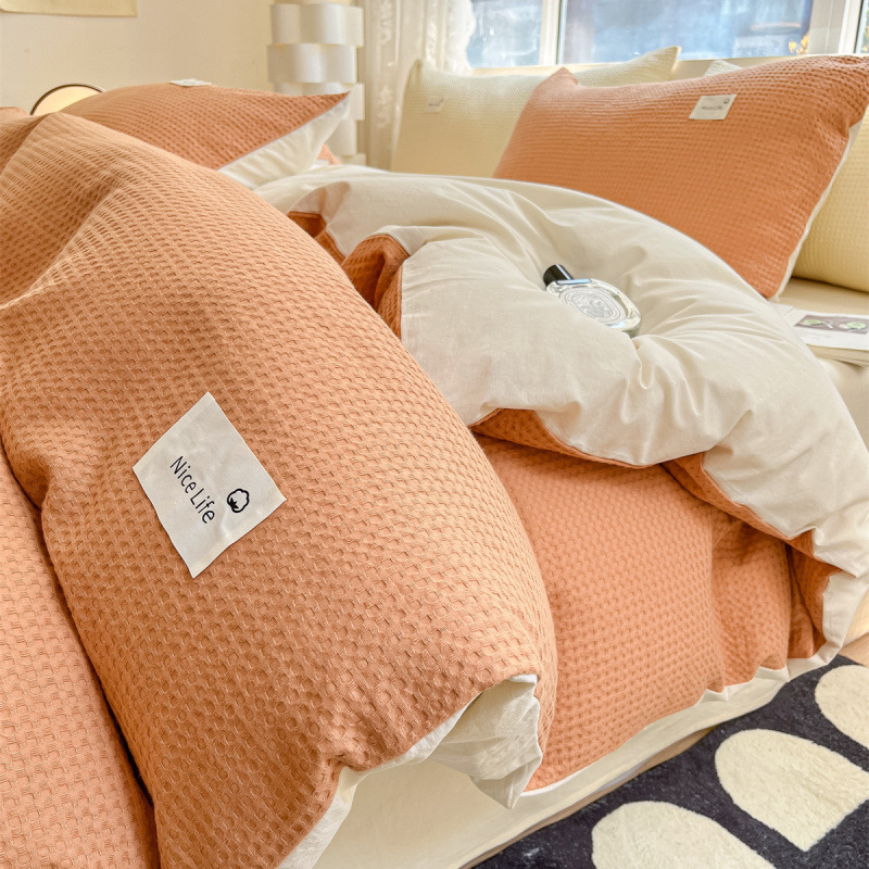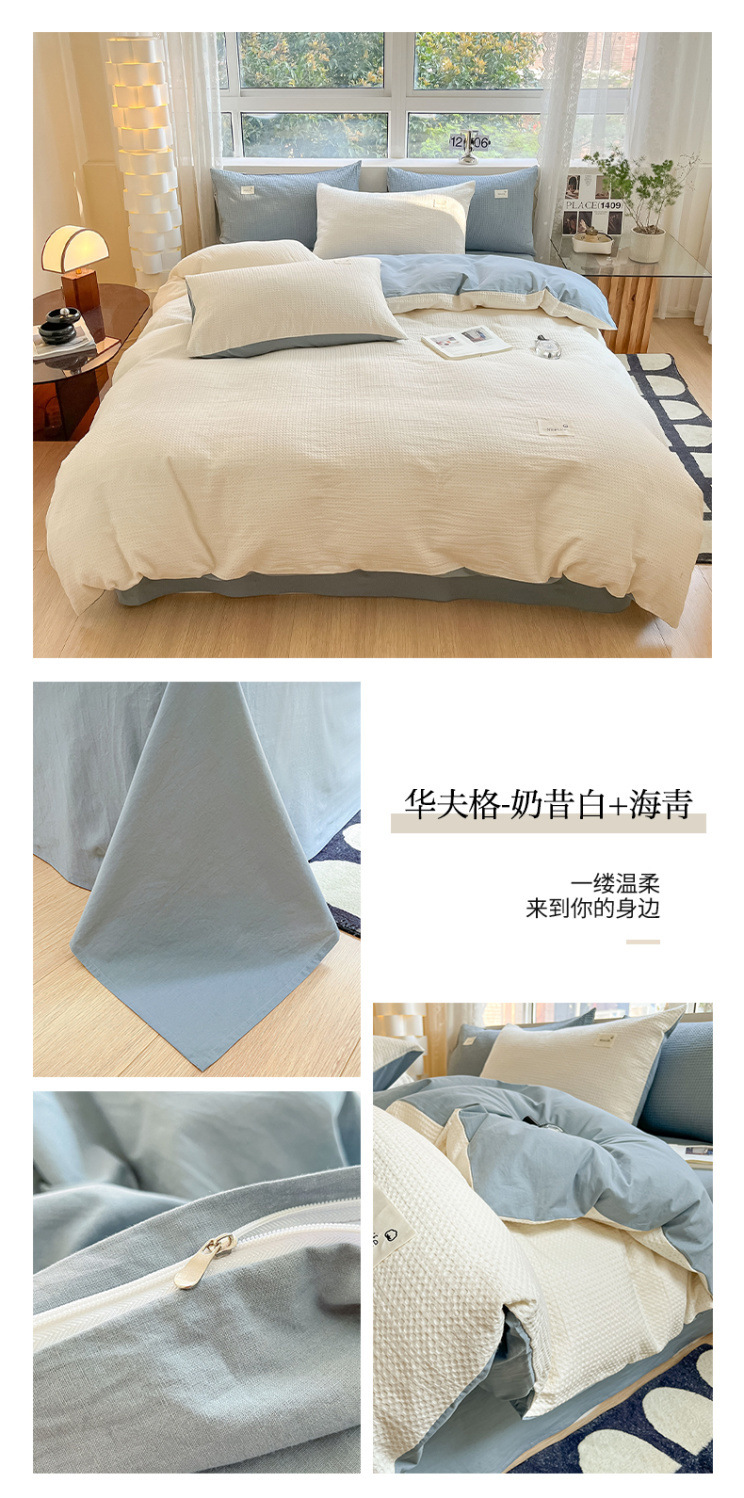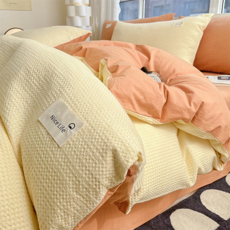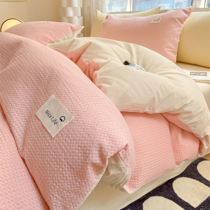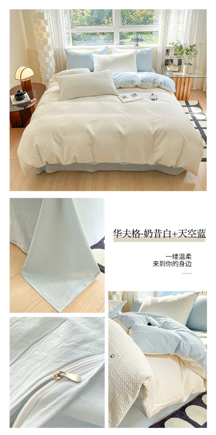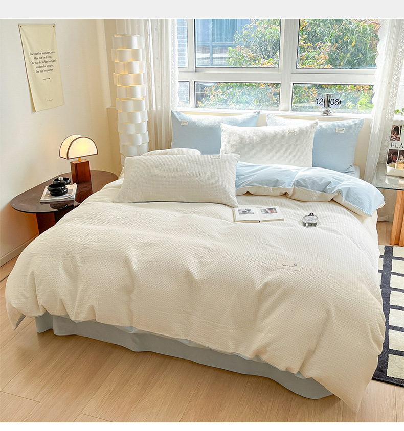Mr. Jue 와플 코튼 4 피스 세트 100 면 고급 침구 이불 커버 시트 기숙사 3 피스 세트
