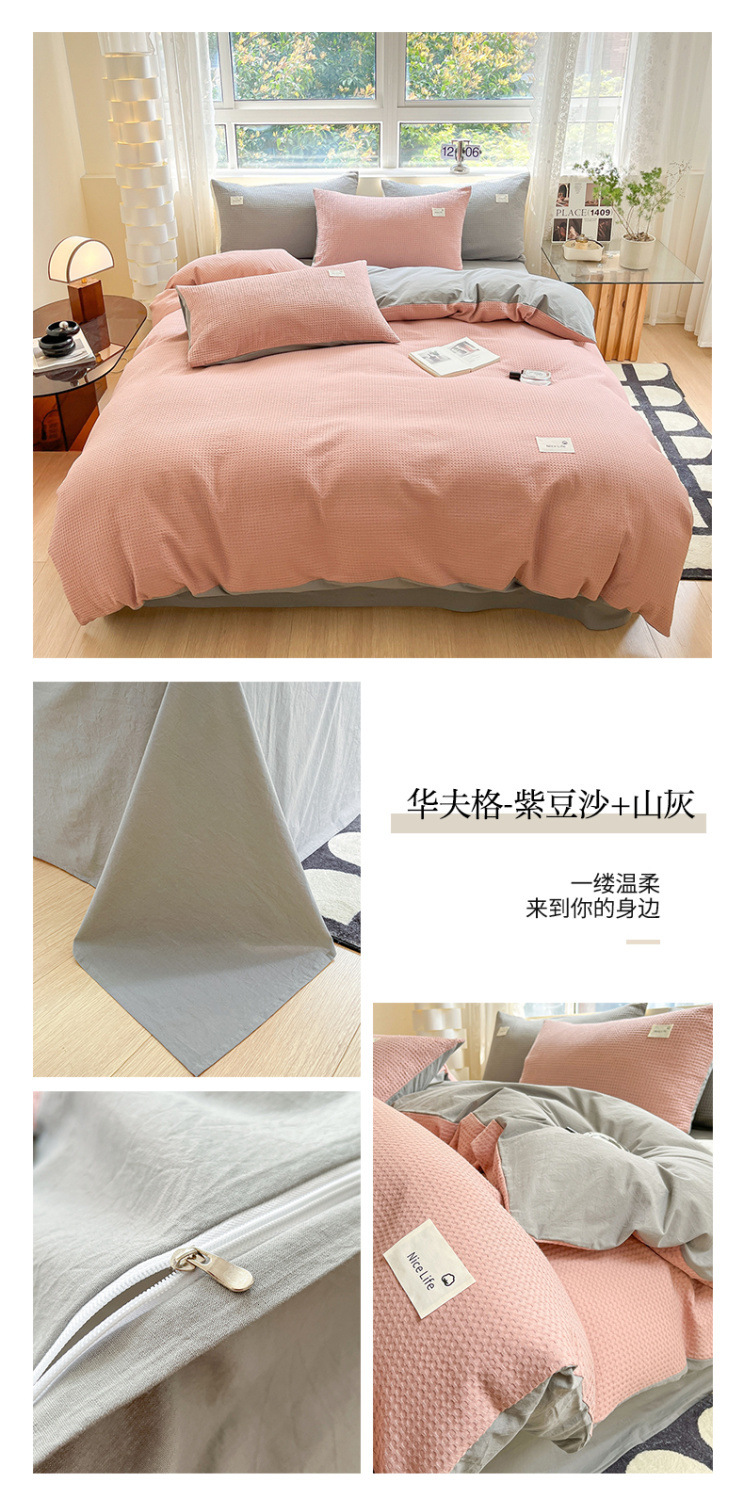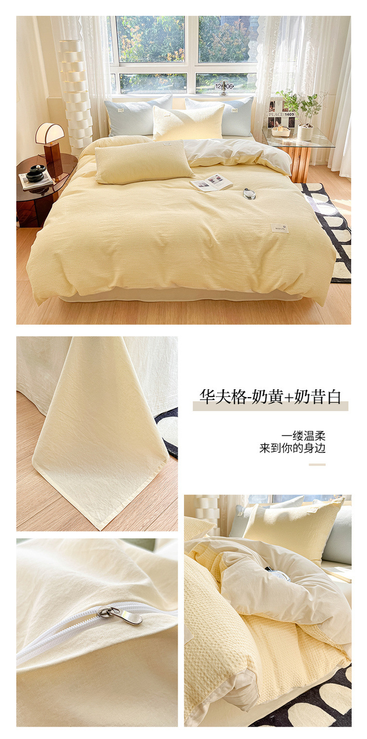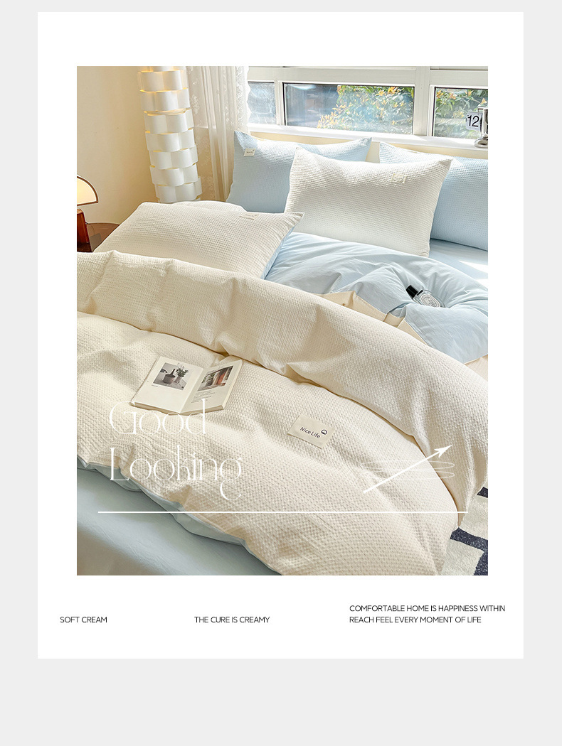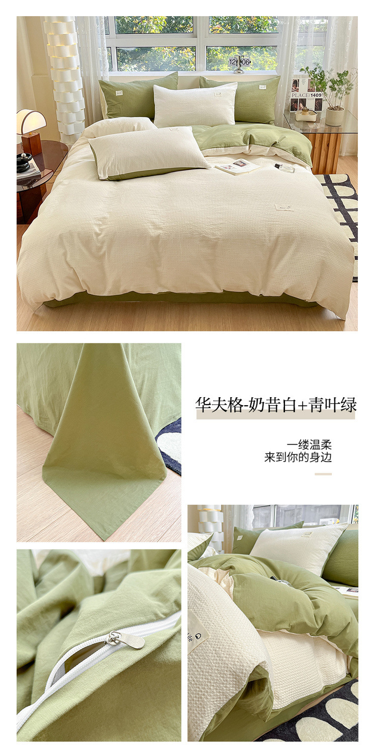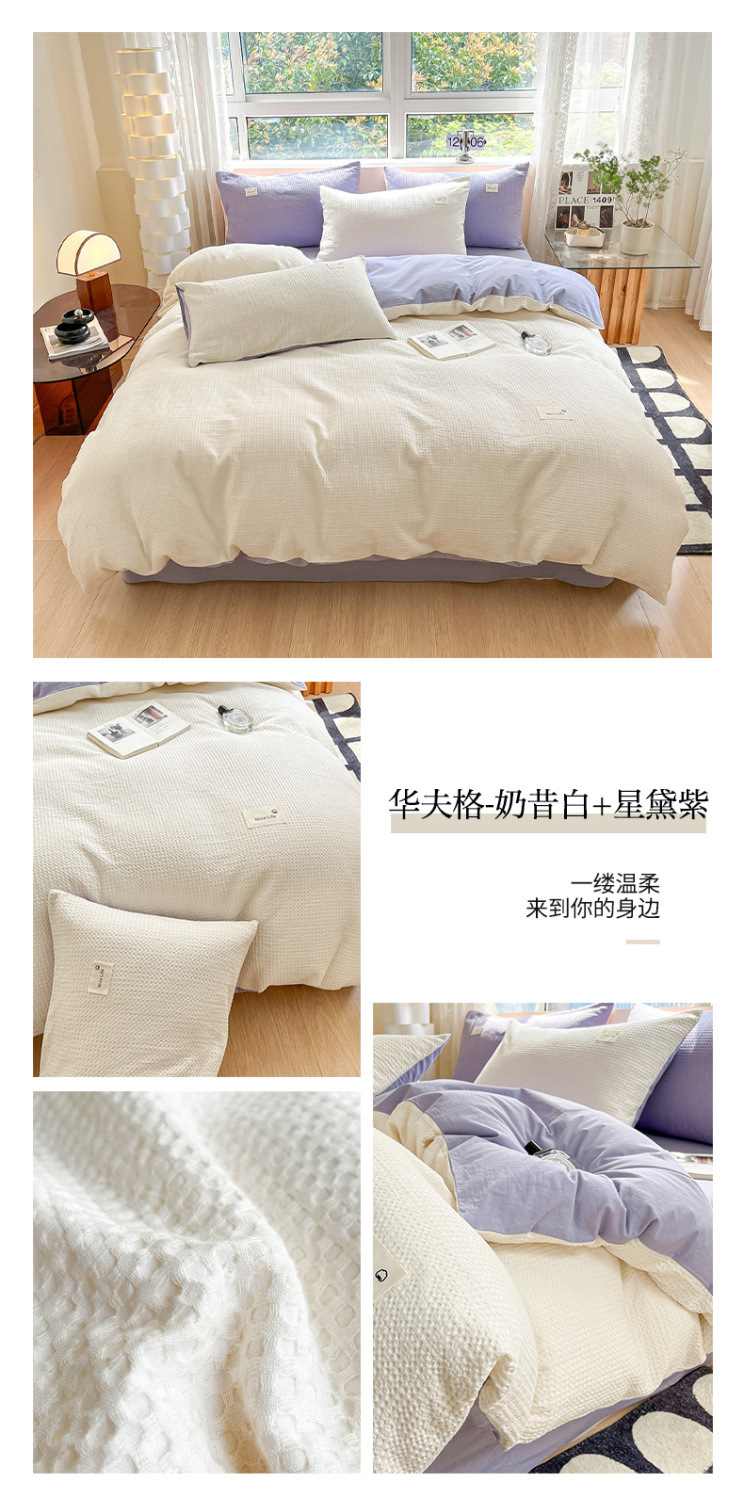 Mr. Jue 와플 코튼 4 피스 세트 100 면 고급 침구 이불 커버 시트 기숙사 3 피스 세트
