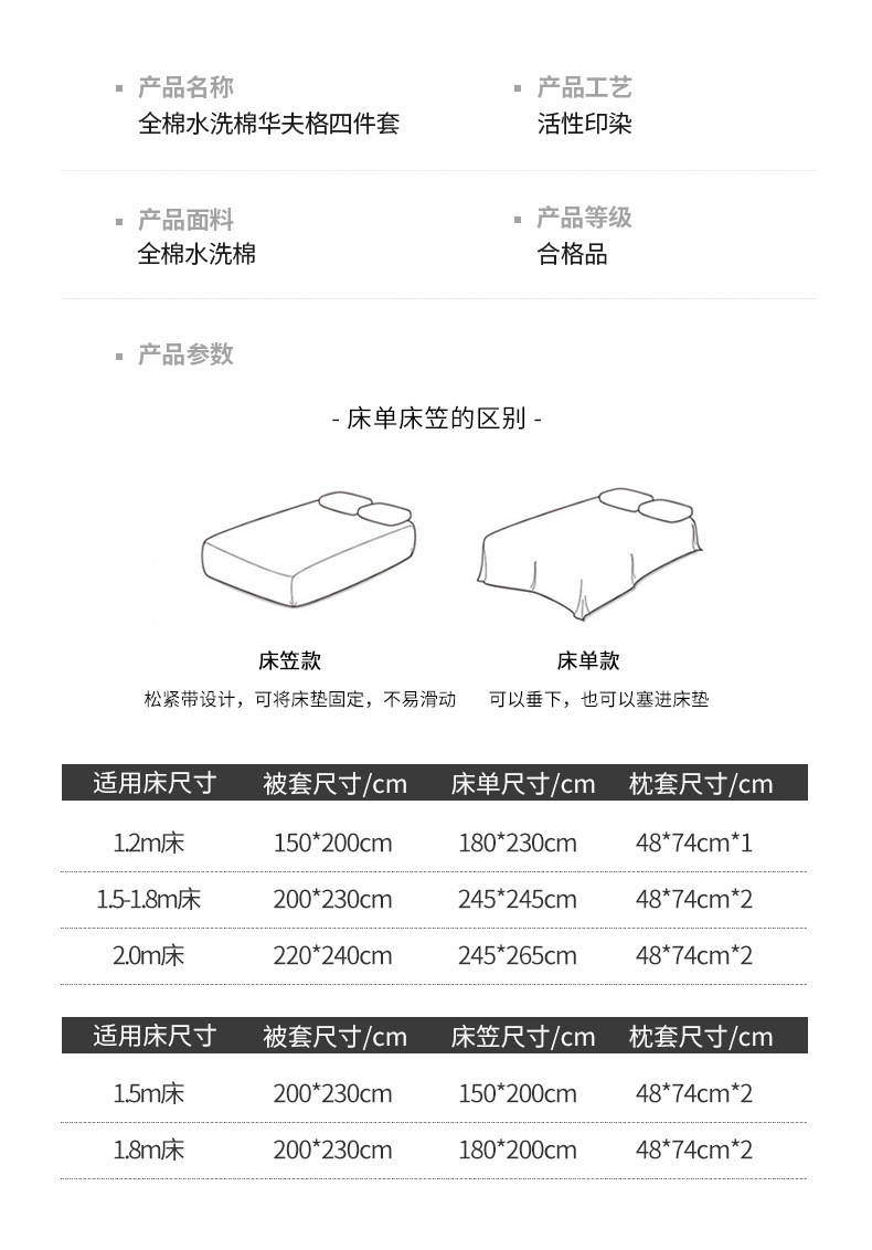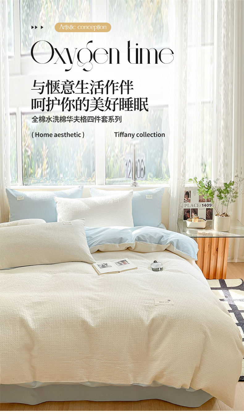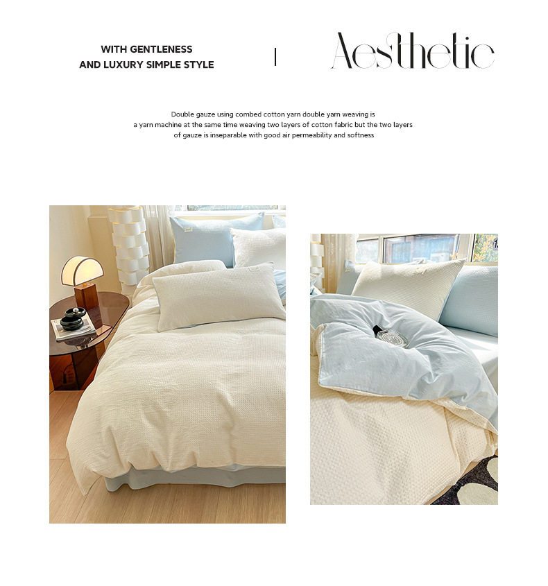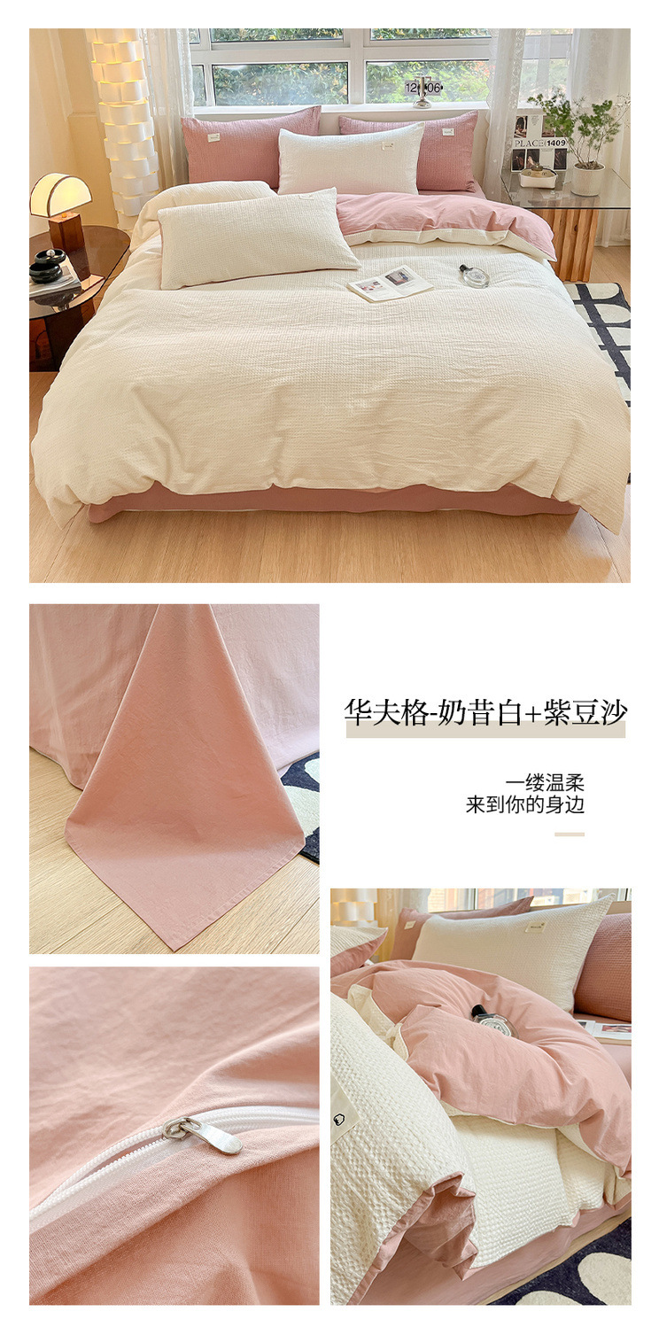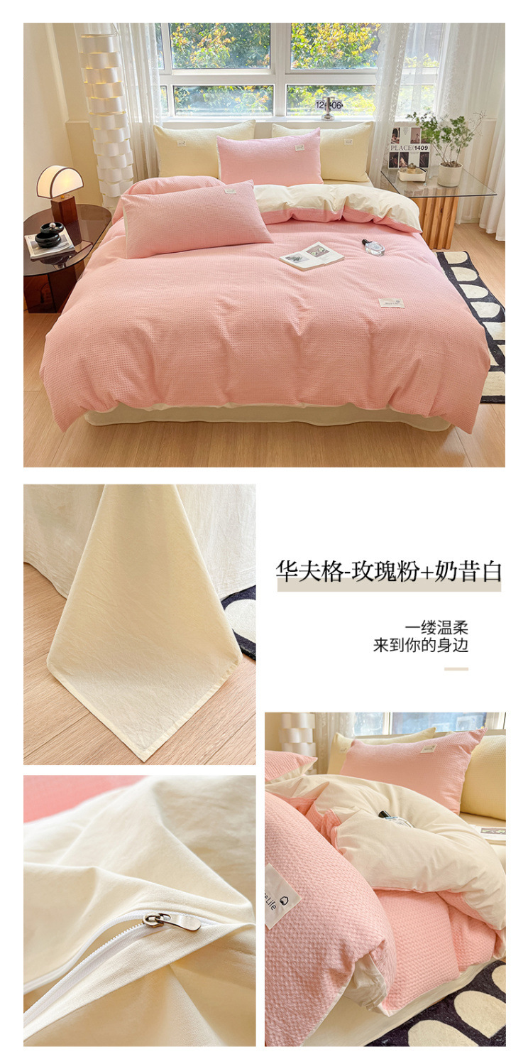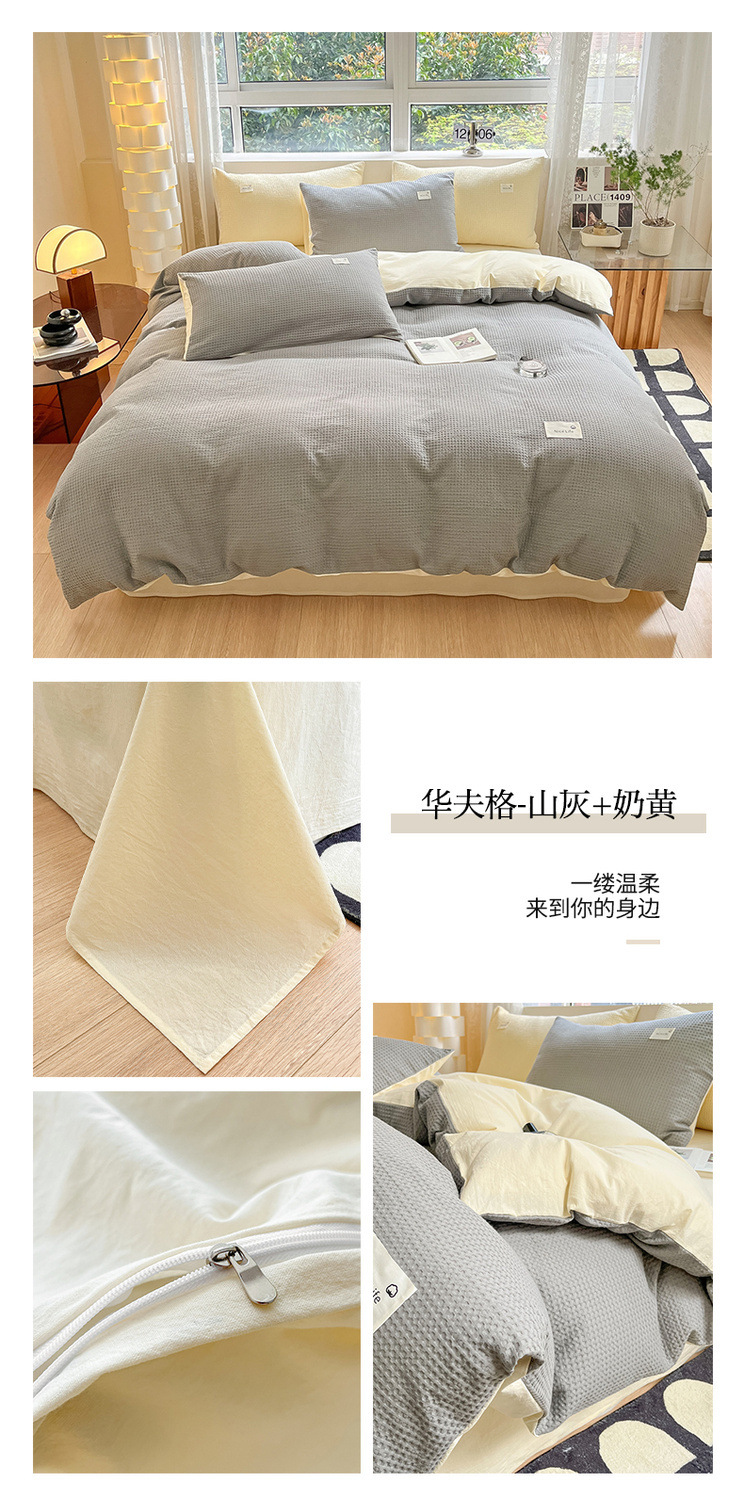 Mr. Jue 와플 코튼 4 피스 세트 100 면 고급 침구 이불 커버 시트 기숙사 3 피스 세트