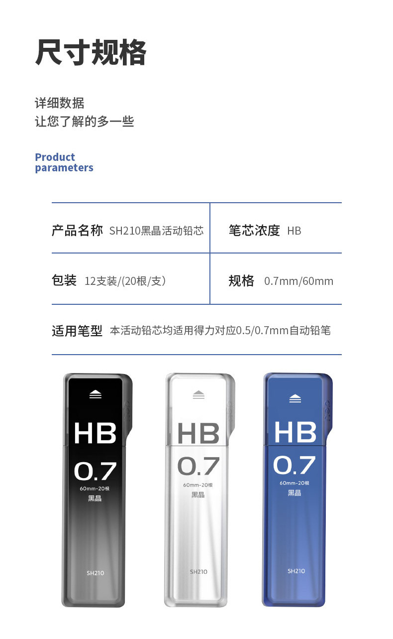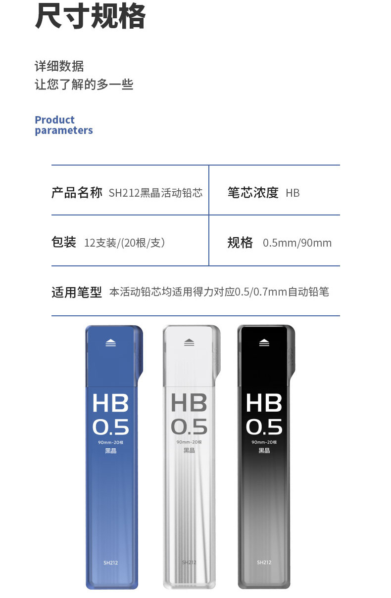 델리 SH209/SH210 블랙 크리스탈 하이 퀄리티 활동 리드 코어 학생 HB0.5/0.7-60/90mm 자동 리드스토어 가기
