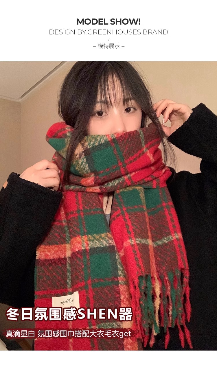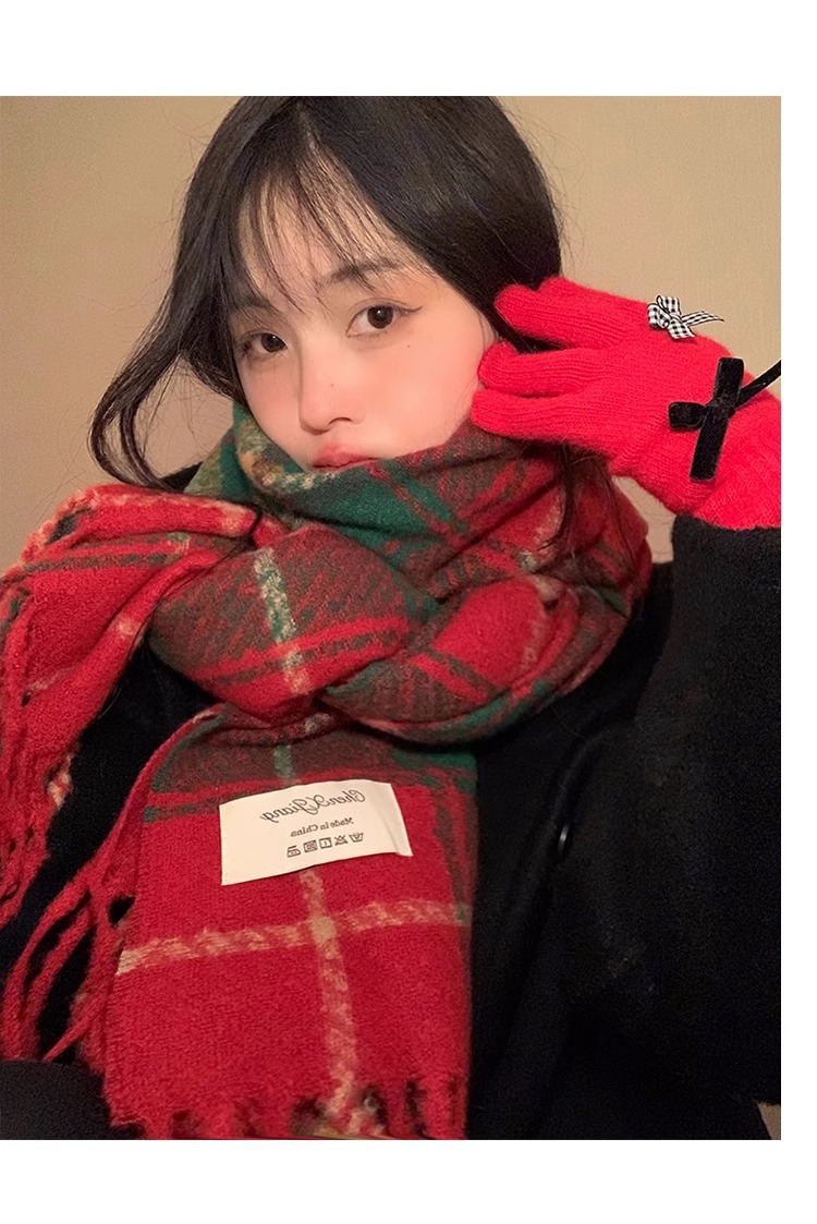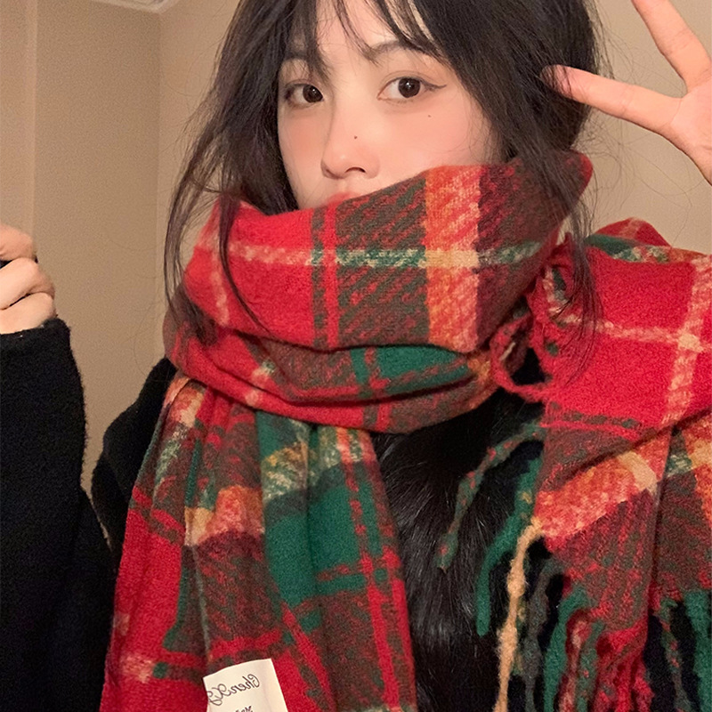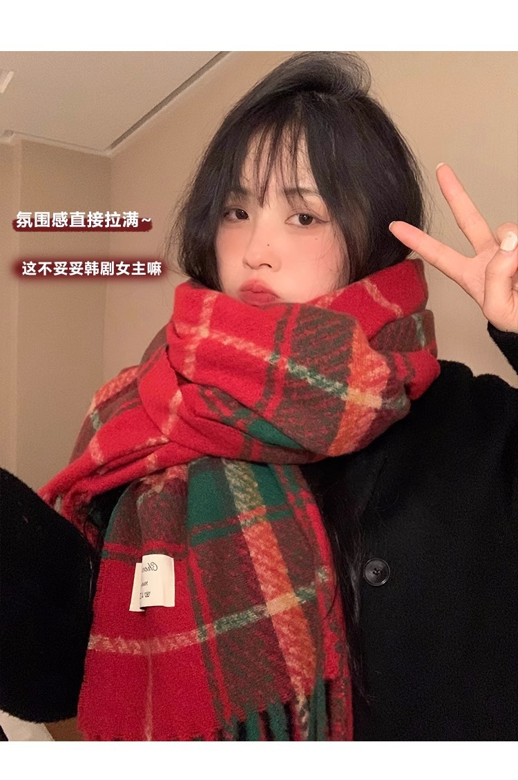 레드 스카프 여자 겨울 한국식 격자 무늬 올매치 따뜻한 캐시미어 하이 엔드 패셔너블 신년 선물 크리스마스 스카프스토어 가기