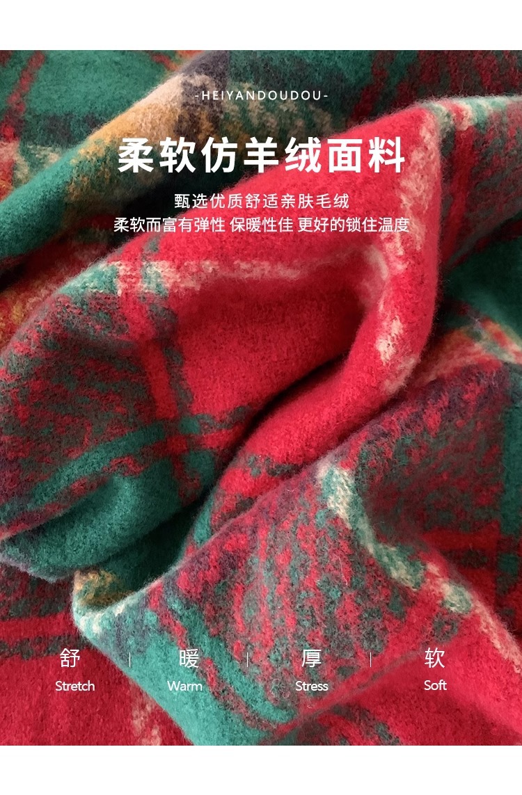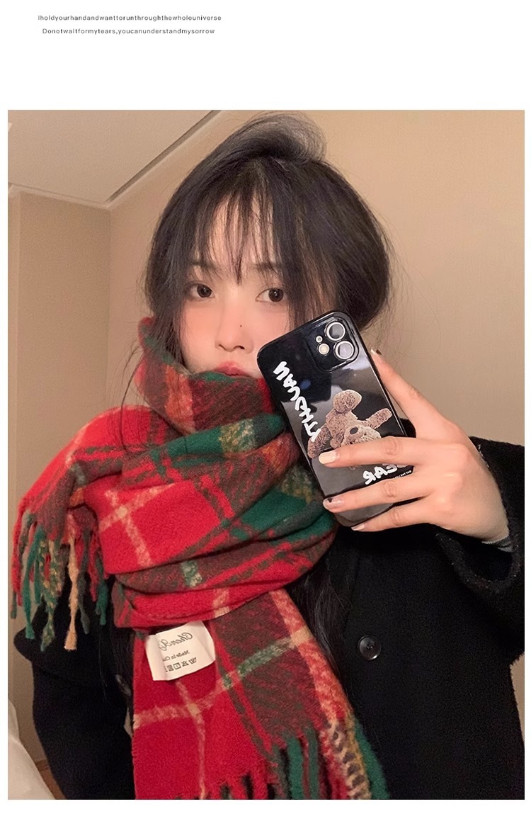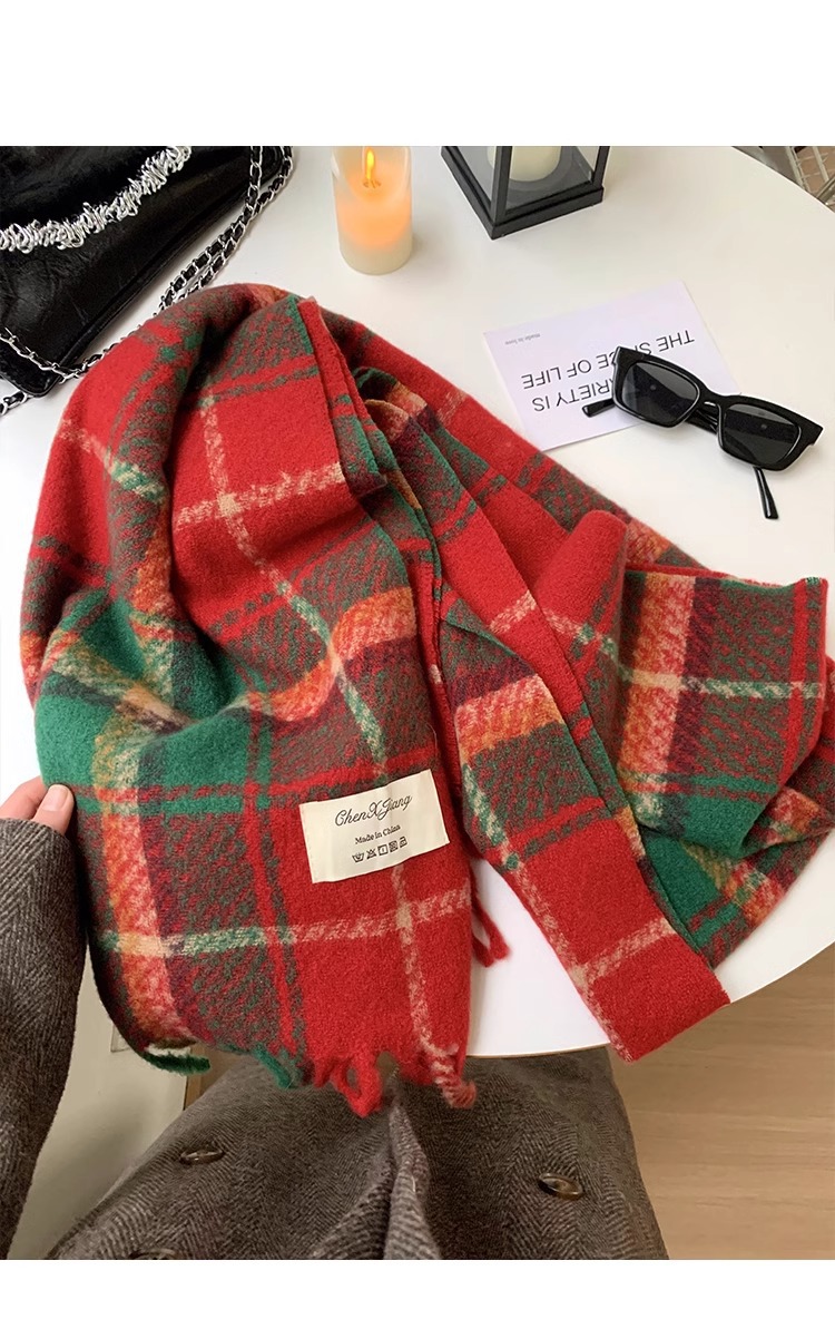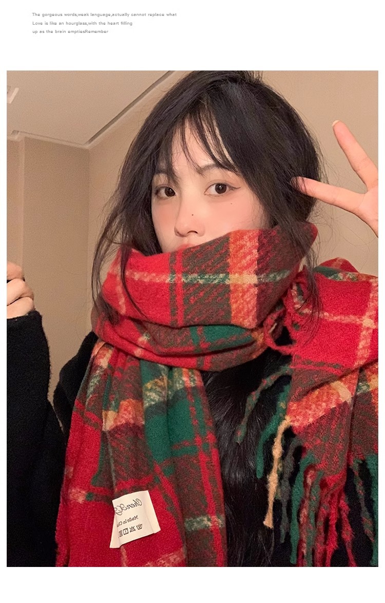 레드 스카프 여자 겨울 한국식 격자 무늬 올매치 따뜻한 캐시미어 하이 엔드 패셔너블 신년 선물 크리스마스 스카프스토어 가기