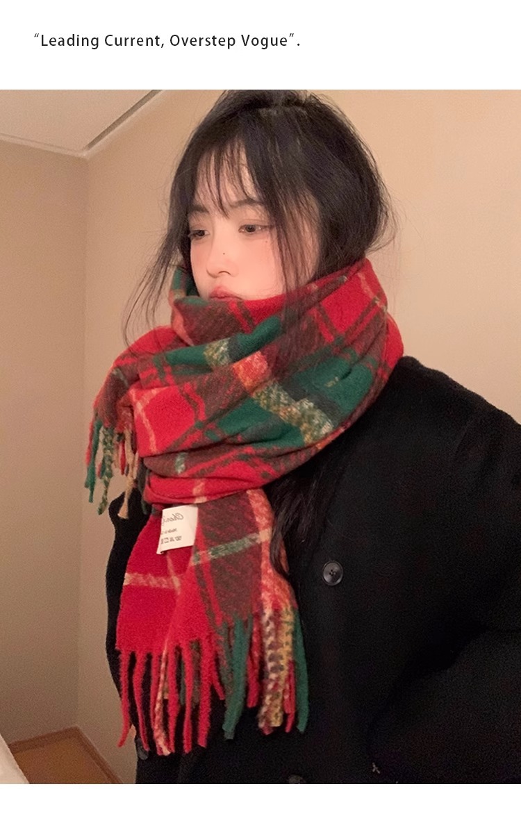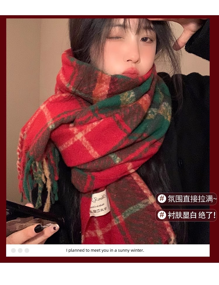 레드 스카프 여자 겨울 한국식 격자 무늬 올매치 따뜻한 캐시미어 하이 엔드 패셔너블 신년 선물 크리스마스 스카프